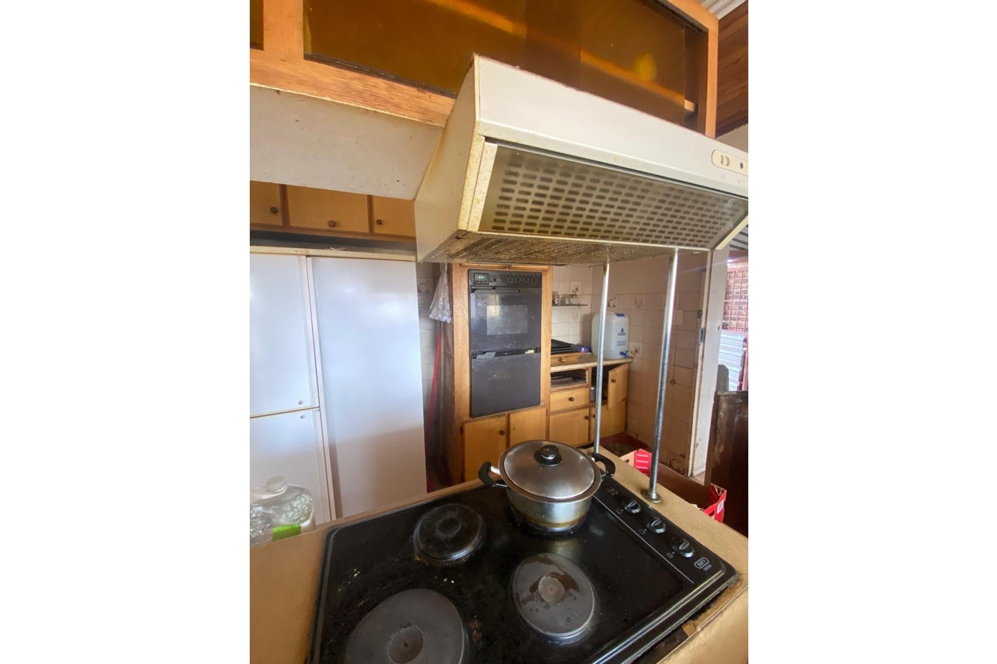 The kitchen is equipped with built-in cupboards, an under-counter oven, and a hob, providing a functional and modern space for meal preparation. The property also features a double carport, ensuring secure and convenient parking.