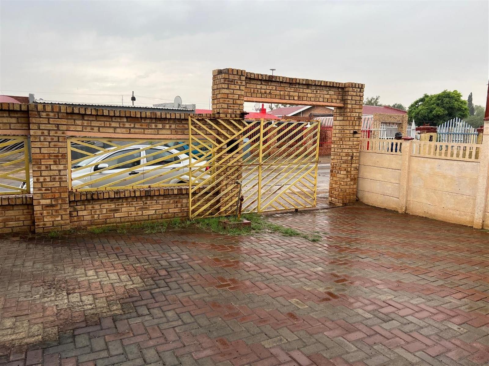 Front yard is fully paved and a brick wall fence