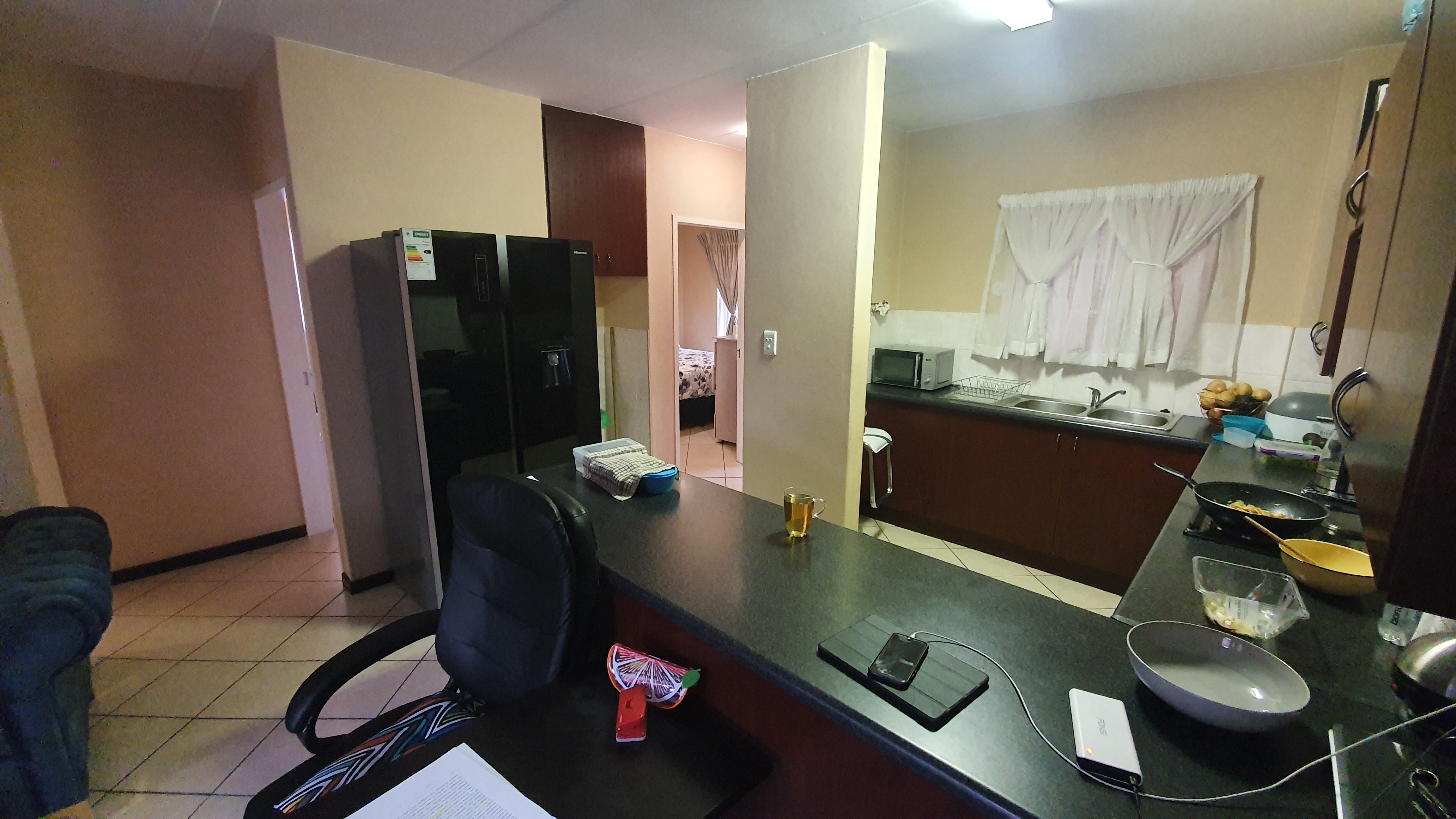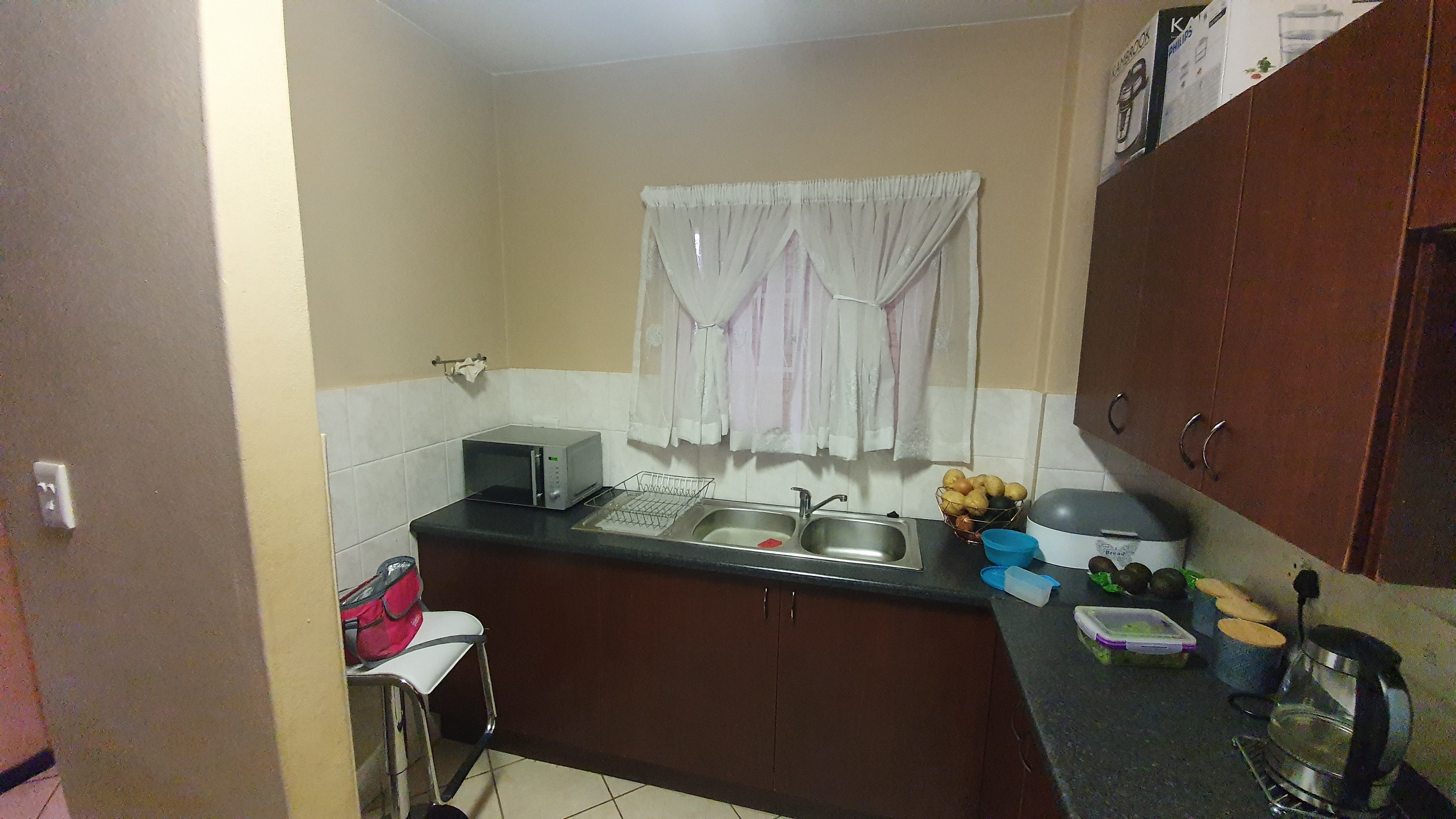 The living room is DSTV ready and opens up to a small covered patio and communal garden.