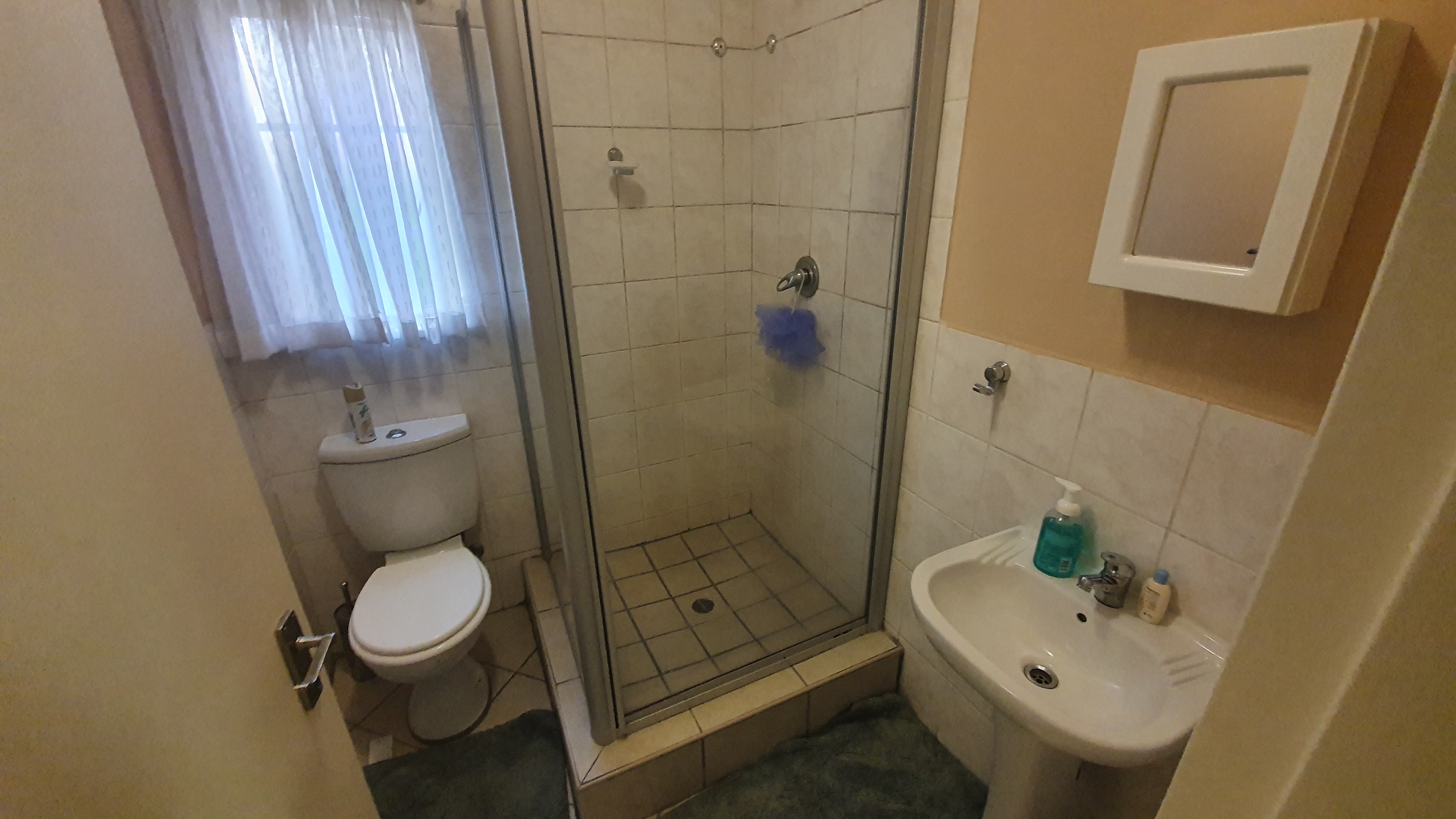 The main bedroom is tiled with built in cupboards. The en suit bathroom offers a shower.
