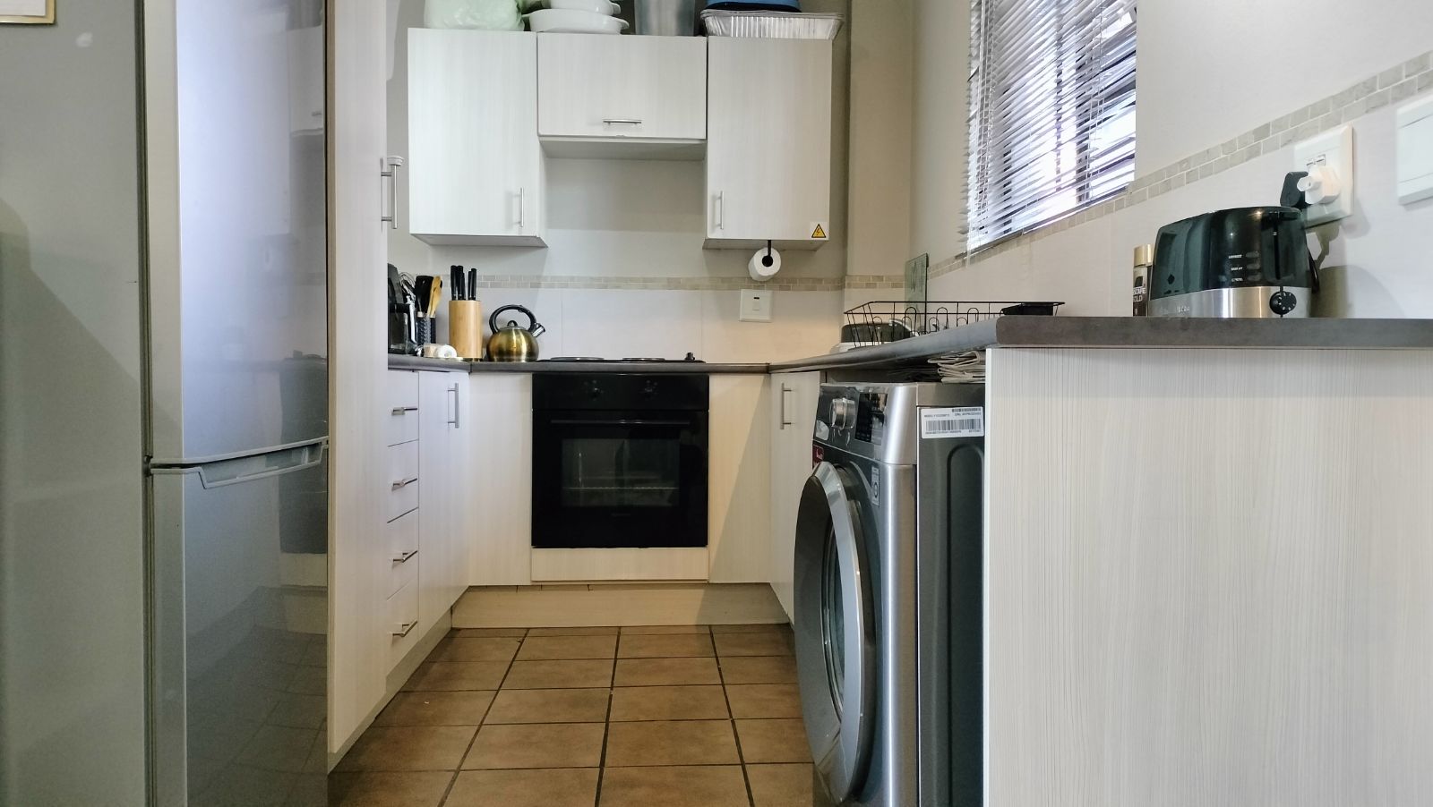 This spacious 2-bedroom apartment, located in a secure complex in Honeydew, Roodepoort, offers the perfect combination of comfort and convenience. The unit features an open-plan design that seamlessly connects the dining room, kitchen, and lounge area. The kitchen is equipped with ample storage space and accommodates two under counter appliances as well as a refrigerator. The lounge opens through sliding doors to a private balcony, where you can enjoy a braai or simply take in the view of the well-maintained communal garden.