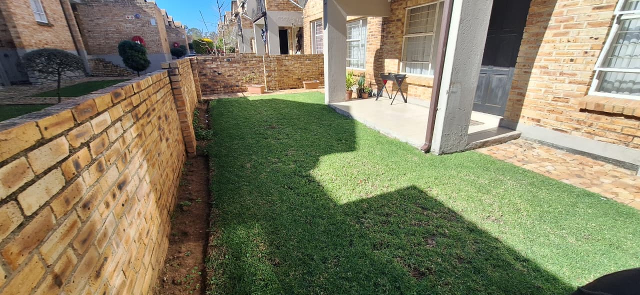 Small patio and neat garden.