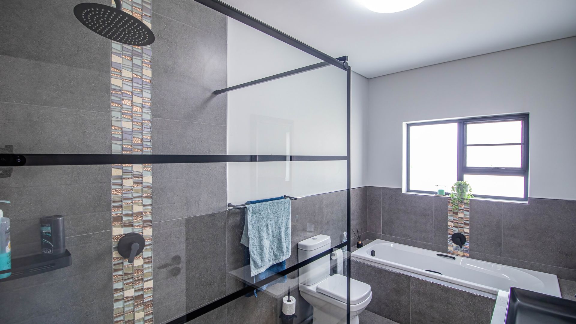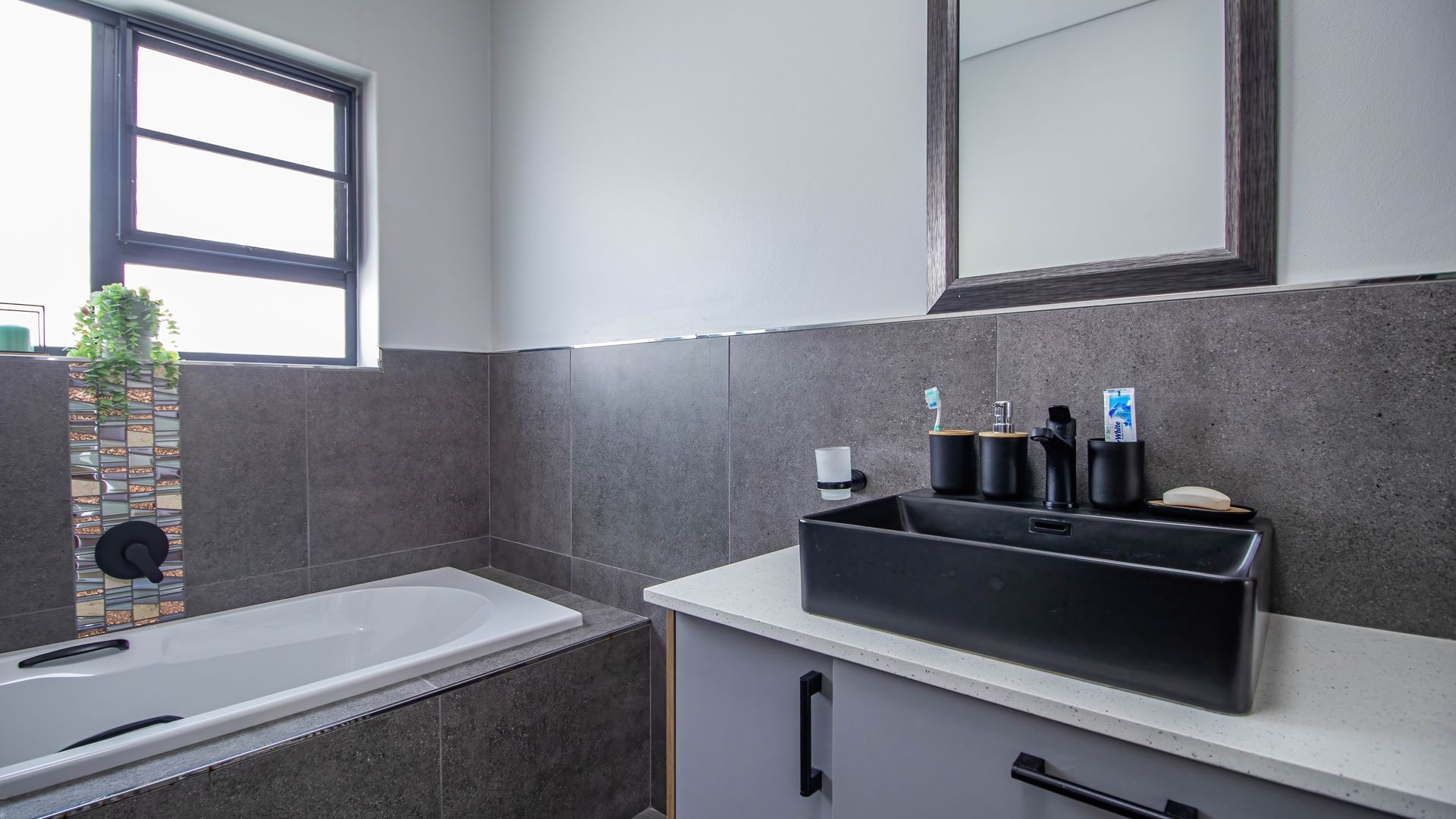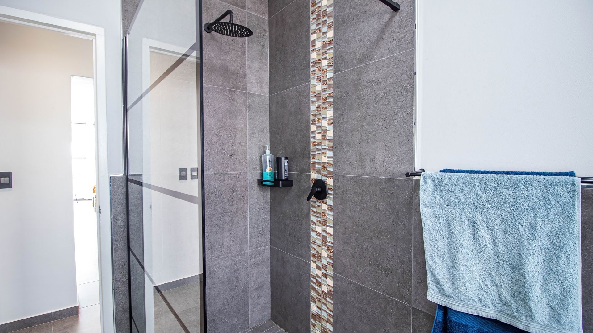 The offering does not end there. Be inspired by the 3 glorious & spacious, tastefully designed bedrooms offering ample cupboard space. Two of the bedrooms are currently used as a dedicated study and also a hobby room. The bedrooms are served by a stunning full family bathroom and a shower en-suite for the main bedroom. The black trimmed sanitary ware is a feast for the eye. You'll be delighted to know that the master suite enjoys direct access to the patio through a sliding door providing gorgeous views of the harbour in the distance.