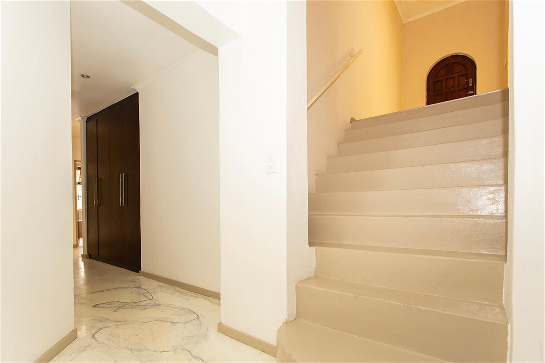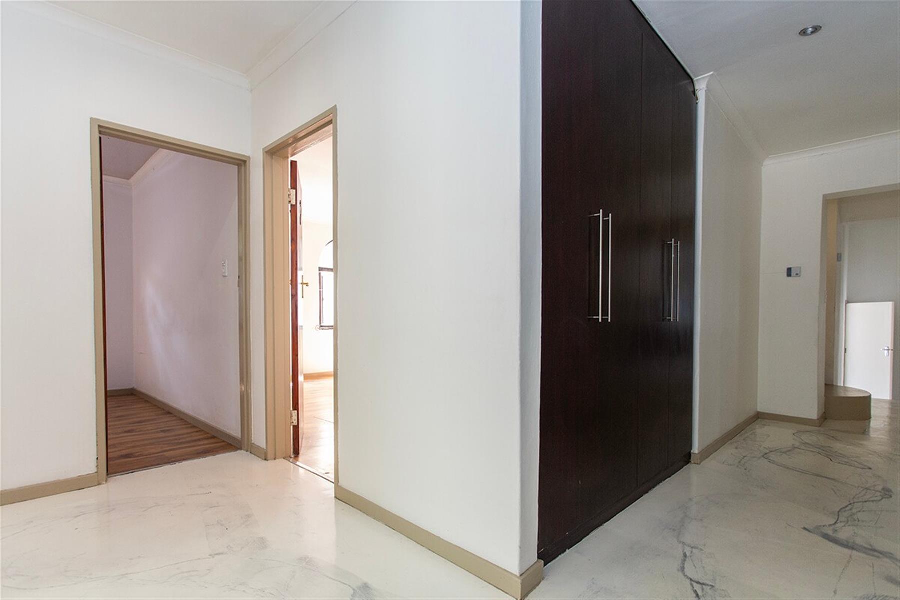 The welcoming entrance patio overlooks the scenic Bracken heights and leads you into two warm and inviting living areas, ideal for relaxed evenings or entertaining guests. A split staircase guides you to a third open-plan entertainment level, complete with a spacious, well-appointed kitchen, ample cupboard space, a scullery, and a cosy indoor braai area that opens onto a view-filled deck.