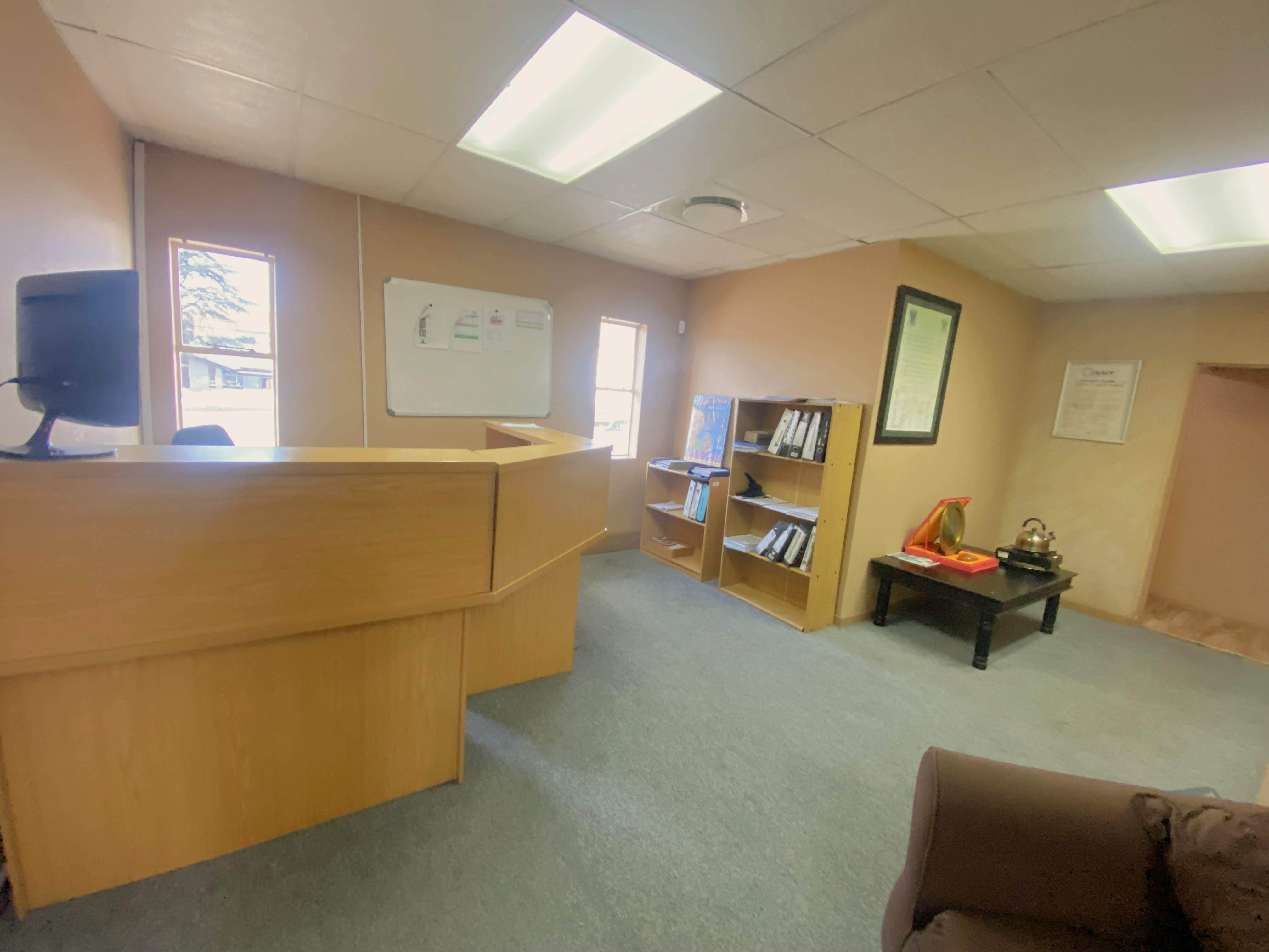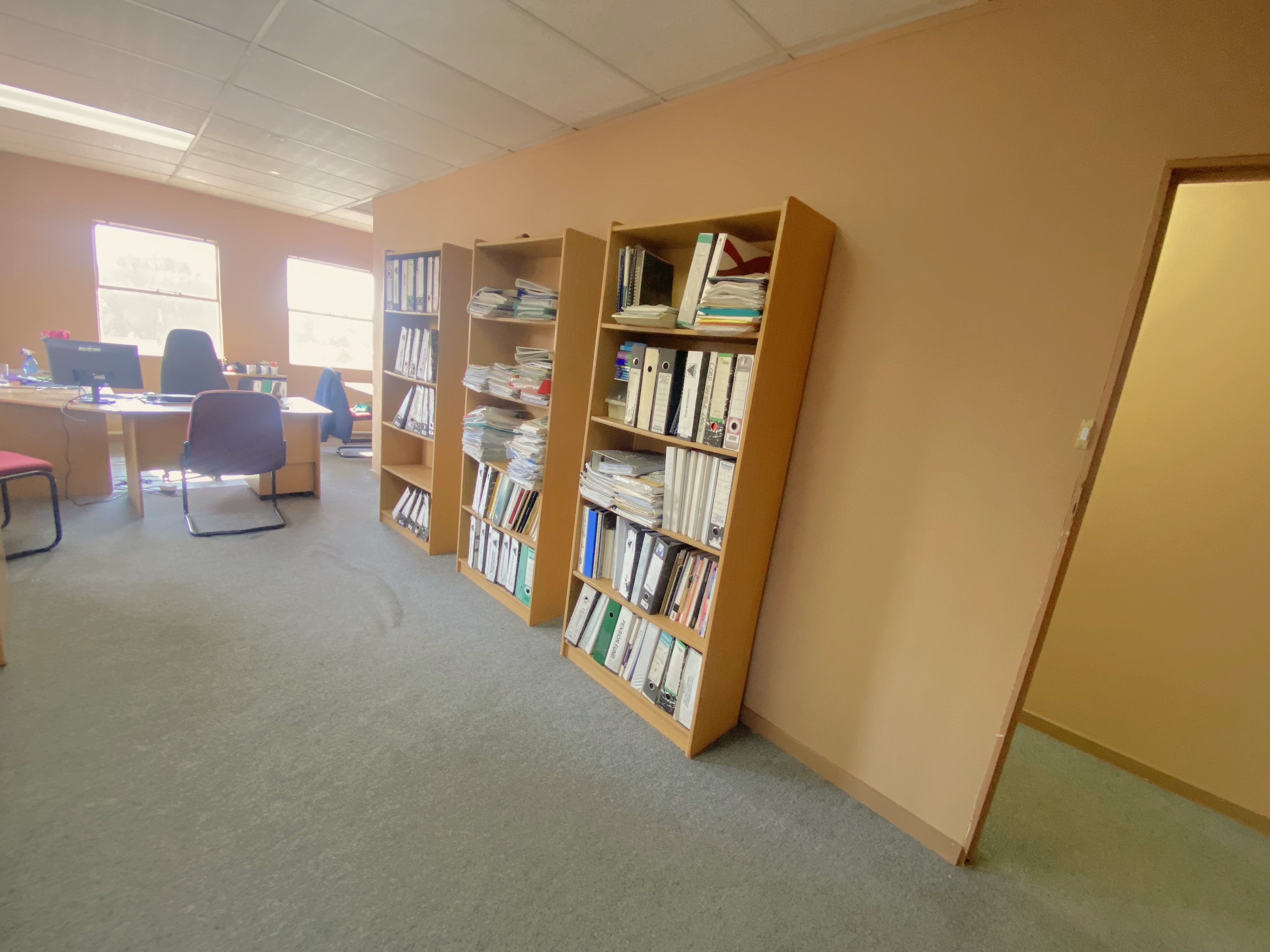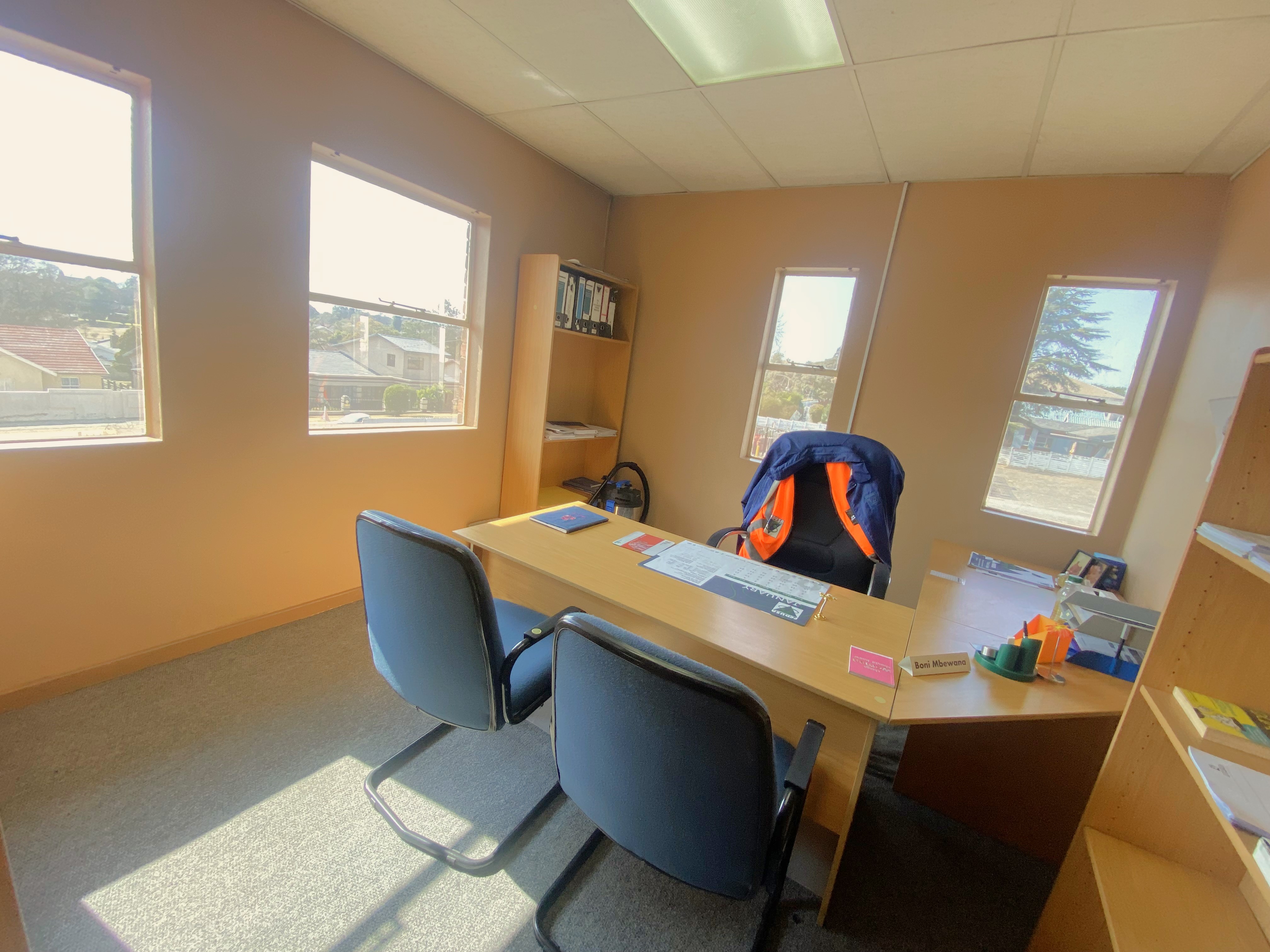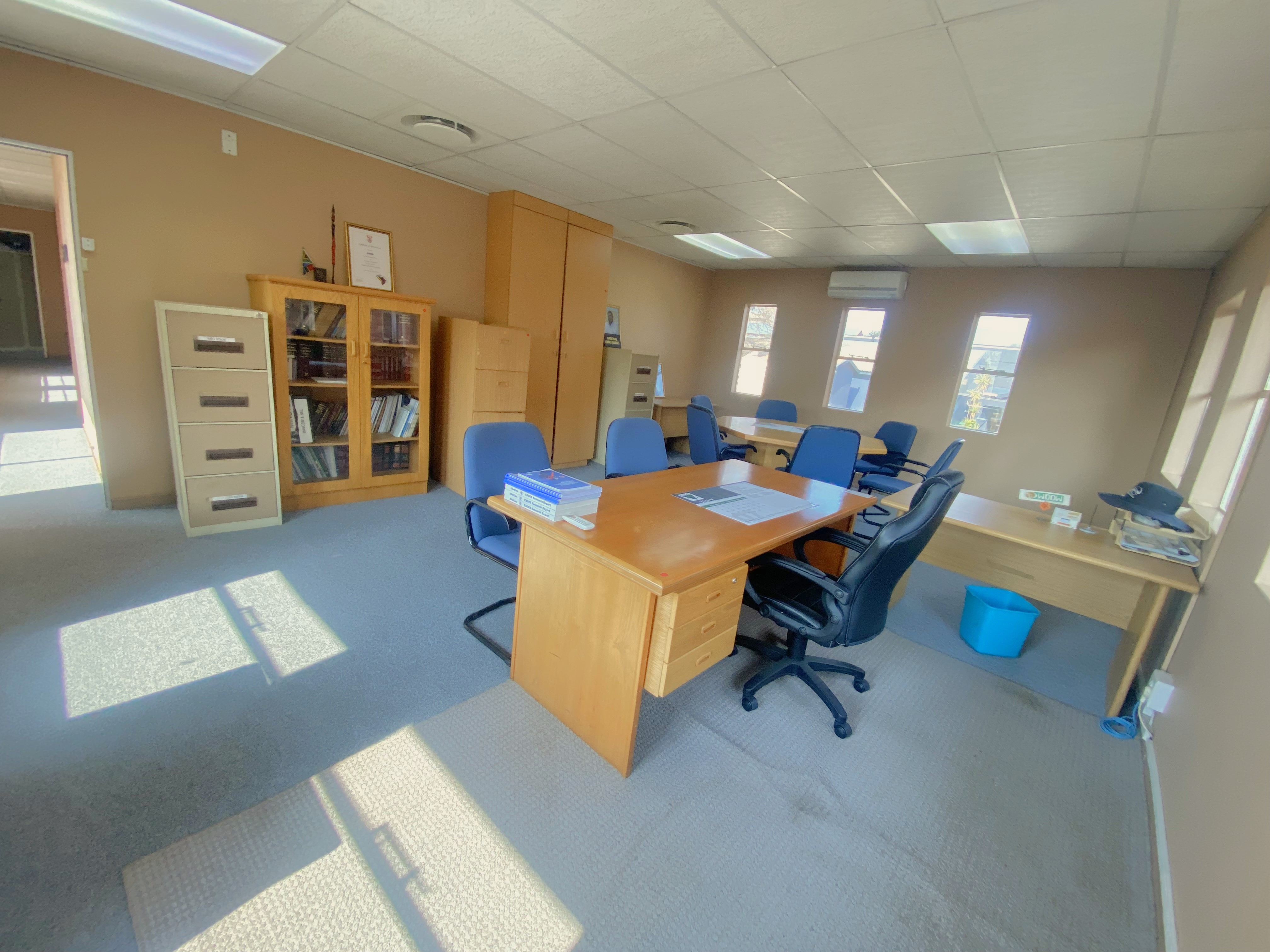 Reception area, offices, boardroom, three male-, female- and disability toilets, kitchen with granite tops