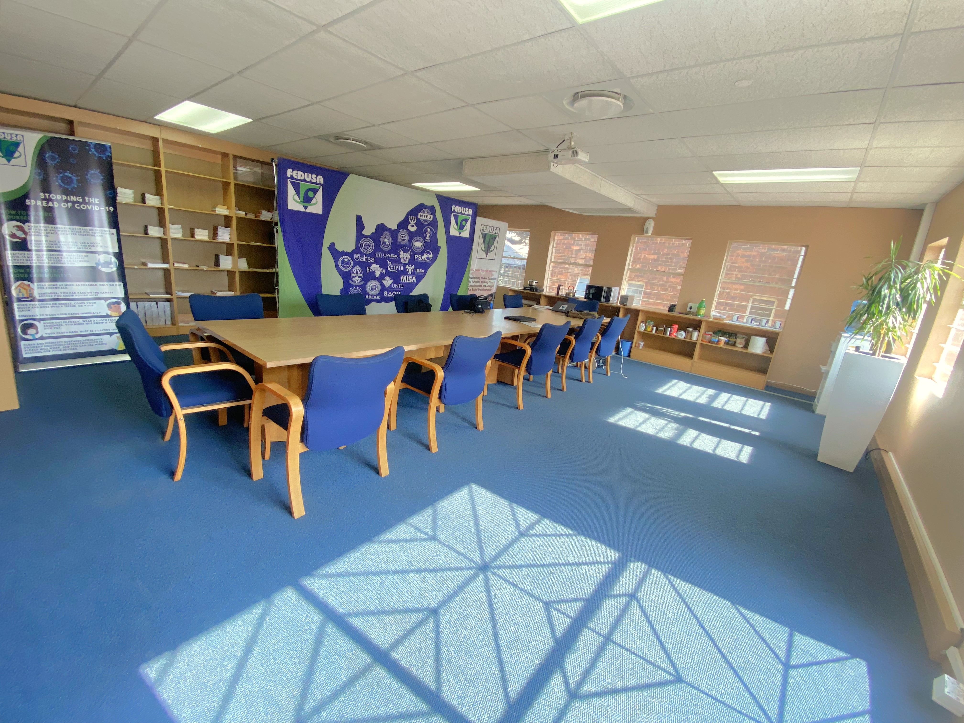 Reception area, offices, boardroom, two male- & female toilets, kitchen with granite tops
