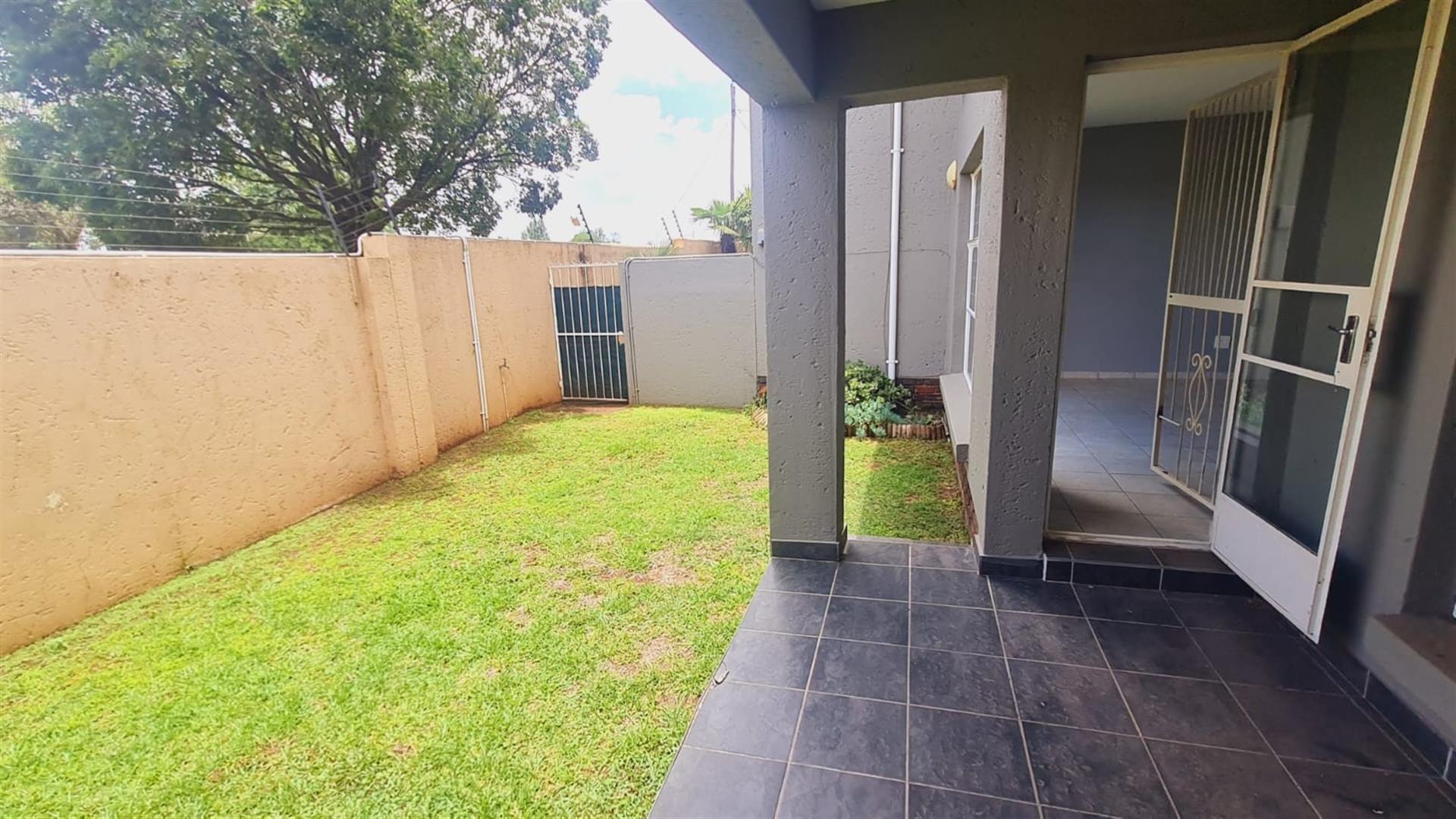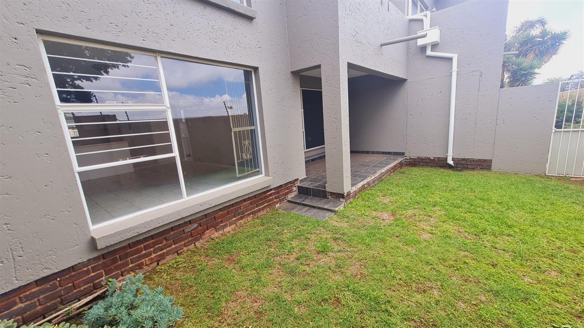 You could be the proud owner of this immaculate ground floor townhouse. This very neat freshly painted unit offers two well-sized carpeted bedrooms with built-in cupboards and one bathroom with newly fitted bath, basin and toilet as well as a shower-in-tub. The open plan lounge and dining area is north facing and offers ample light and offers access onto a patio and pet friendly garden.