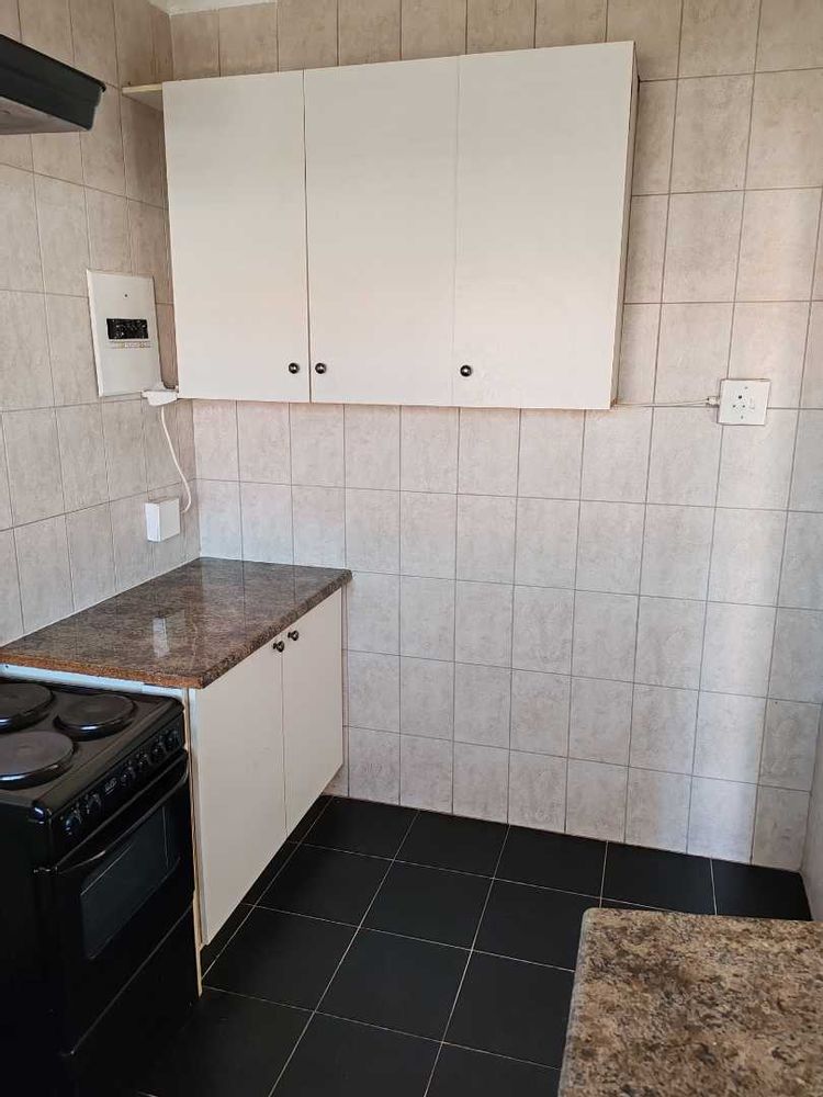 The kitchen has good cupboard space, comes with a free-standing oven/stove and fits a single fridge.