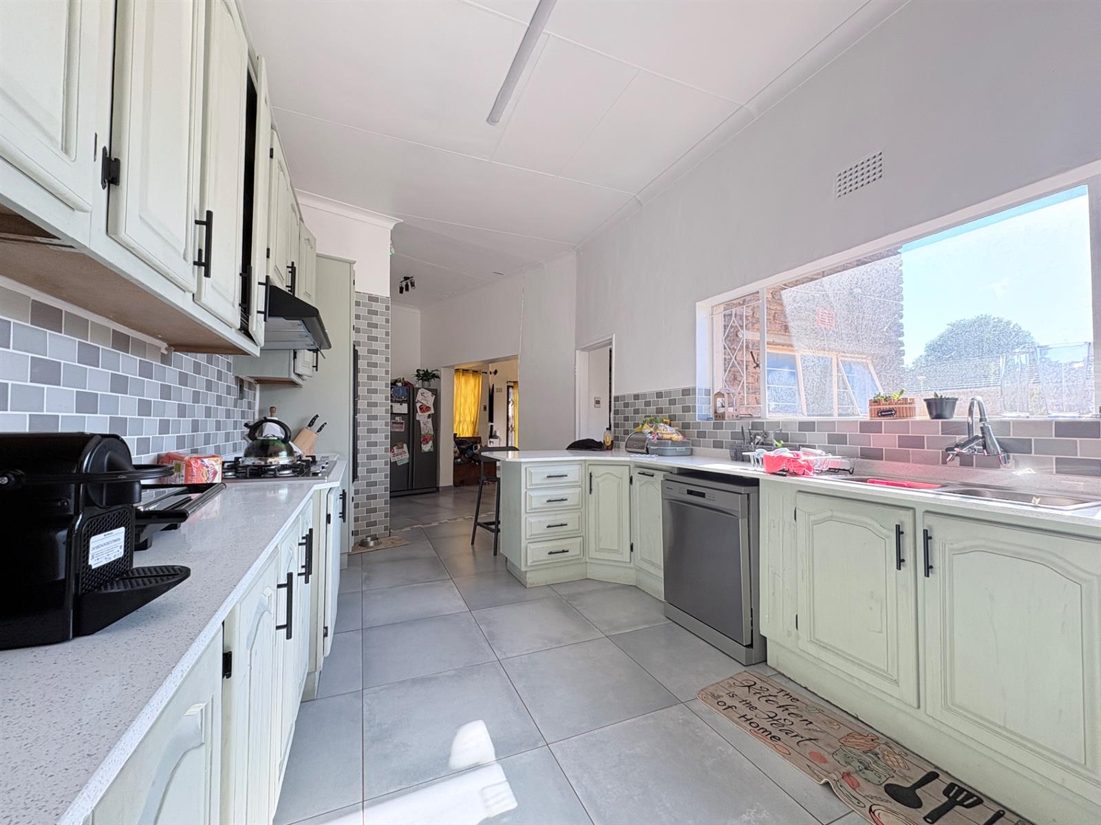 The home is thoughtfully designed for both relaxed family living and entertaining. A spacious lounge filled with natural light and complemented by a fireplace flows effortlessly into the dining room. The kitchen is fully equipped with a breakfast nook, eye-level oven, gas hob, extractor fan, double basin, dishwasher connection, and washing machine connection — ensuring everyday convenience.