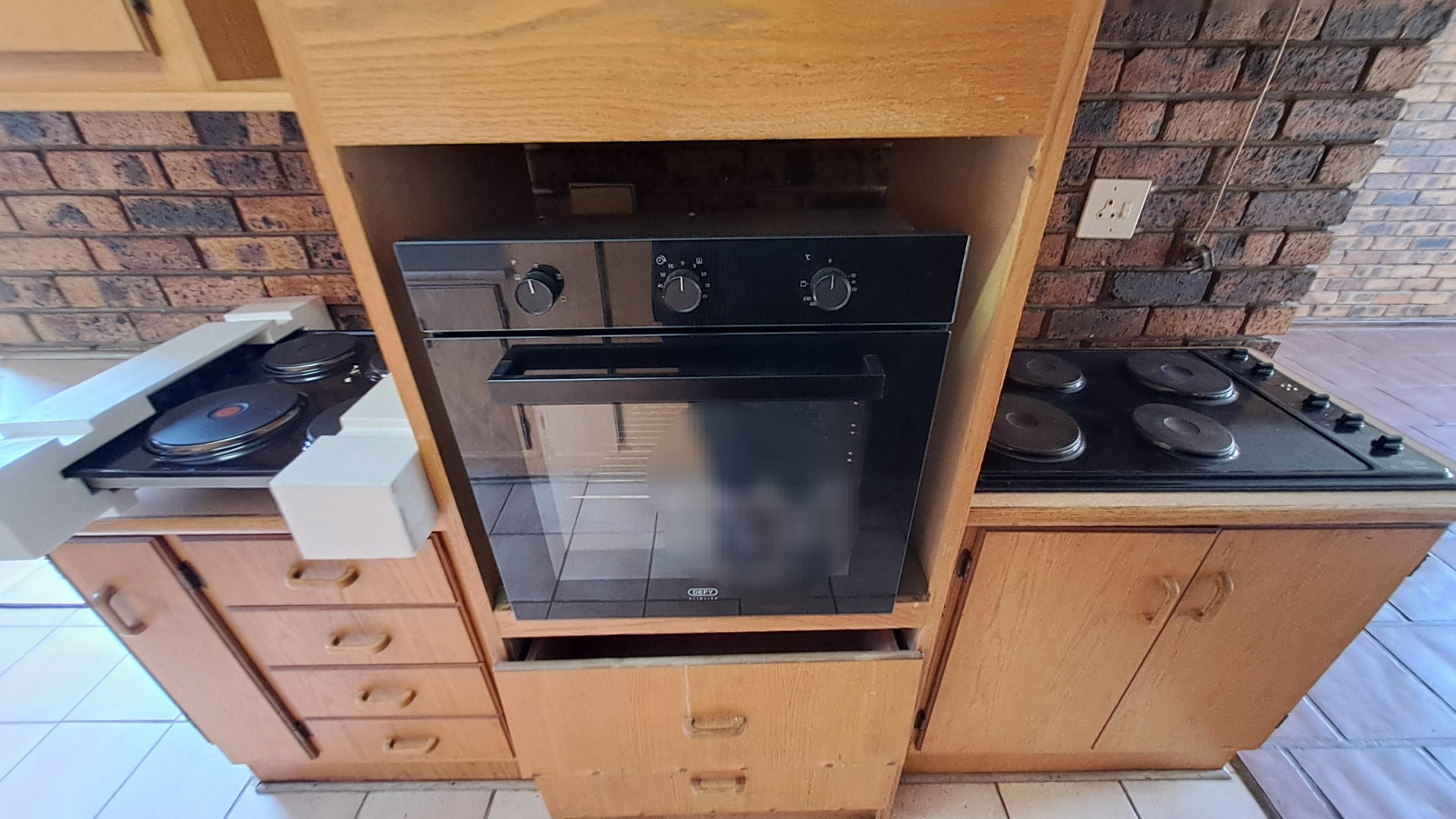 -Open plan kitchen with a built-in four plate stove, eye-level oven and many built-in cupboards to fulfill all your cooking needs