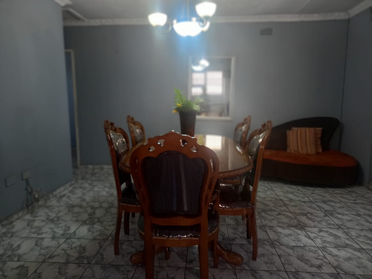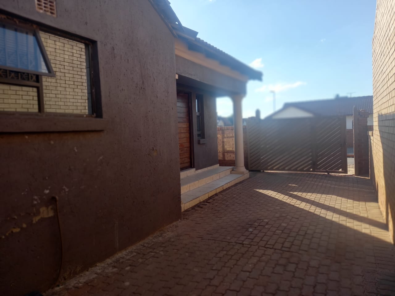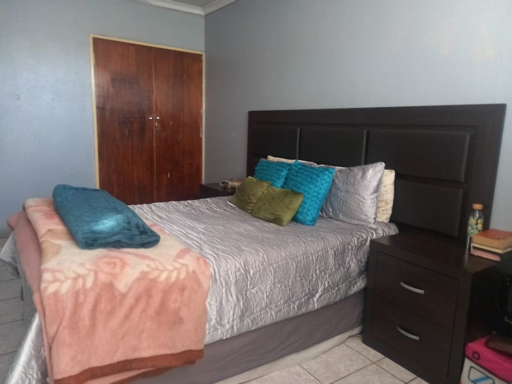This spacious, tiled home is located in Hospital View and features three fitted bedrooms, an open-plan lounge, dining area, and kitchen, as well as standard bathrooms. The exterior includes three large investment rooms ideal for generating additional income, a garage, a paved yard, and a secure boundary wall with a sturdy gate.