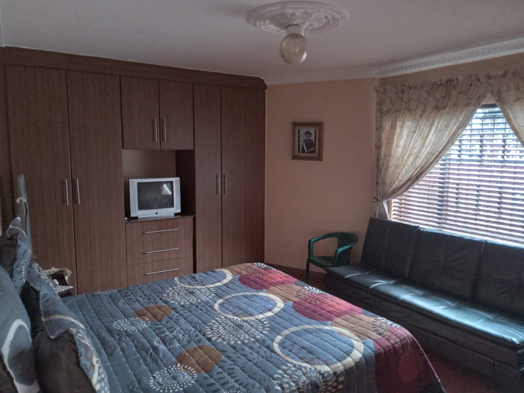 This property has two (2) lounge, One upstairs and another one downstairs. It has three bathrooms , 2 downstairs and 1 upstairs. There is a shower with a toilet inside the bedrooms, 2 are ensuite upstairs and 2 downstairs. This well maintained house is up for Rental with immediate occupation, it consists of 4 bedrooms main fitted, lounge, bathroom, toilet and a fitted kitchen. It's a stand alone house in a quiet suburb in hospital view, electricity is pre paid and municipal costs are on the occupant. It's fully walled with a gate.