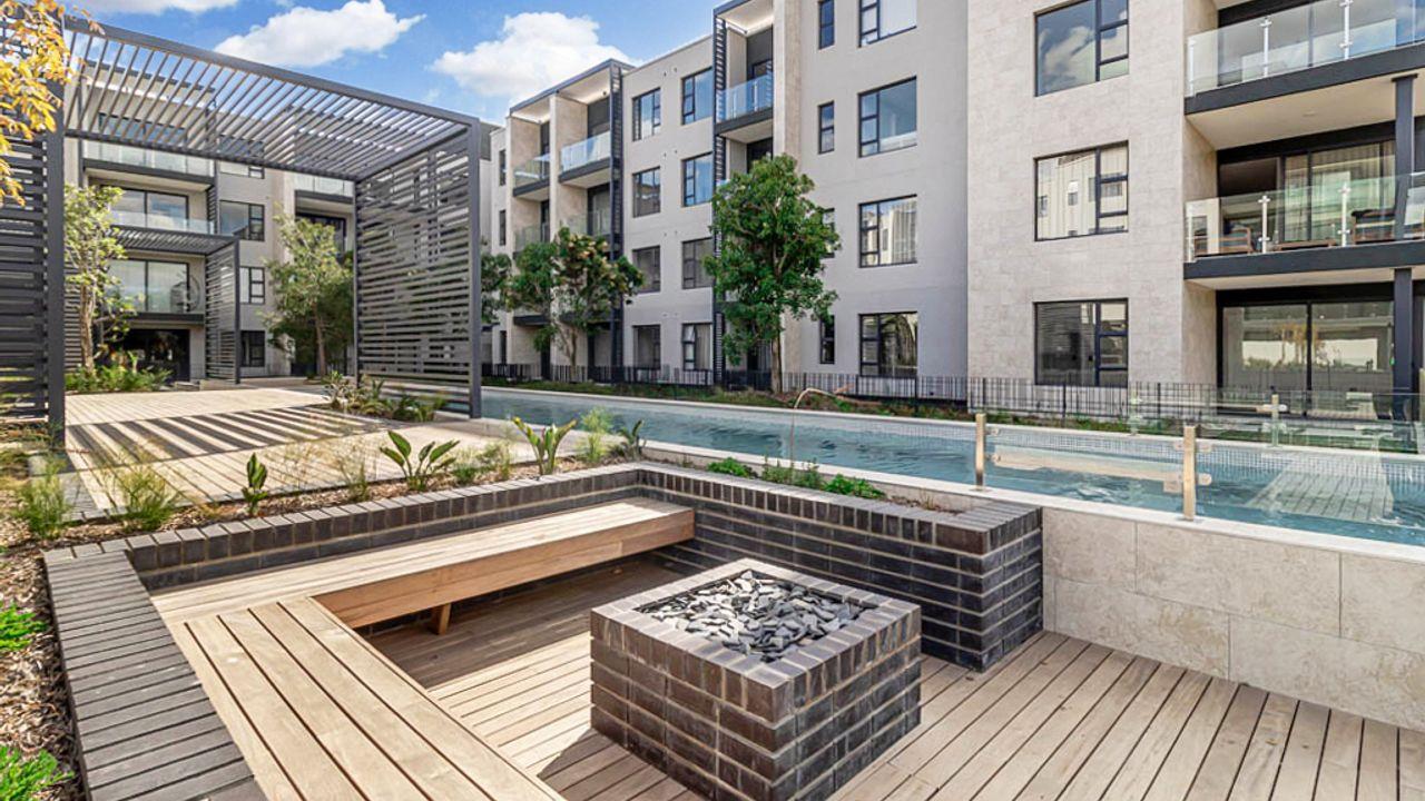 The Tree Tops communal area features a beautifully designed piazza and entertainment deck, serving as the central hub near the clubhouse and lap pool.