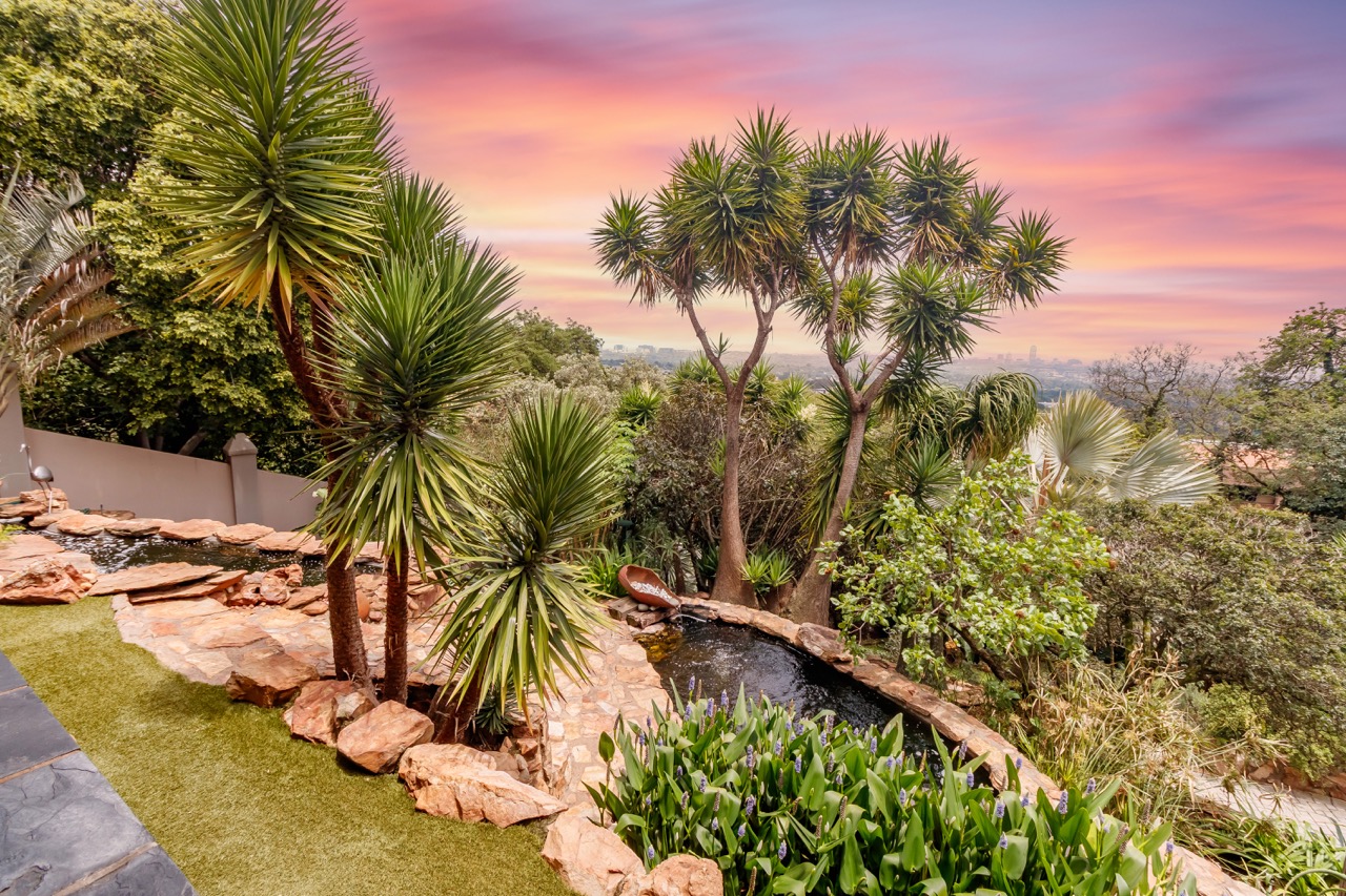 Nestled against the Houghton/Mountainview Ridge, this north-facing premium residence not only offers breathtaking views of Sandton, Illovo, Rosebank, Northcliff Hill, and all the way to the majestic Magaliesburg mountains, but also combines privacy, space, and classic upscale Johannesburg living.