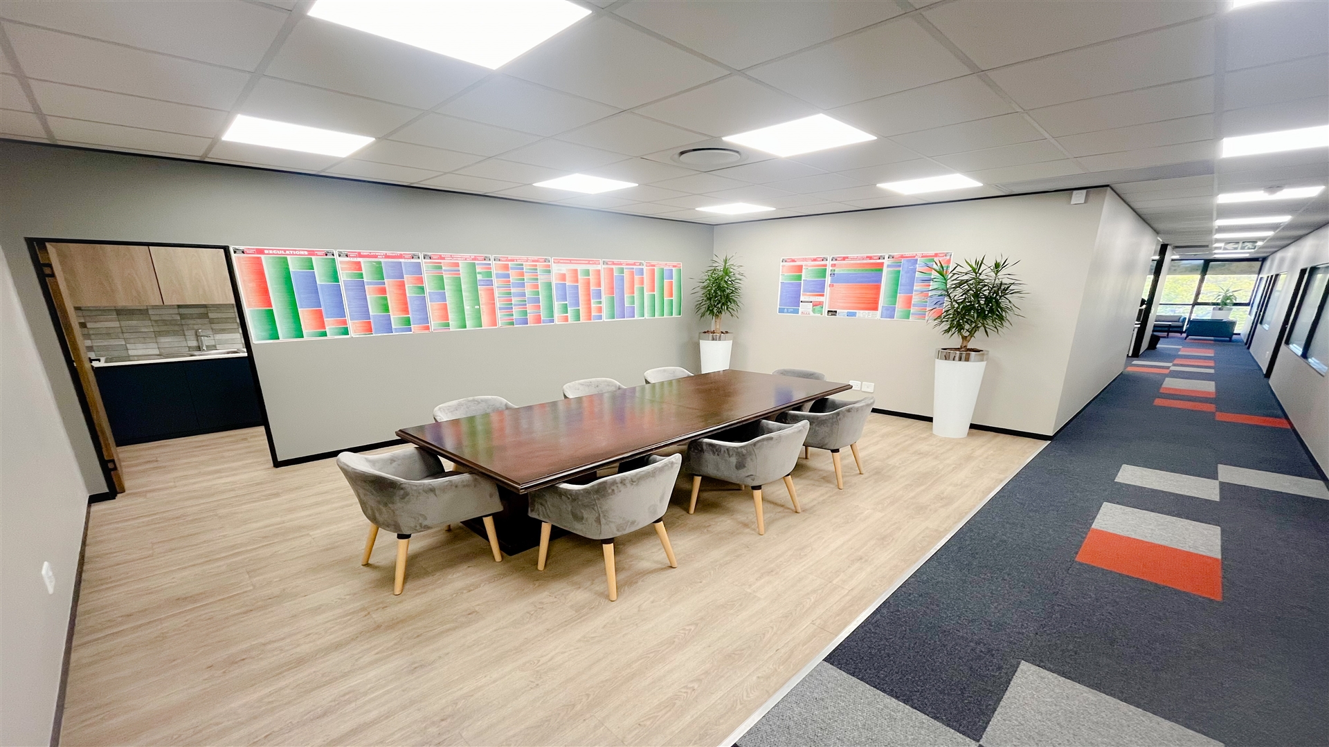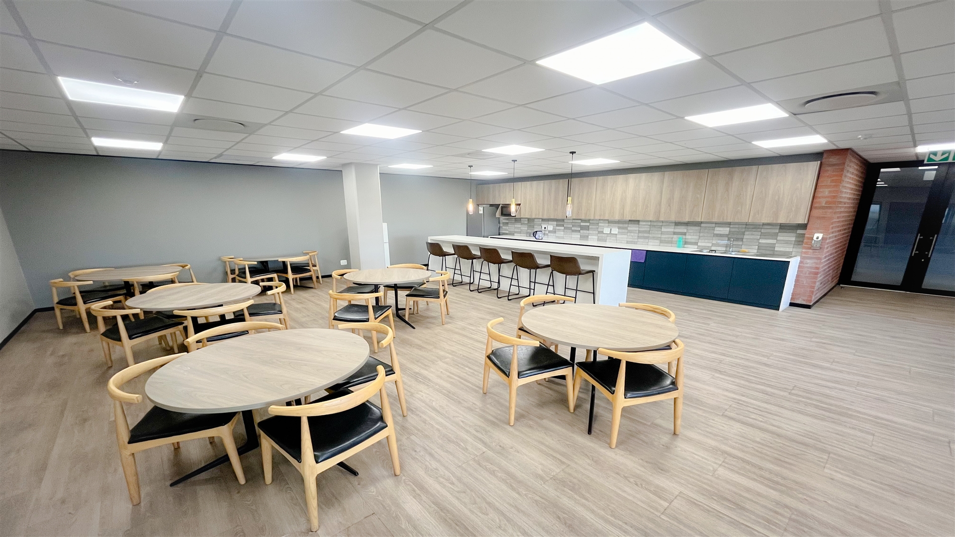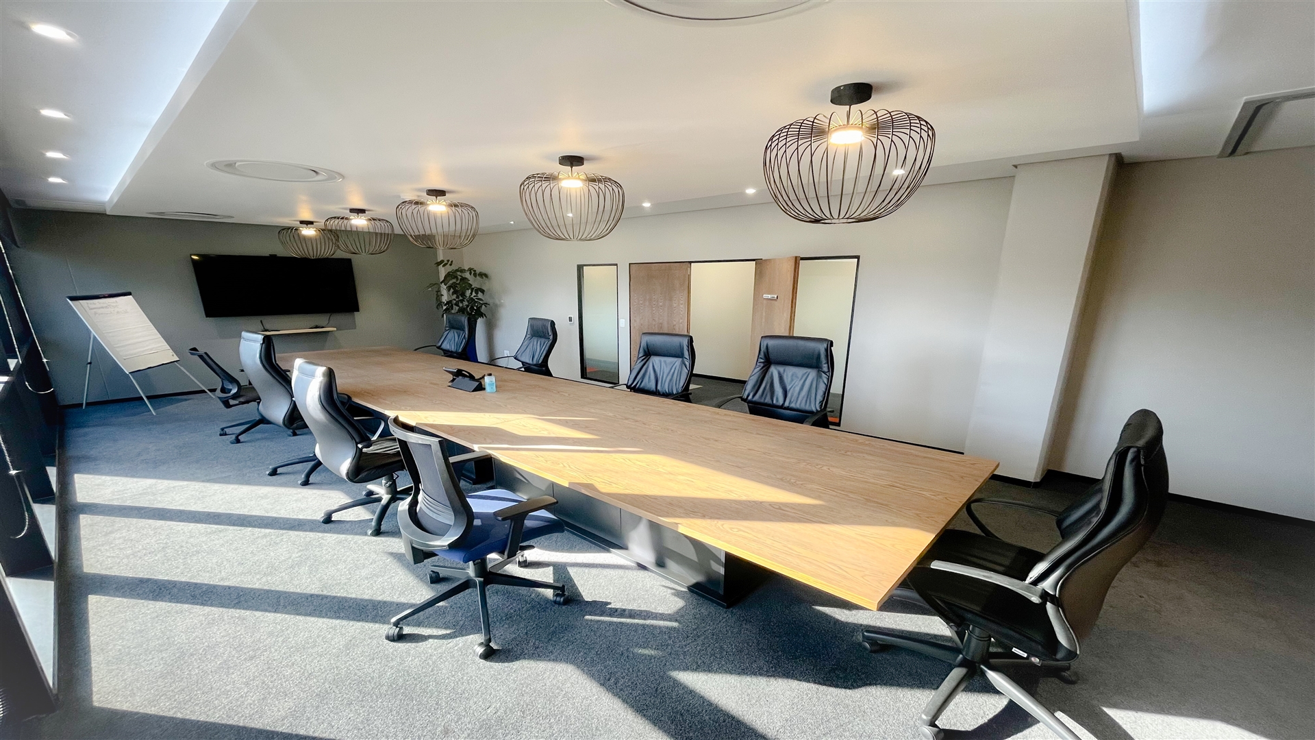 The layout features ample boardroom and meeting room space, predominantly open-plan areas along with some private offices, a large canteen and break area, beautiful balconies throughout, an expansive reception and waiting area, as well as dedicated storage and server rooms.