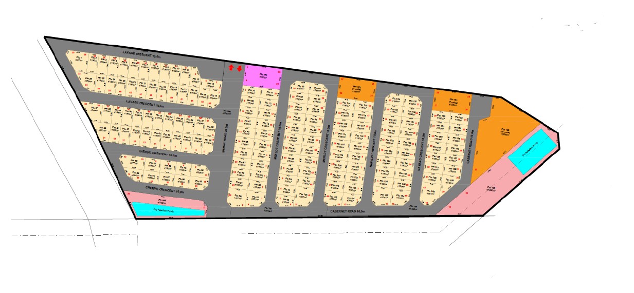 This 58,628m2 tract of land comes with approved subdivision and 3 phasing approval, offering a prospect for developers looking to minimize lead times. The layout is designed for a well planed development catering to both first-time buyers and growing families.