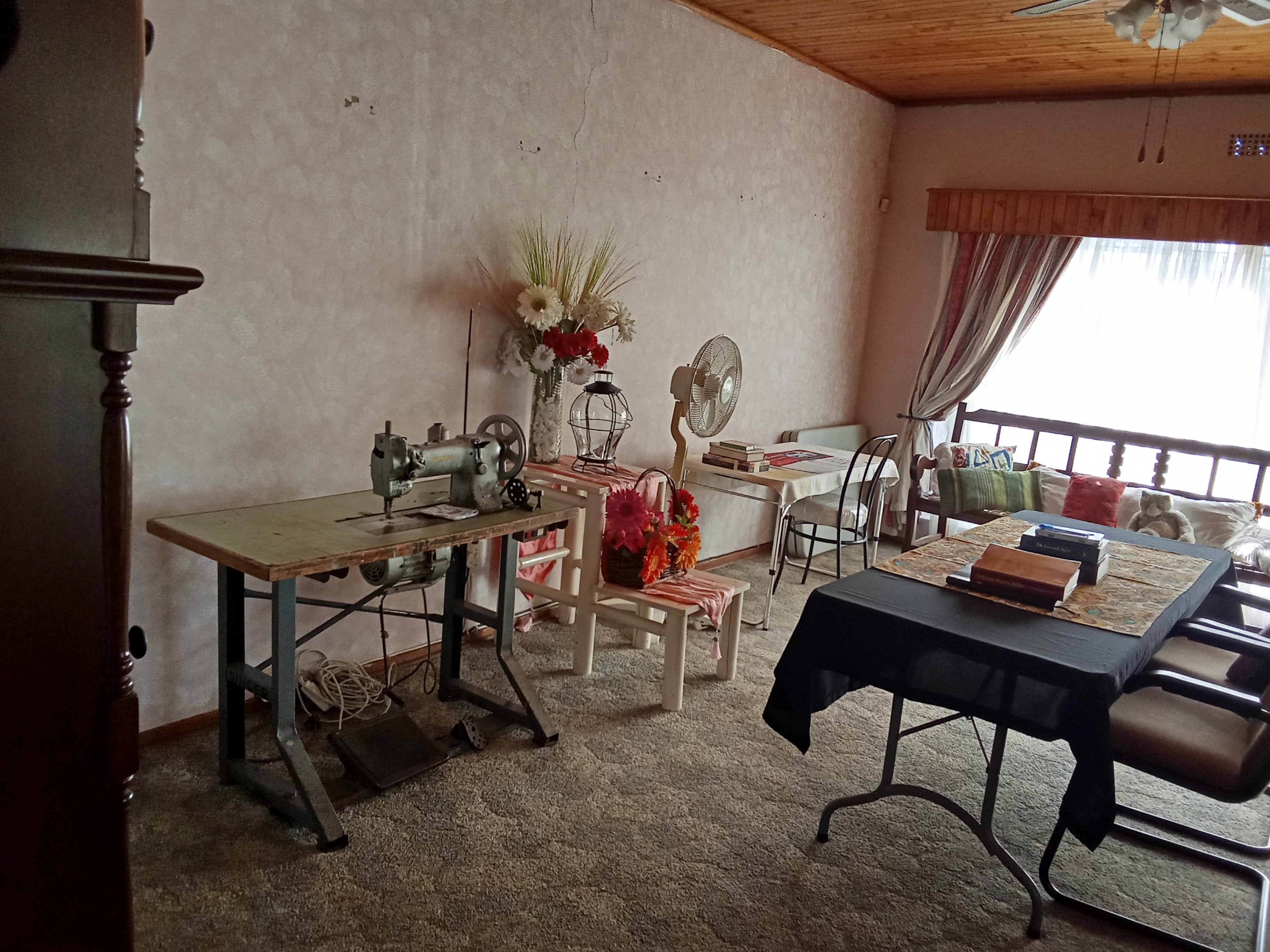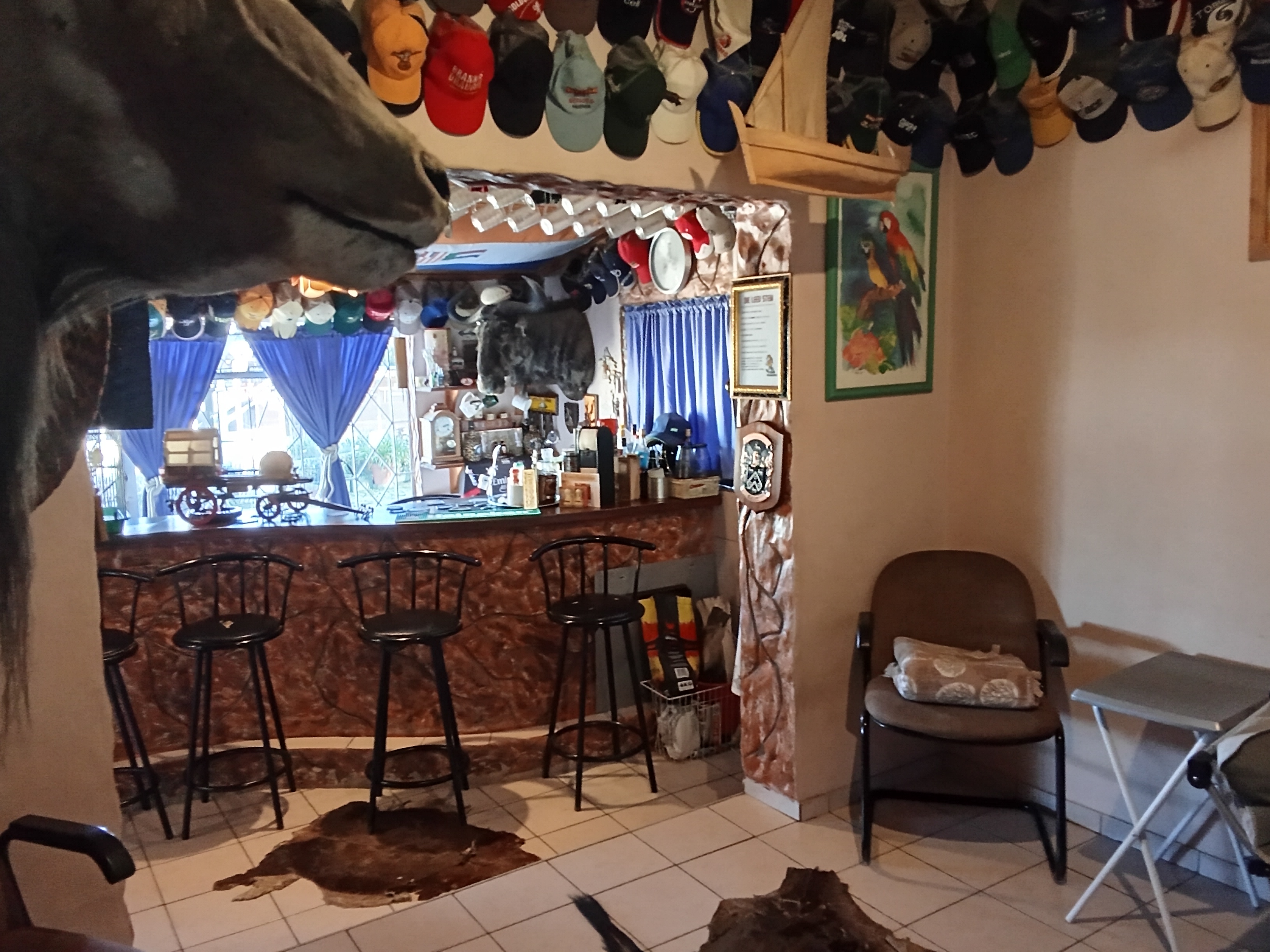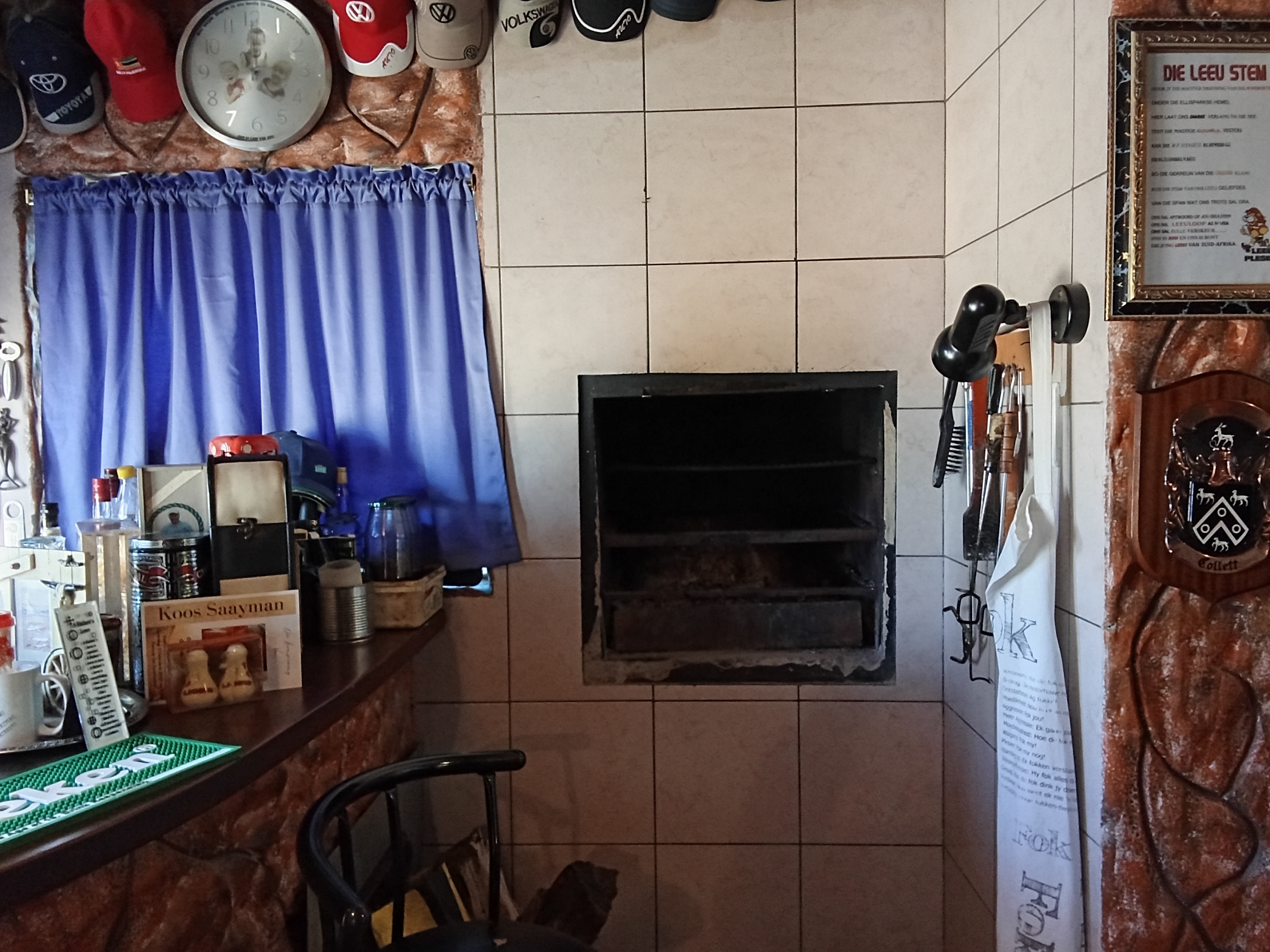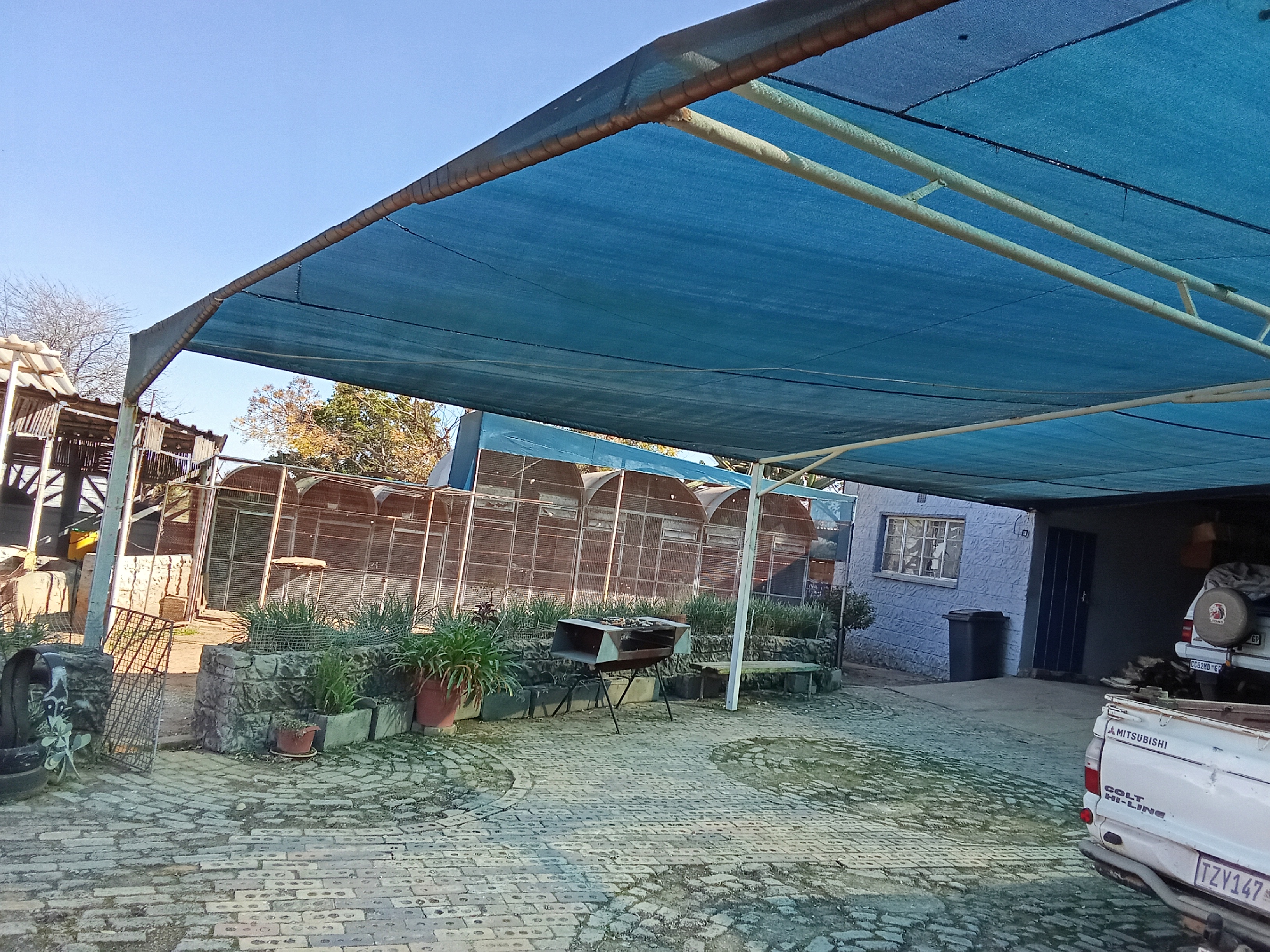 For animal enthusiasts, the property includes five lockable stables and bird cages. Enjoy outdoor gatherings in the entertainment area, and benefit from a borehole and sprinkler system for easy maintenance of the grounds.