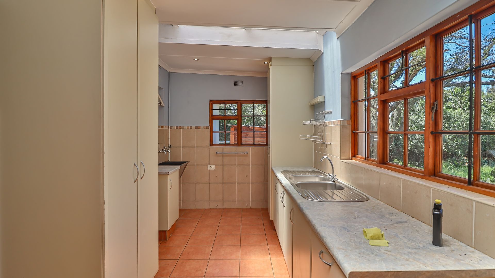 A separate 89m2 cottage is a rare to find of this size and is worth its weight in gold – it consists of 2 big bedrooms and 2 bathrooms (one en-suite). The accommodation consists of a pretty kitchen leading to a large dining-room with stairs down to lounge (complete with own fire-place). Doors from the lounge open out to the garden. It would be easy to fence a private garden for the cottage to make it separate from the main house affording you complete privacy if needed. This cottage would generate a handsome rental to contribute toward your investment.