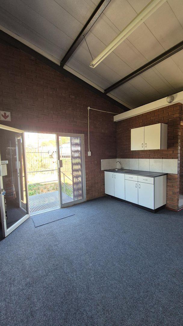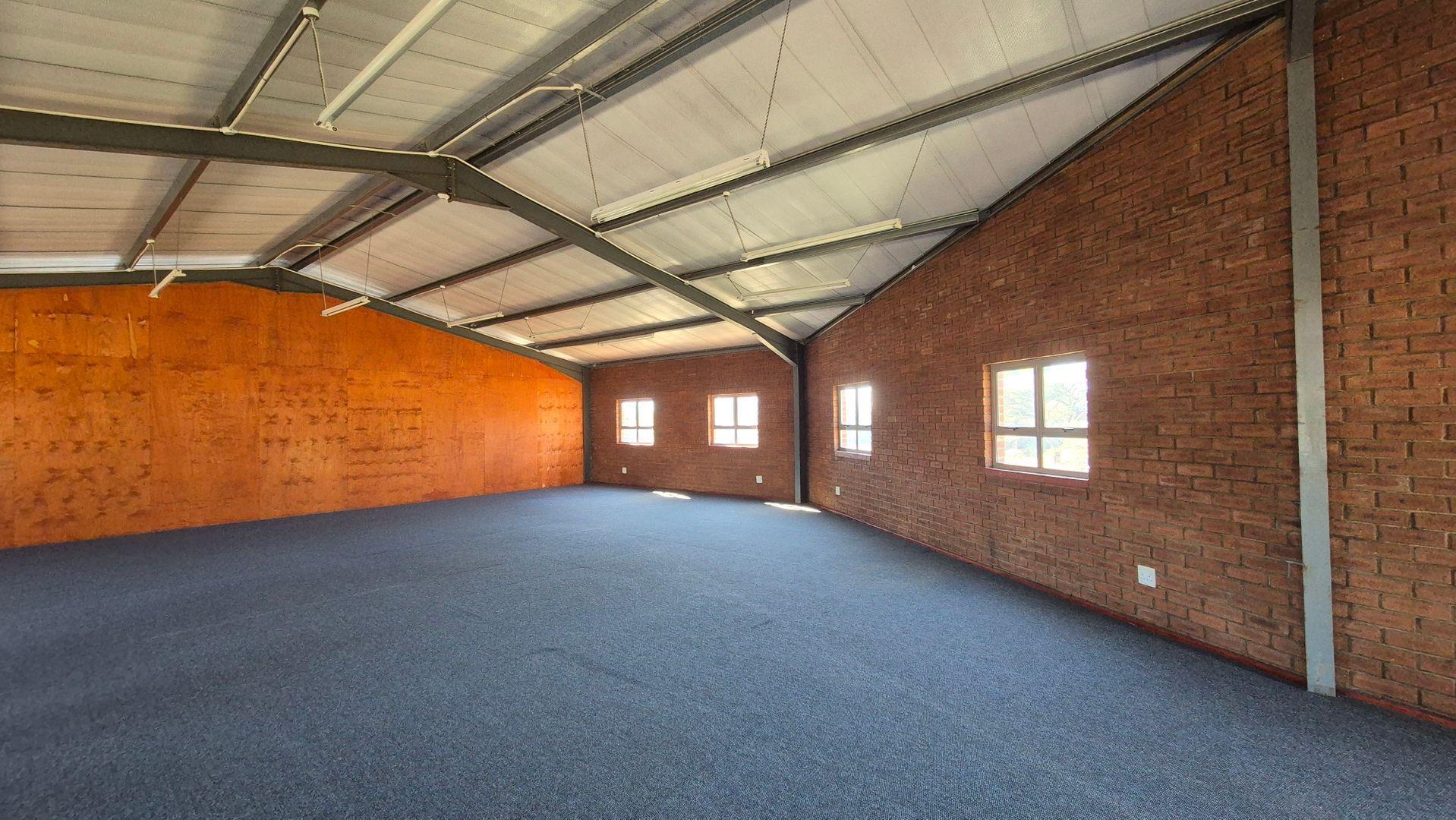 The separate double-storey building comprises of the ground floor which has two sections, currently let as one, and the first floor consisting of two carpeted offices of 183.6m2 and 159m2 respectively. Access via external staircases on each side. Each office has a kitchenette and ablution facilities.