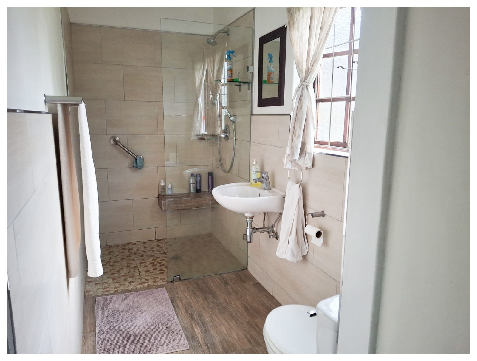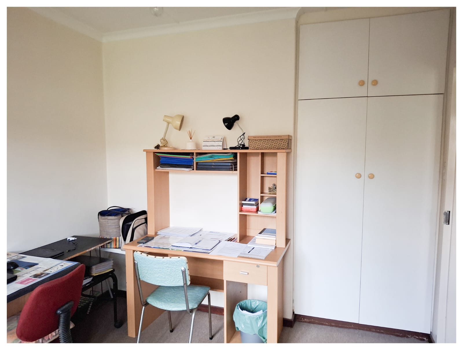 The home offers three good-sized bedrooms, each fitted with built-in cupboards. The main bedroom features a modern en-suite bathroom (with a large shower), while the other two bedrooms share a neat family bathroom (with bath).