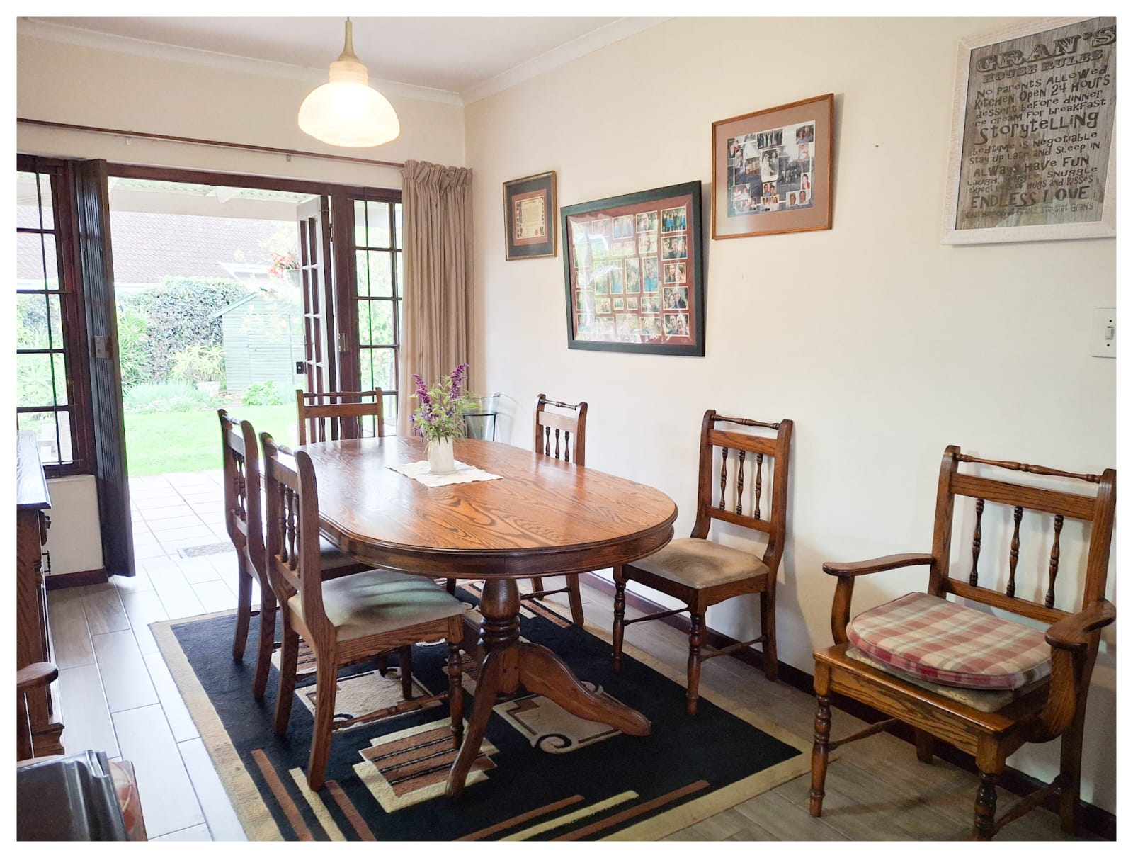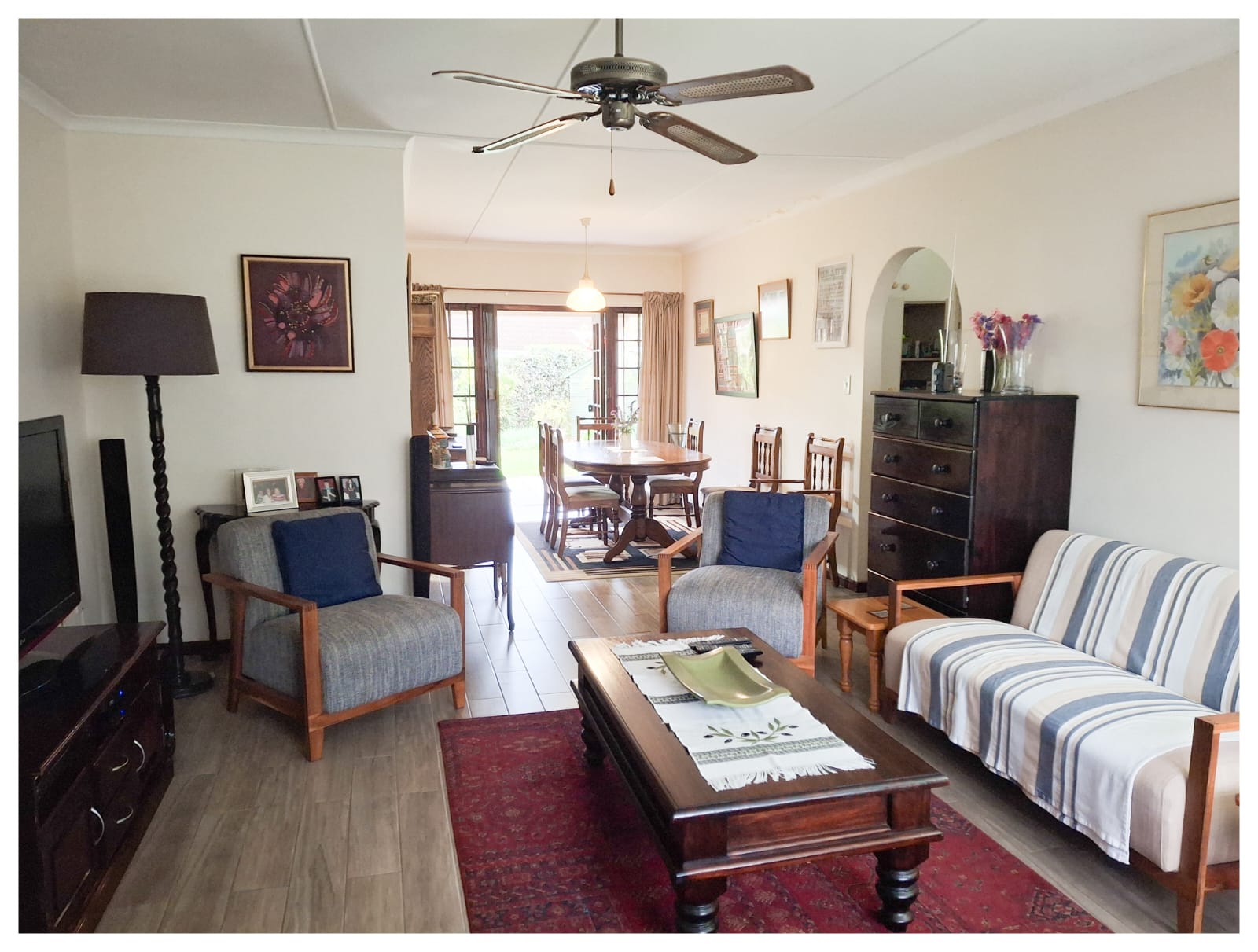 The spacious lounge is open-plan to the dining-room which then leads through to the kitchen. From the dining-room double doors lead out to a large covered patio that overlooks a private garden with green lawns and established flower beds.