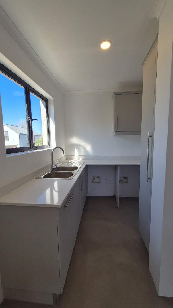 The open-plan kitchen, dining, and lounge areas flow beautifully together. The kitchen is fitted with a centre island that includes a gas hob and oven, a light-up walk-in cupboard, and a separate scullery with a double sink and space for two undercounter appliances.