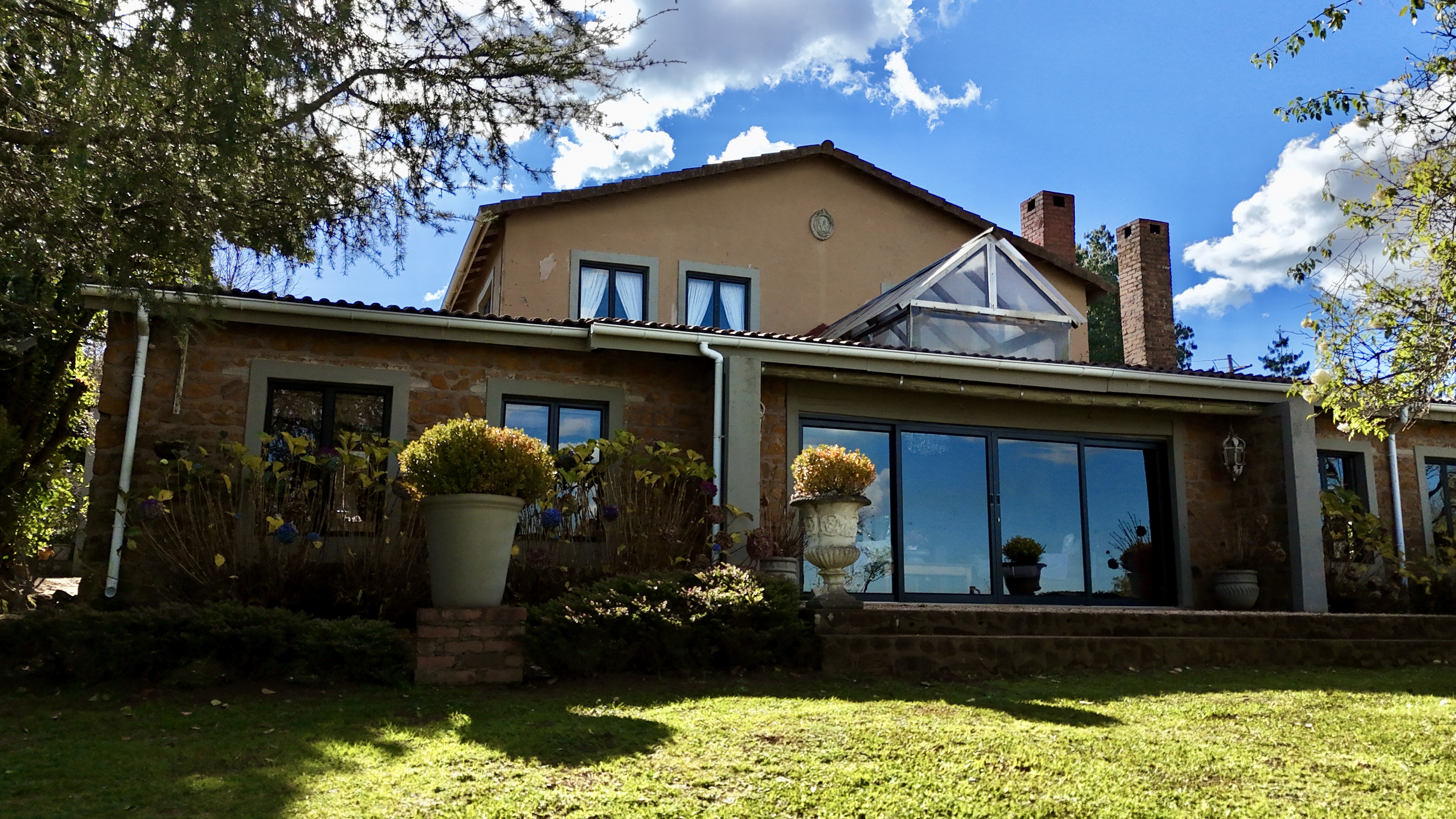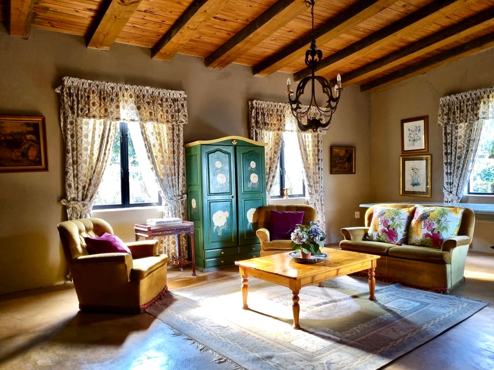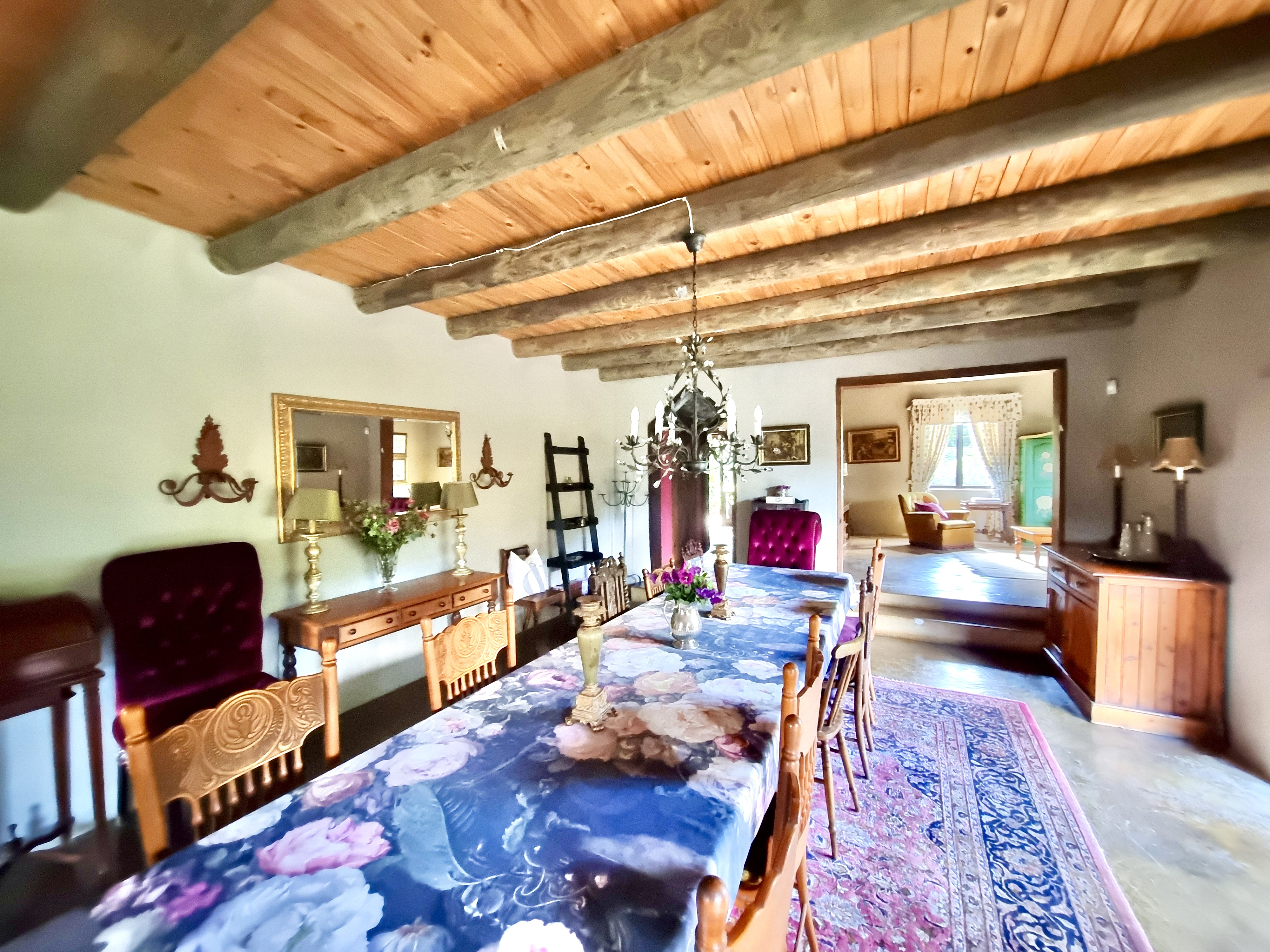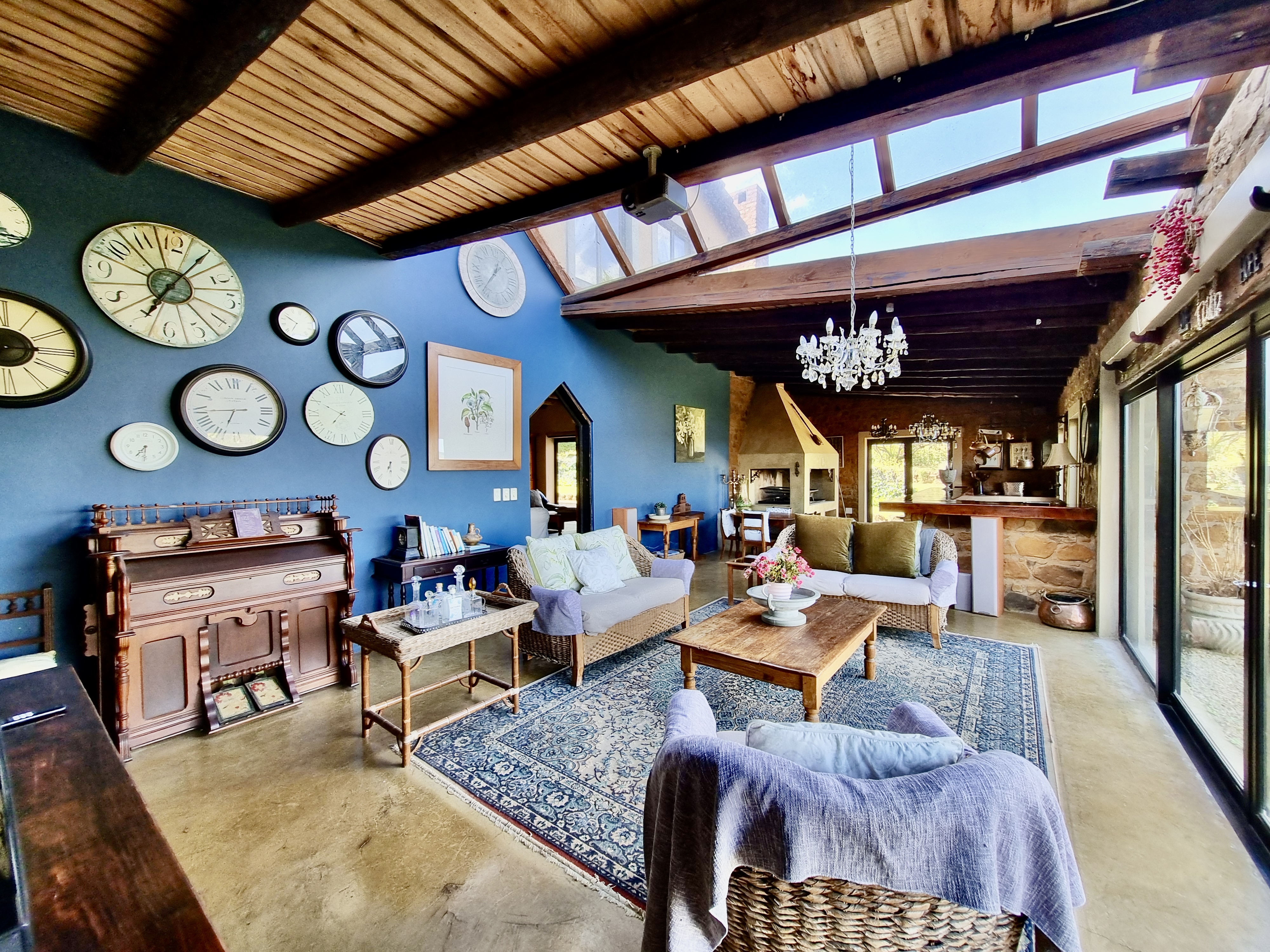 Character and warmth flow throughout - from the spacious lounge to the long, rustic dining room with its inviting fireplace and reading nook. The kitchen is fully equipped with a gas-electric stove, a large scullery, and everything needed for both family living and professional event catering. A cozy bar with its own fireplace opens through French doors to two sun-soaked patios that frame the serene views.