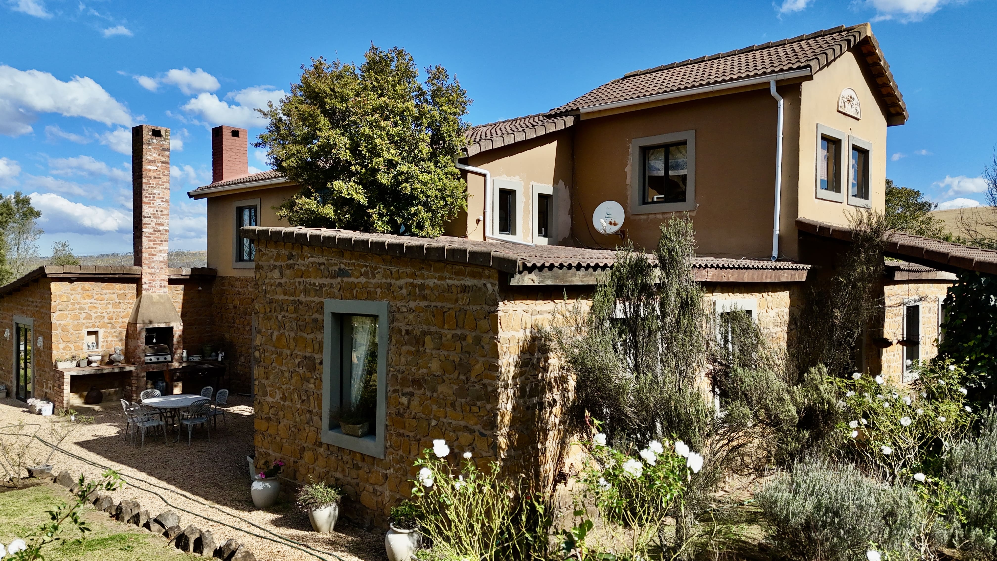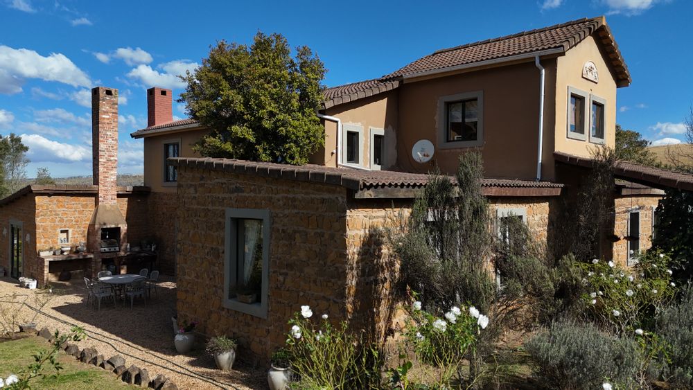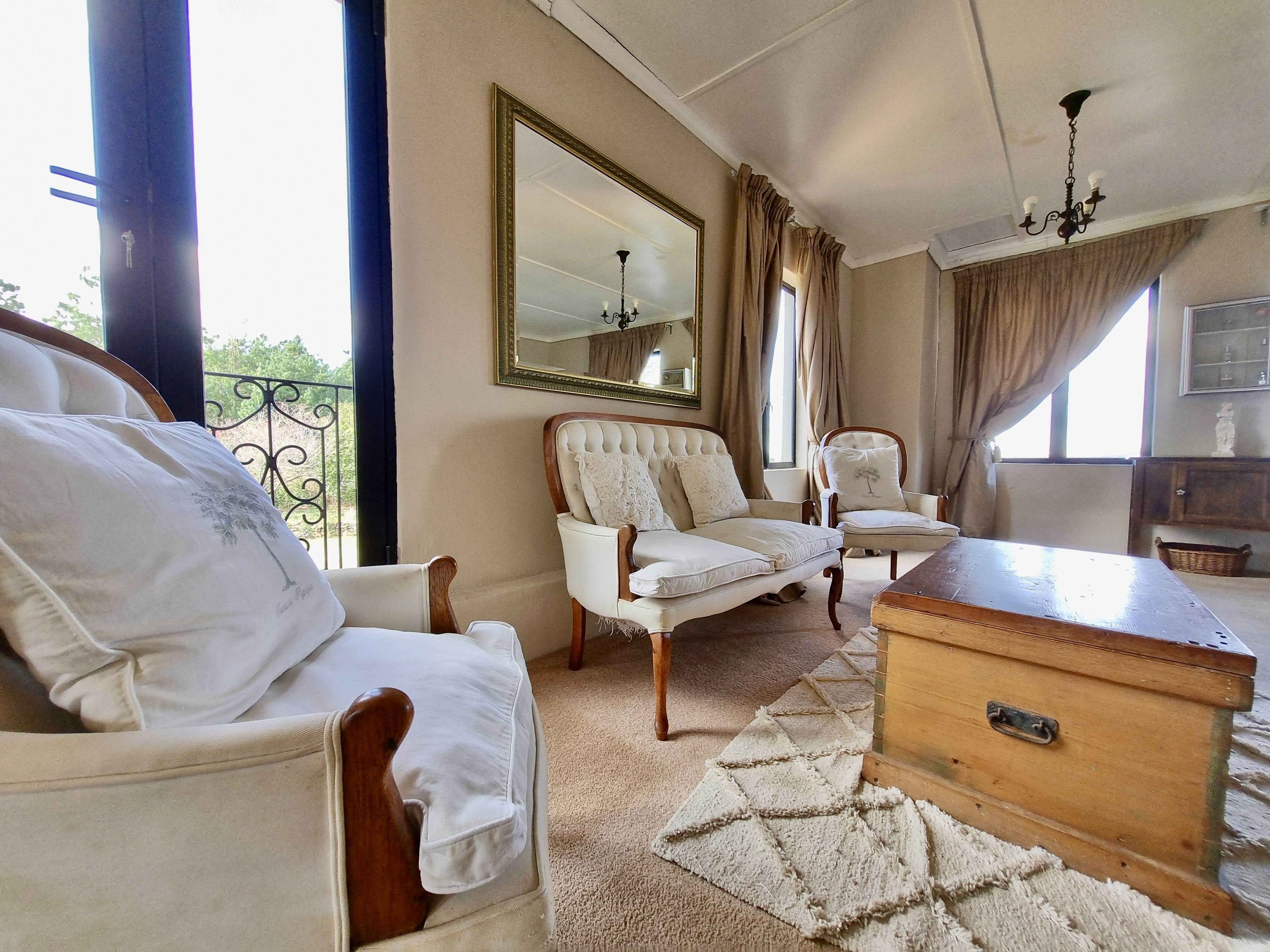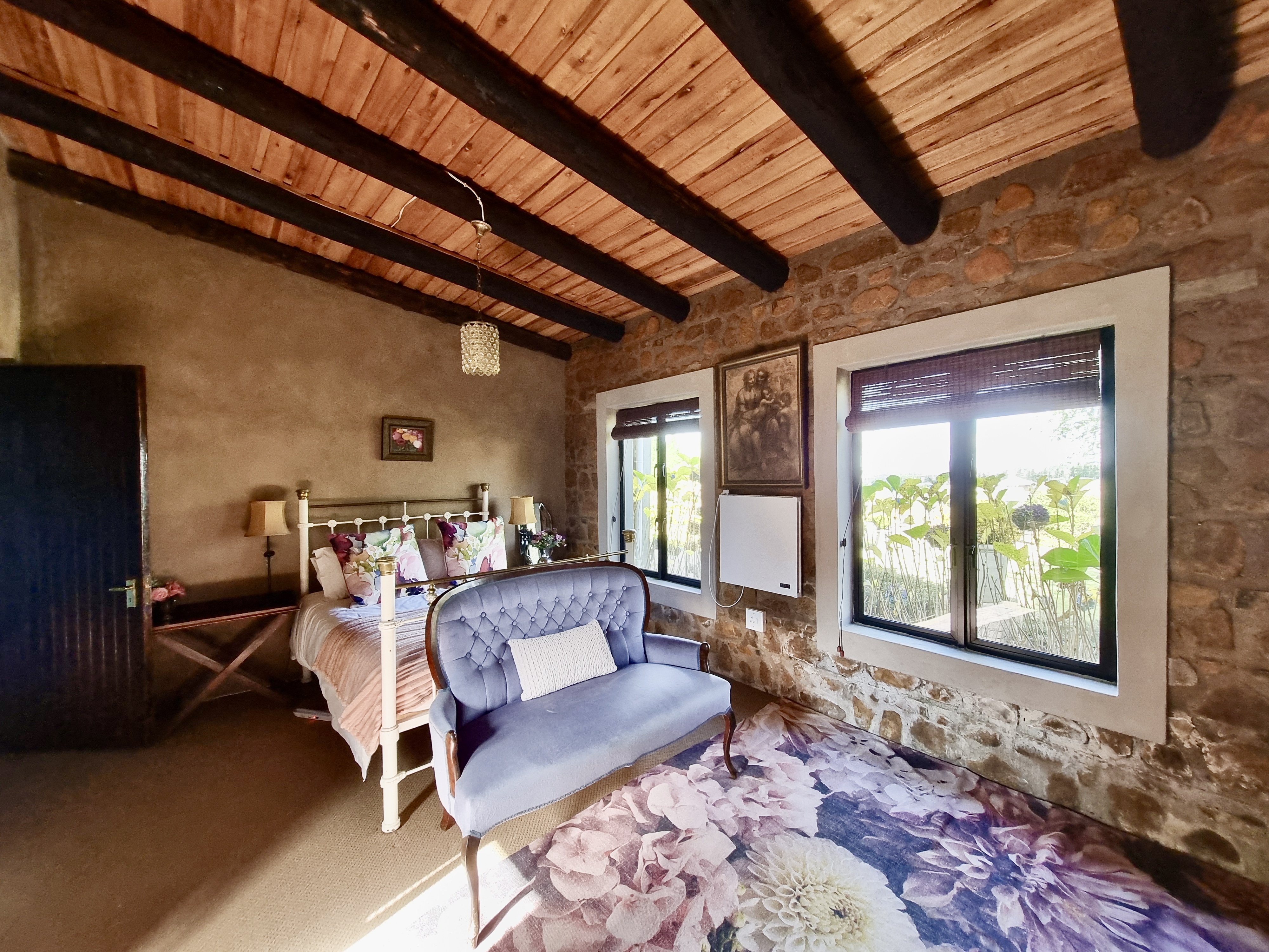 Accommodation includes the main house (sleeping 12) and two charming cottages, with additional lodging available nearby for larger events. Two scenic dams and solar-powered boreholes enhance the property’s self-sufficiency and eco-conscious appeal.