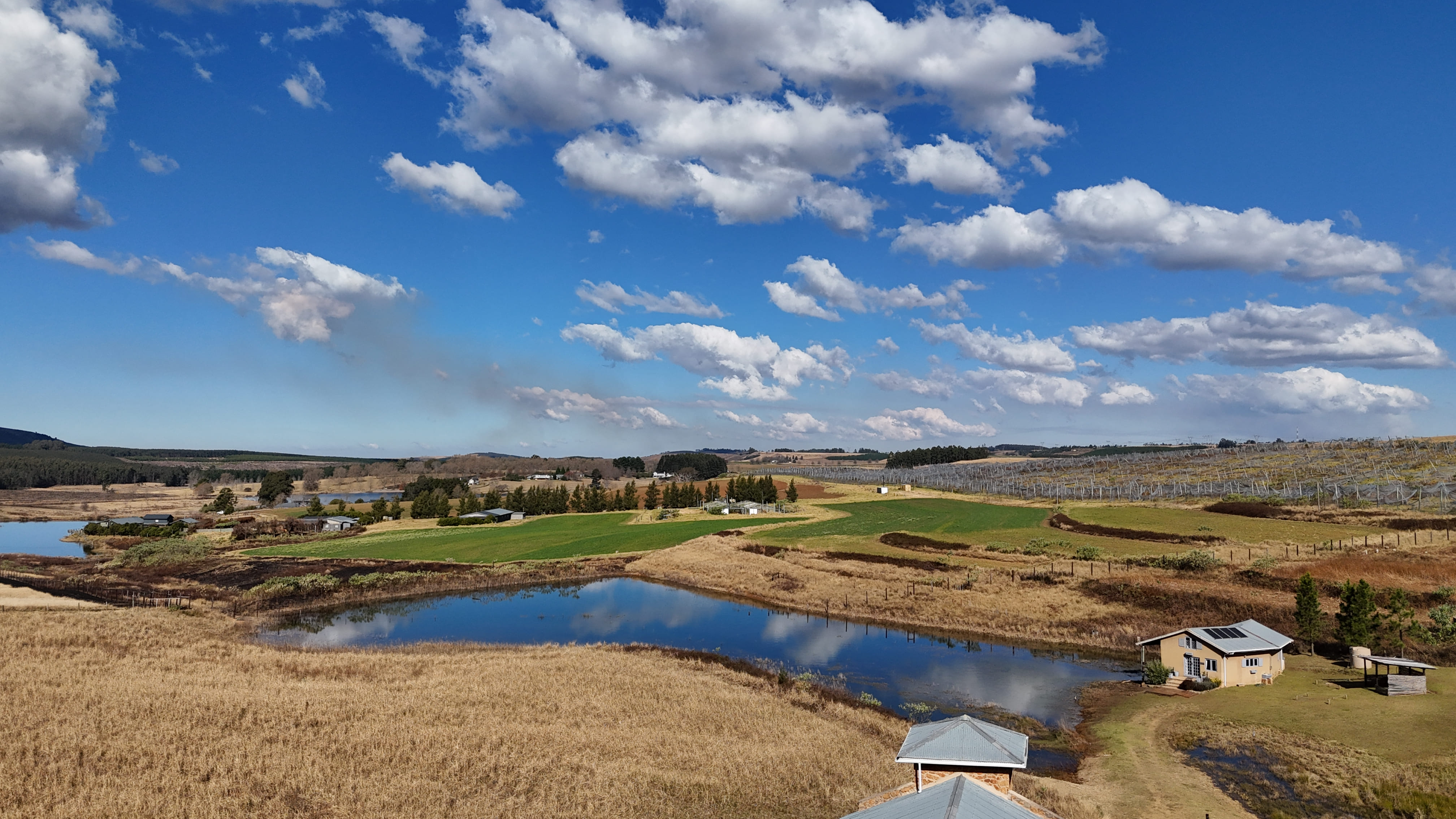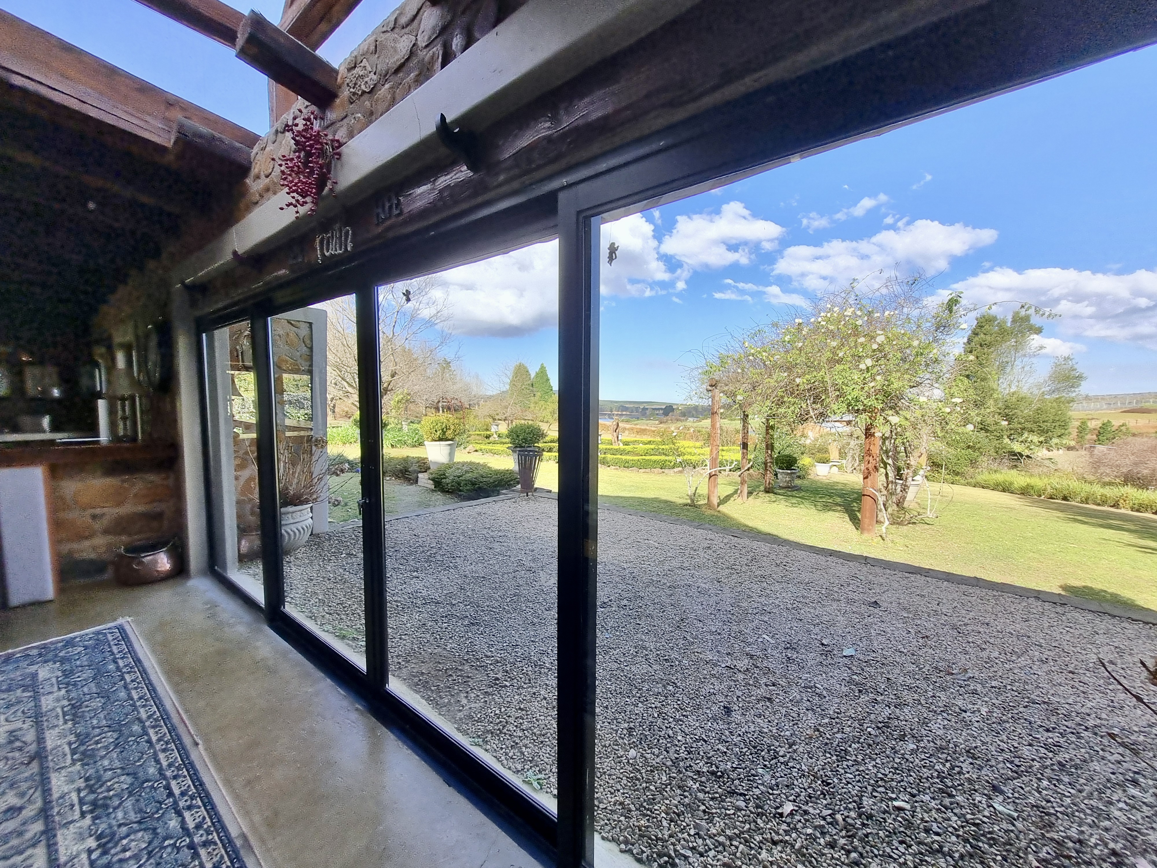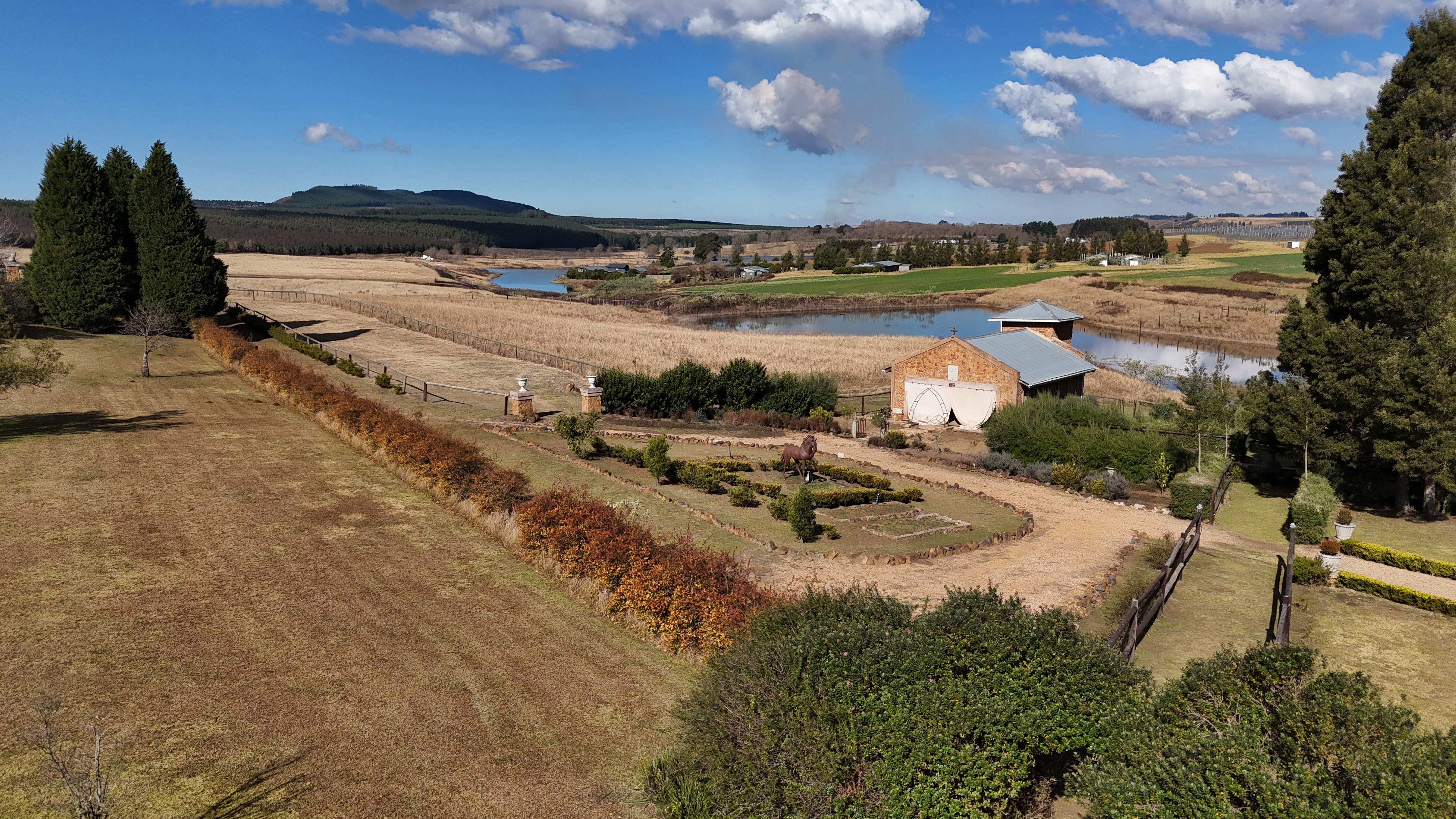 Accommodation includes the main house (sleeping 12) and two charming cottages, with additional lodging available nearby for larger events. Two scenic dams and solar-powered boreholes enhance the property’s self-sufficiency and eco-conscious appeal.