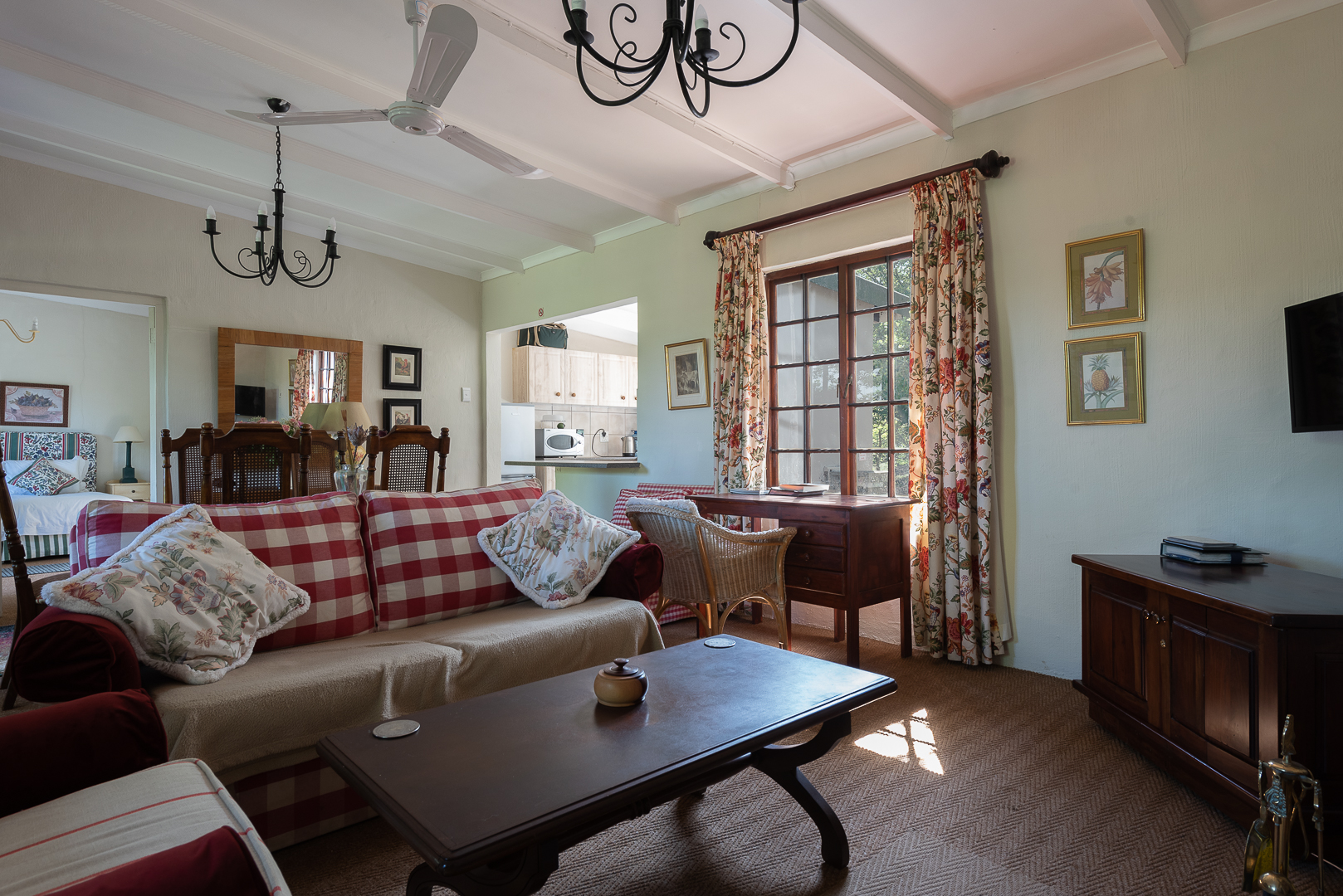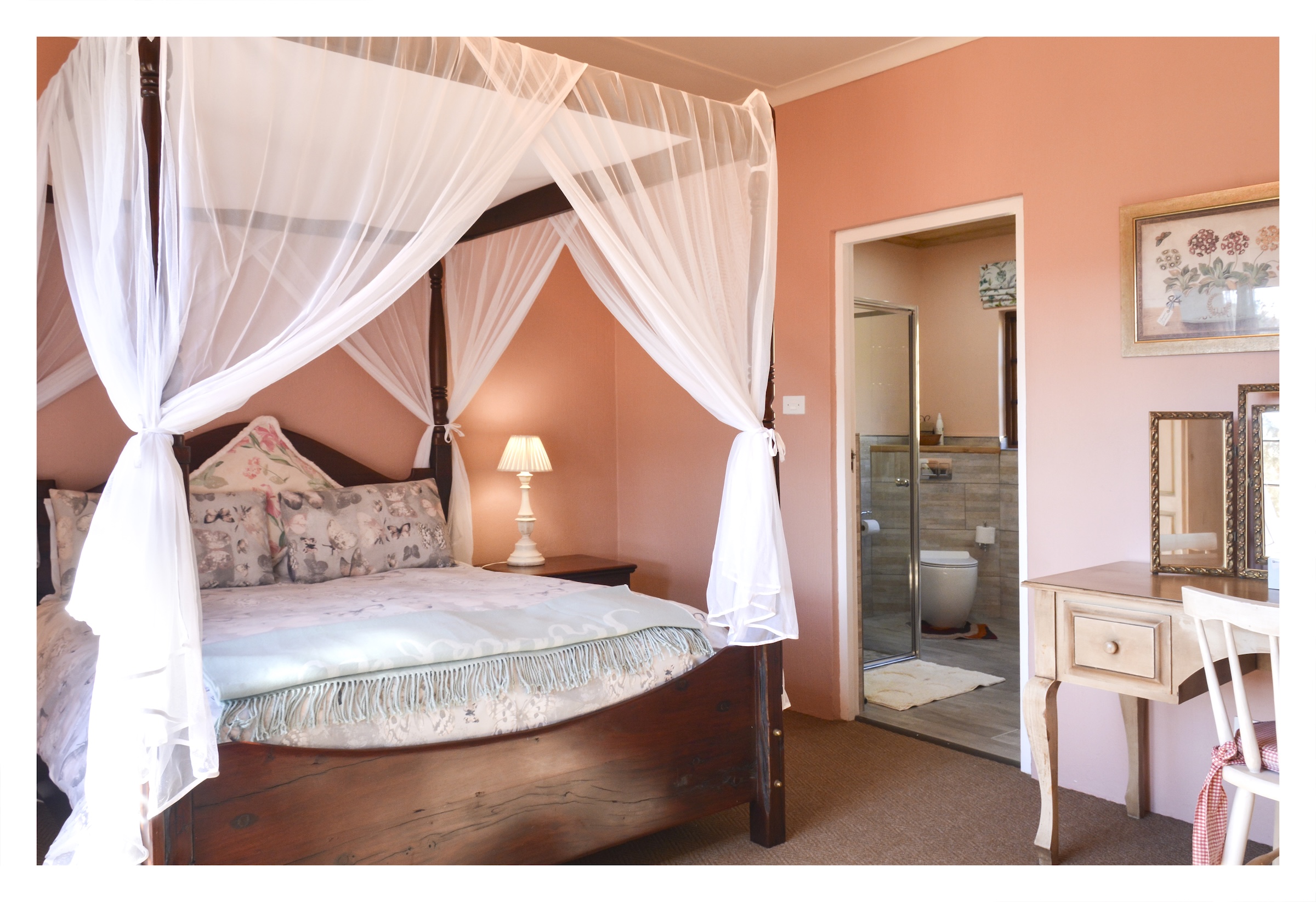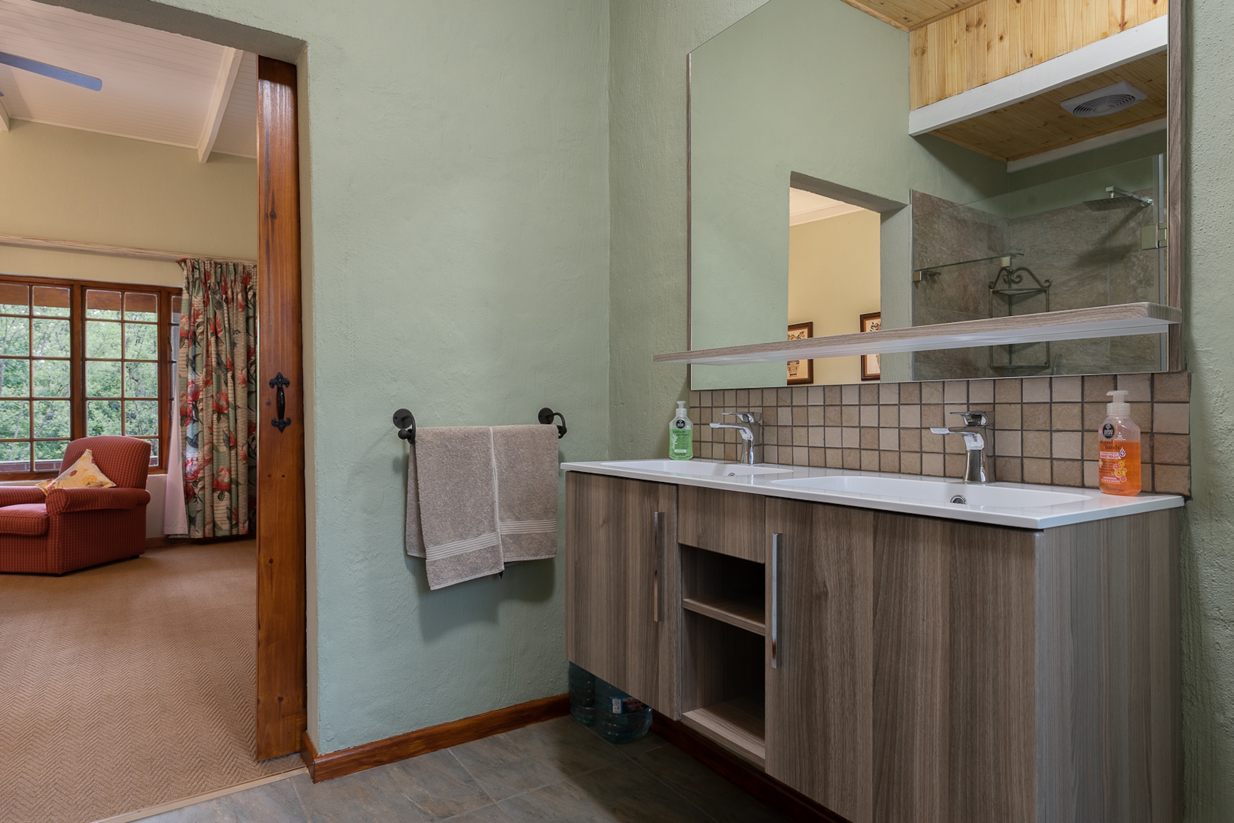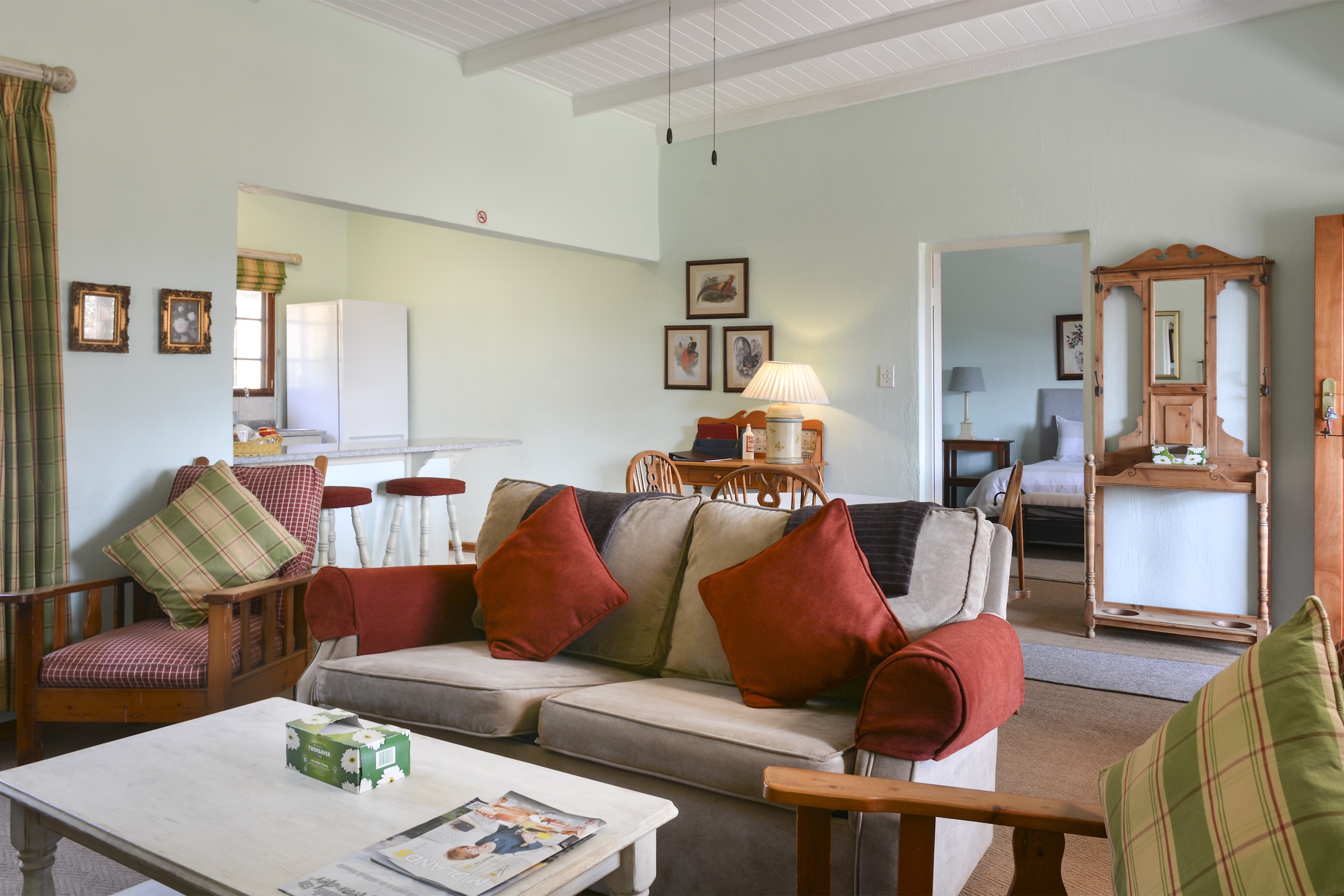 The 5.45 ha are a mixture of landscaping and lawns around the individual dwellings, all of which have fenced gardens, plus extensive planted areas of shrubs and flowers interspersed with large trees all of which combine to give the property a remote and tranquil feeling which attracts various species of small game and a large variety of birds. There is also a natural pond which is part of an adjoining wetland at the bottom of the property which attracts various bird life including the Crowned Crane.