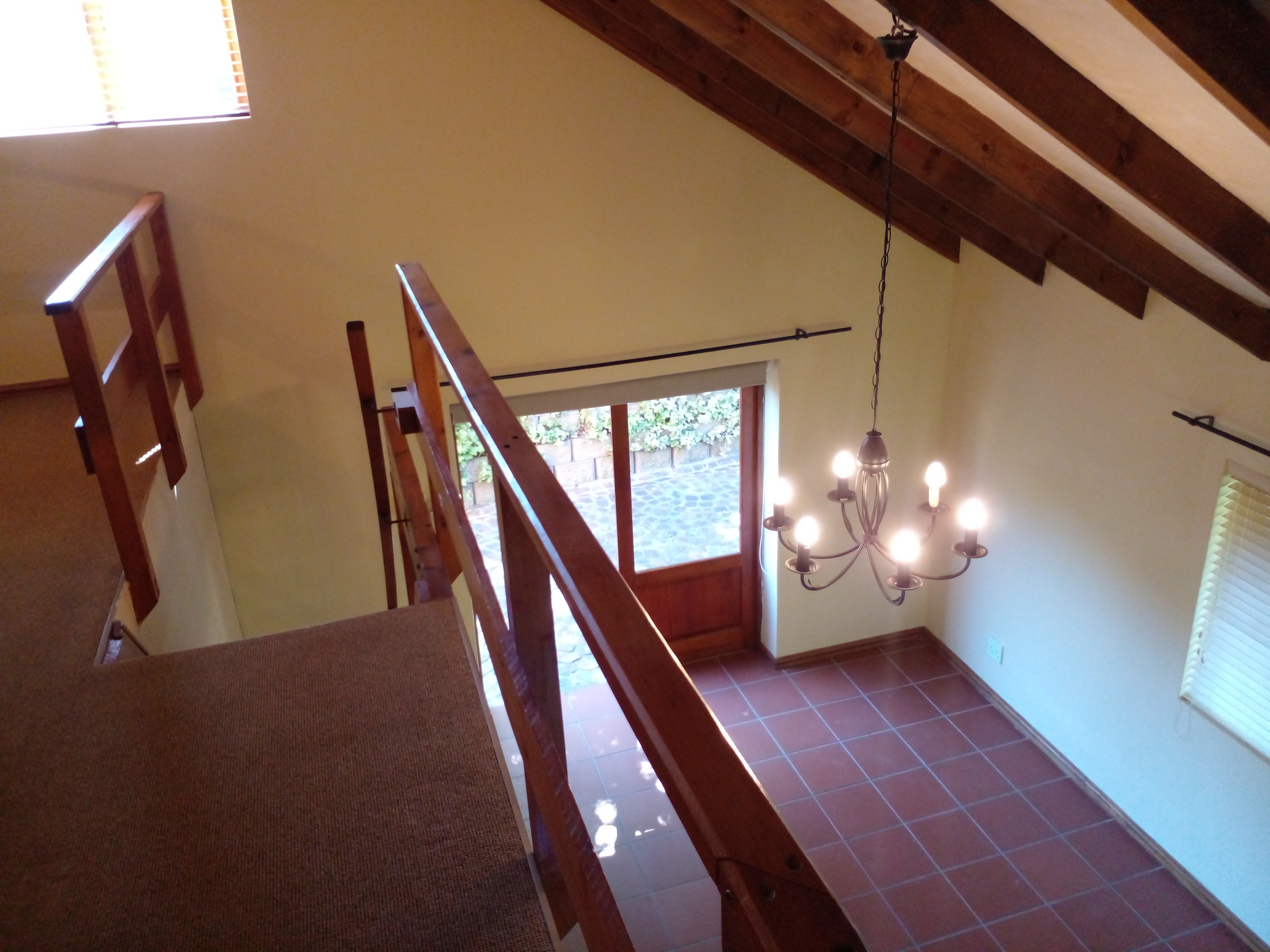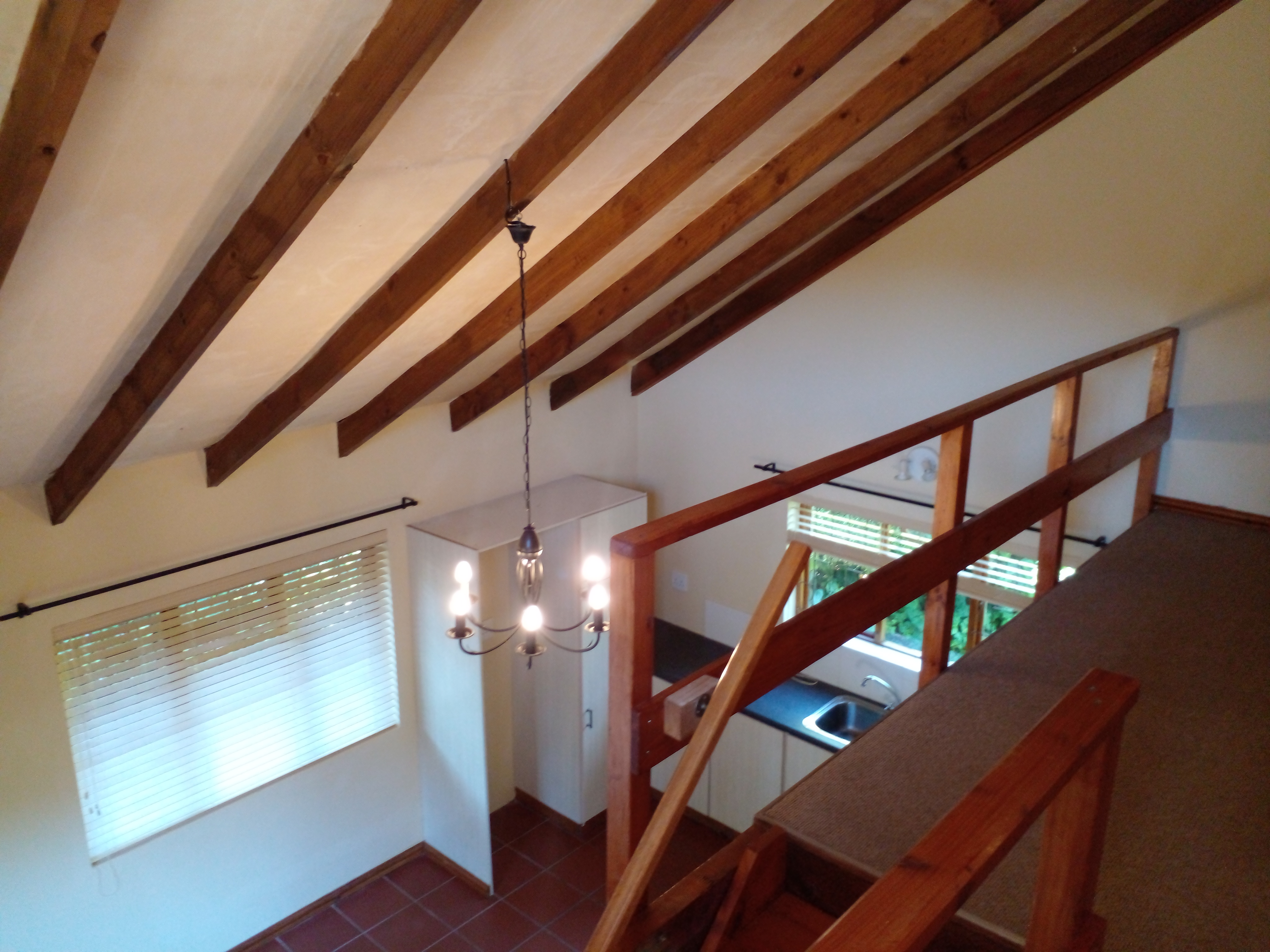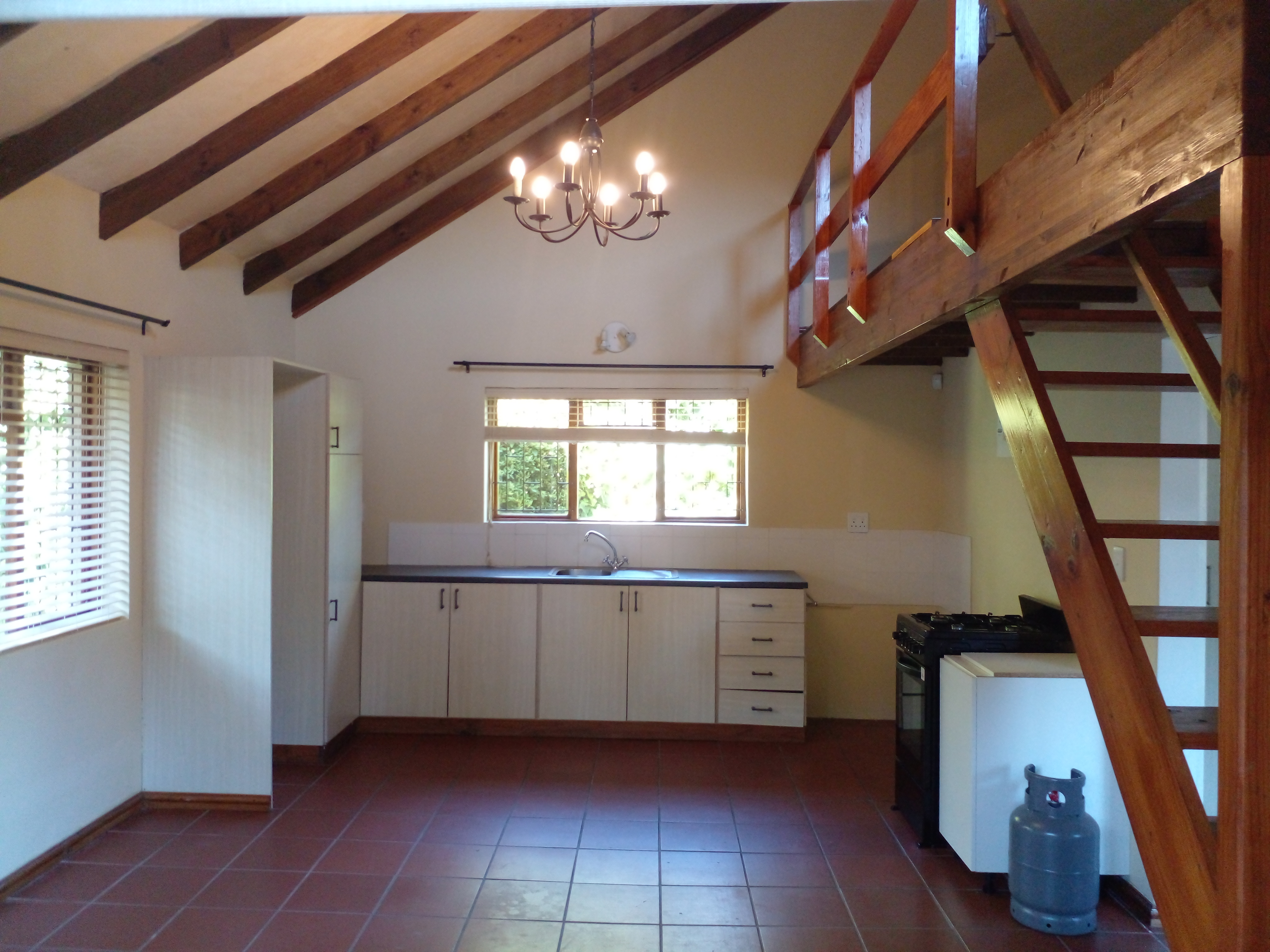The kitchen is fitted with a gas hob and oven, and offers space for a washing machine and a fridge/freezer. On this level, you’ll also find the main bedroom and bathroom, making day-to-day living simple and practical.