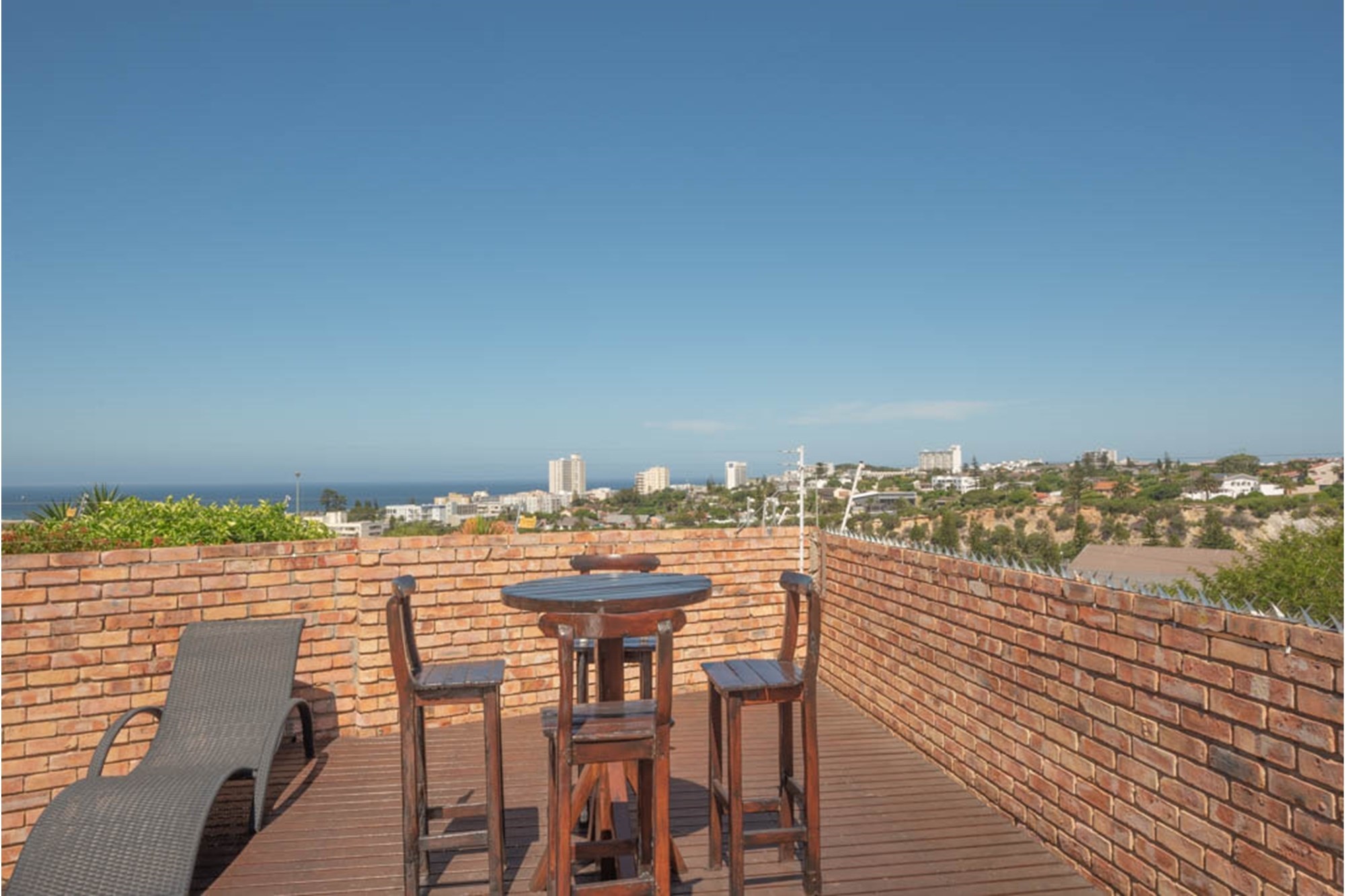 Outdoors, the landscaped garden invites you to unwind, with features including a braai area, sunny patio, and a rooftop terrace that offers breathtaking sea views—ideal for morning coffee or sunset gatherings. The automated double garage and ample on-site parking for up to eight vehicles add practicality to this impressive offering.