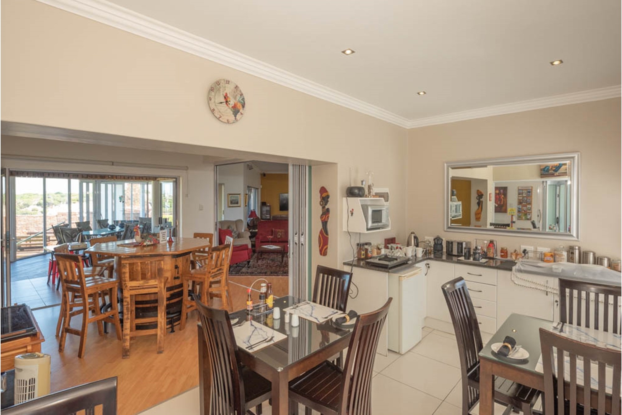 Currently operating as a successful Bed & Breakfast, this beautifully renovated home is also ideally suited for a large or extended family. Each of the six spacious, en-suite bedrooms provides a private retreat—ideal for guests or family members alike. High ceilings, tiled flooring, and expansive aluminium-framed windows enhance the open, airy feel throughout, while premium finishes add a touch of modern elegance.