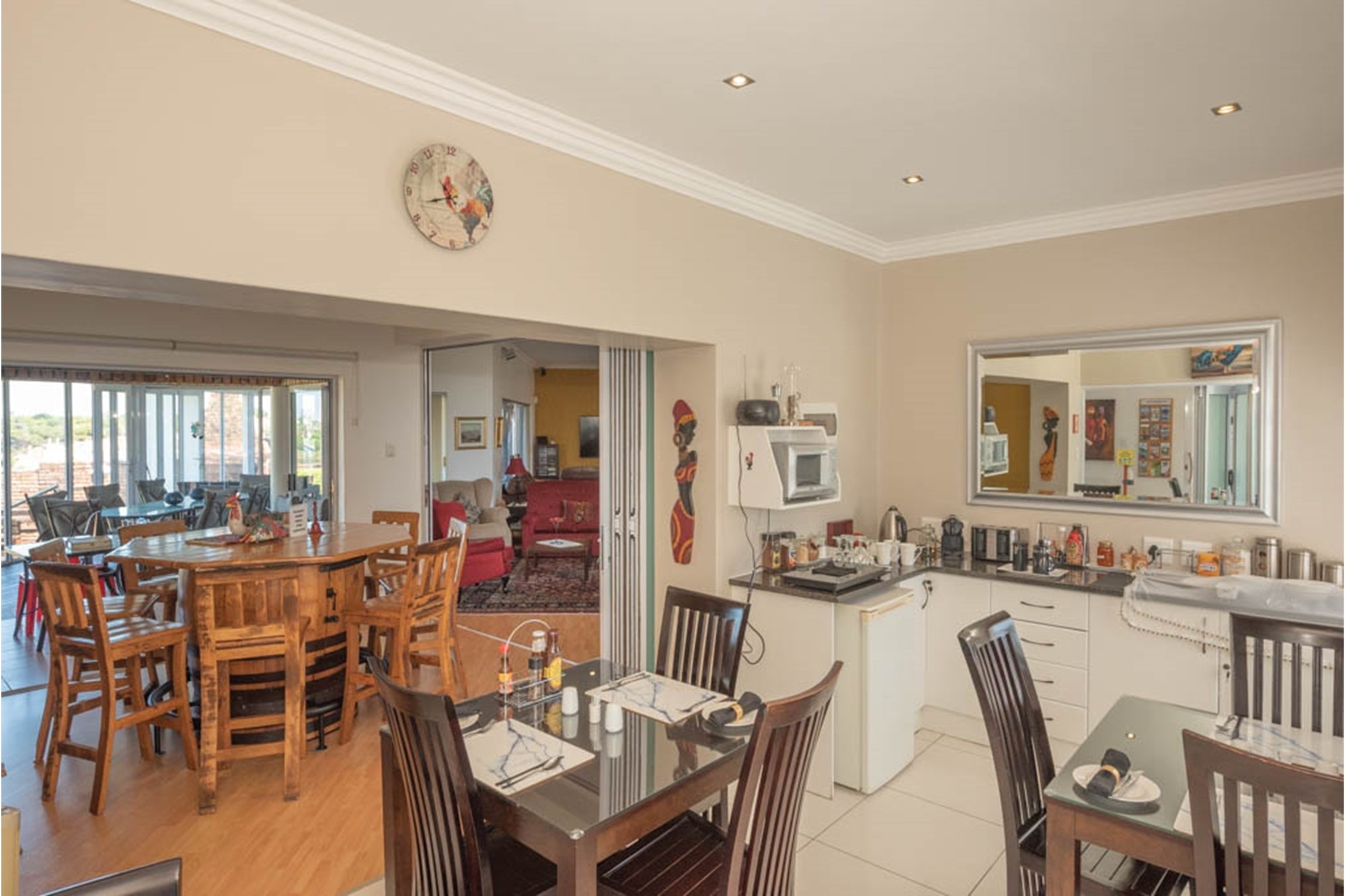 Currently operating as a successful Bed & Breakfast, this beautifully renovated home is also ideally suited for a large or extended family. Each of the six spacious, en-suite bedrooms provides a private retreat—ideal for guests or family members alike. High ceilings, tiled flooring, and expansive aluminium-framed windows enhance the open, airy feel throughout, while premium finishes add a touch of modern elegance.