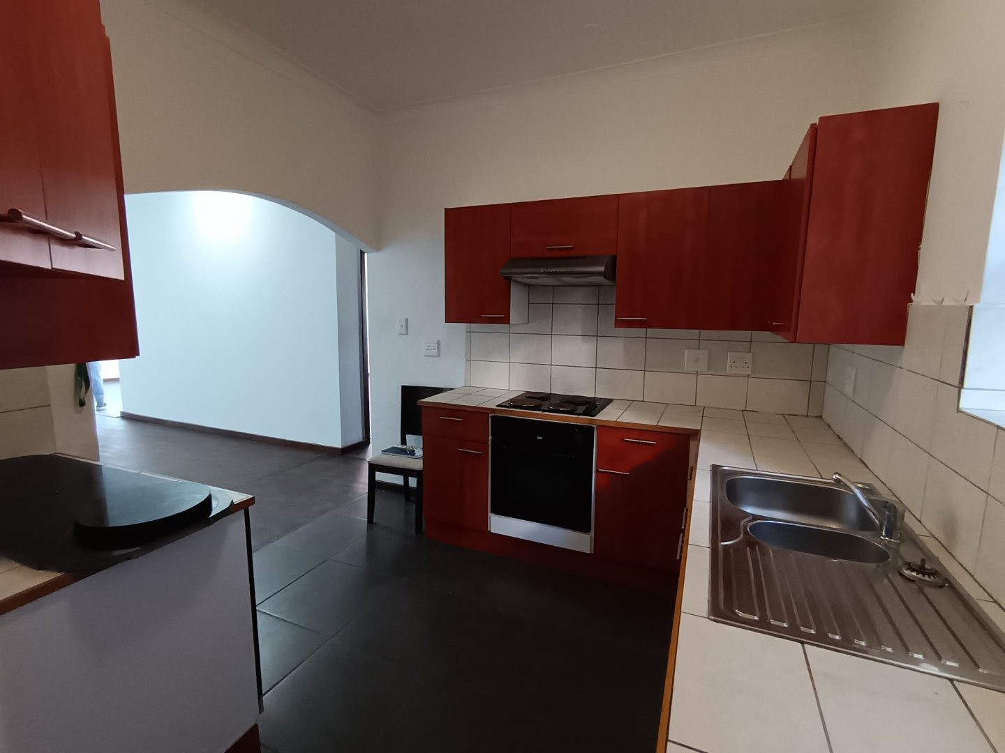 The kitchen is neat and functional, with tiled floors, ample cupboard space, quality countertops, an electric stove and extractor fan. The sunny lounge is spacious and inviting, complemented by large windows and warm wooden flooring, while the separate dining room is perfect for entertaining.