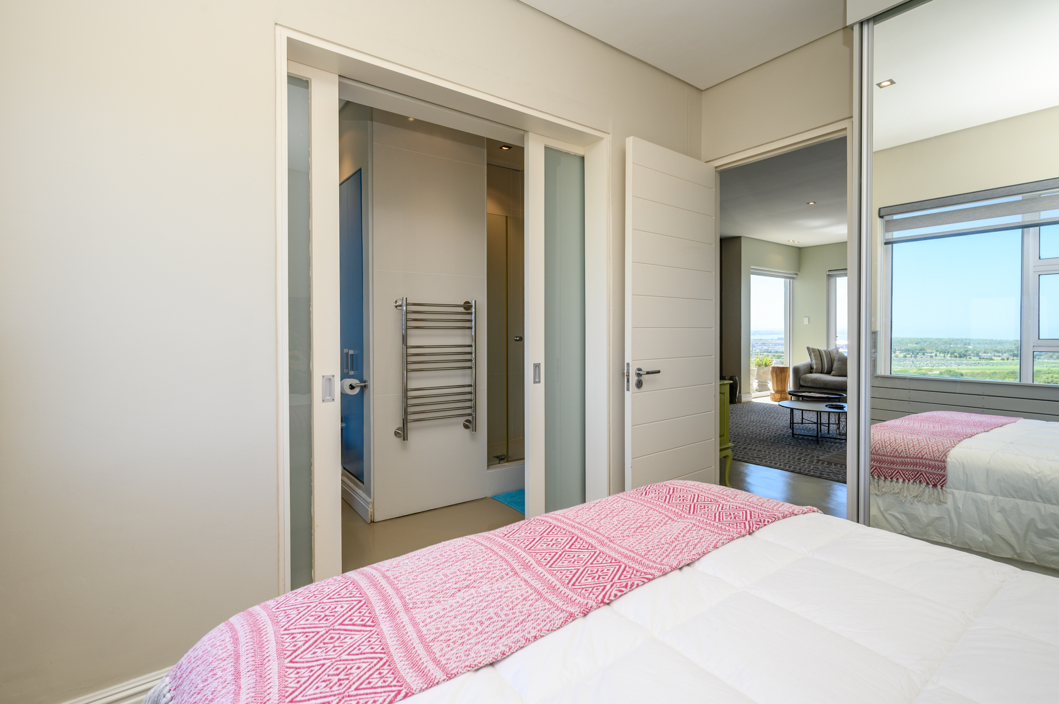 This luxury Apartment is situated on the top floor with private code access in the Lift to the top floor, a secure well managed Block. Parking for 2 cars (communal garage leading into the building and a separate lock up garage) Bonus: a storeroom for bikes or surf boards.. Electrified around the Complex and Solar panels for the Gates if there is load shedding.