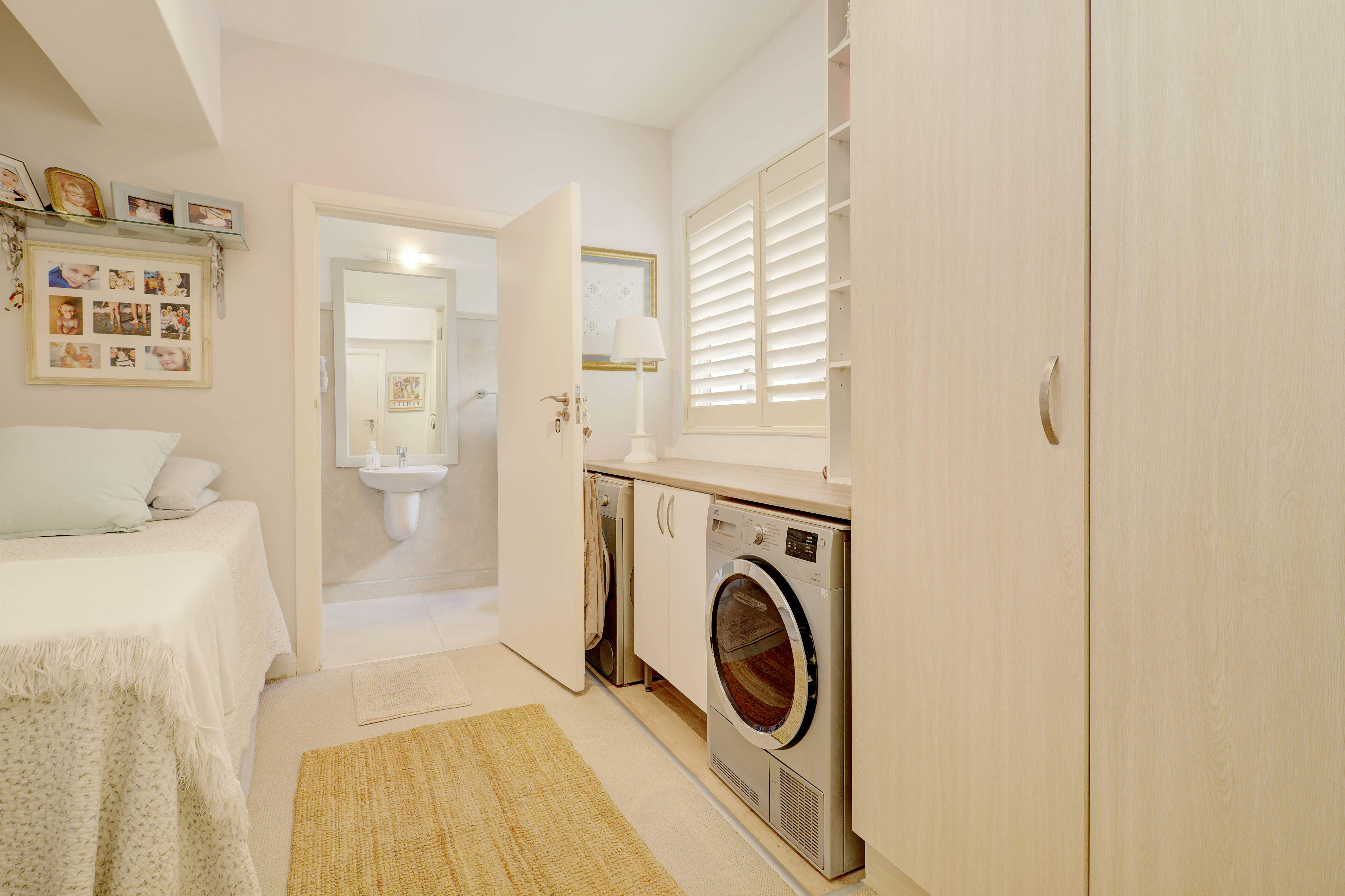 The master bedroom is exceptionally spacious and inviting, offering a calm retreat. Both bedrooms feature their own ensuite bathrooms and generous built-in cupboards, ensuring comfort and convenience.