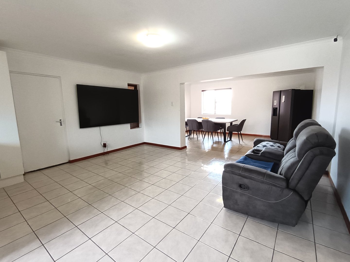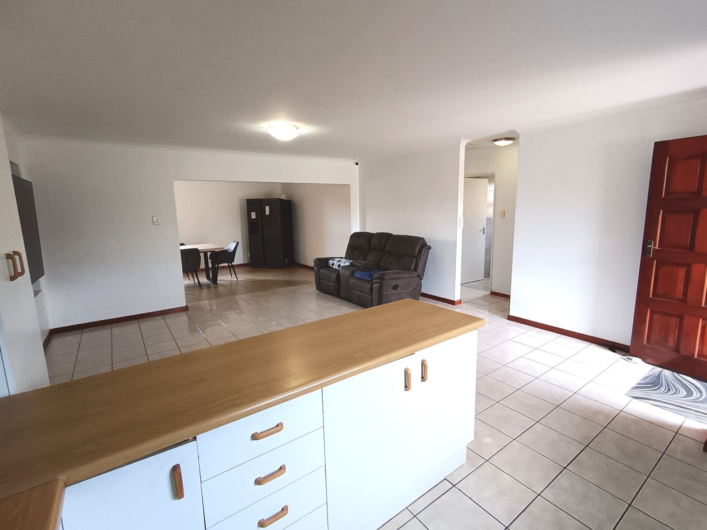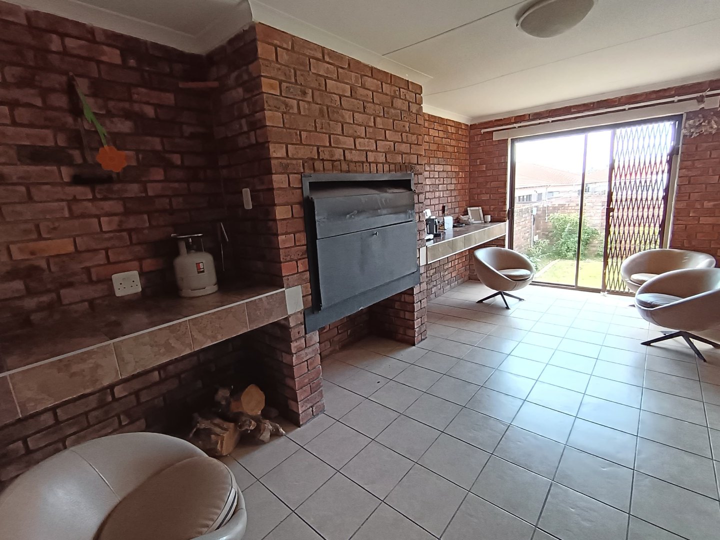 The open-plan living area is exceptionally generous, neatly tiled, ideal for relaxing or entertaining. A separate semi open plan dining room flows into a cosy built-in braai area, which opens to a small, private, enclosed yard.
