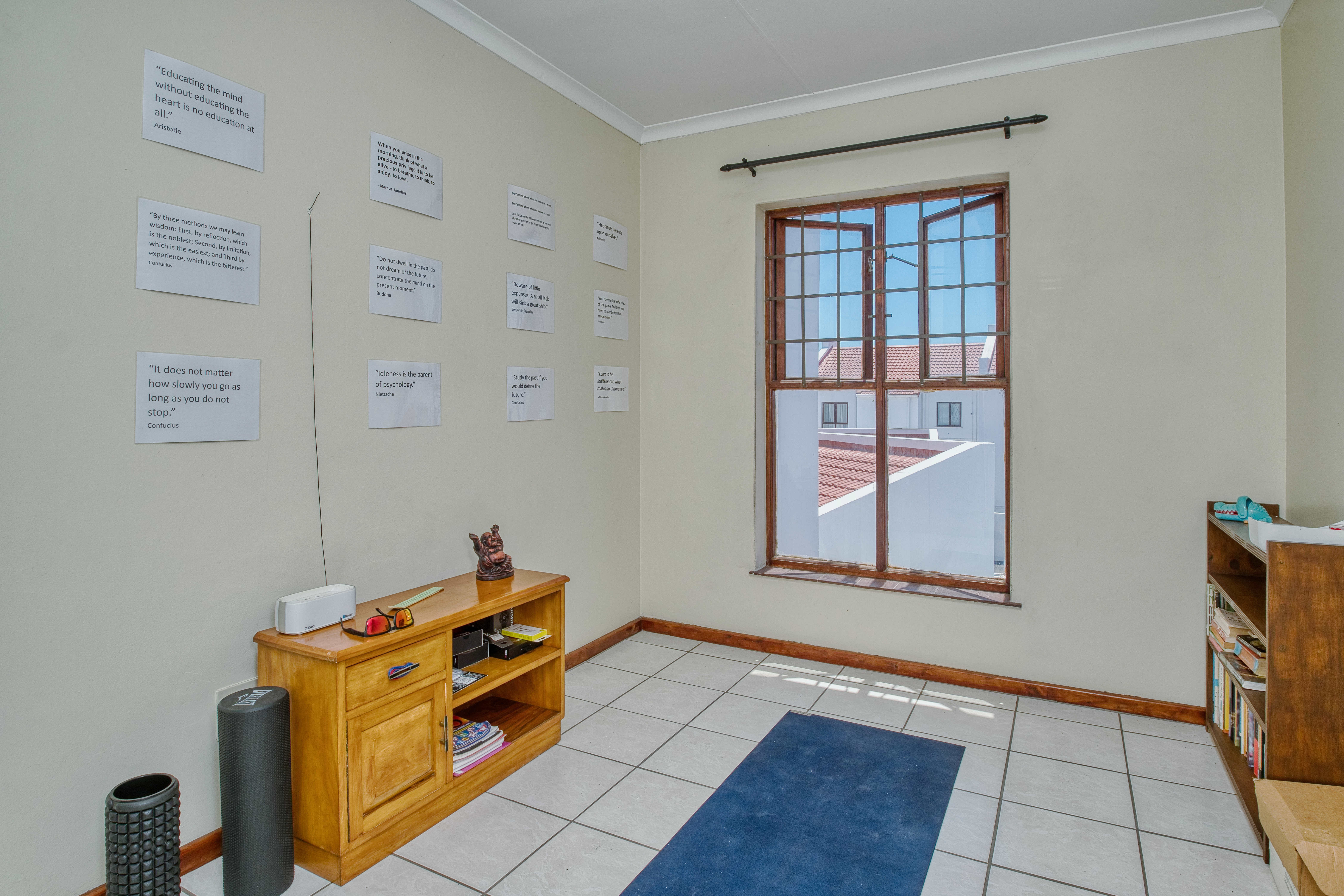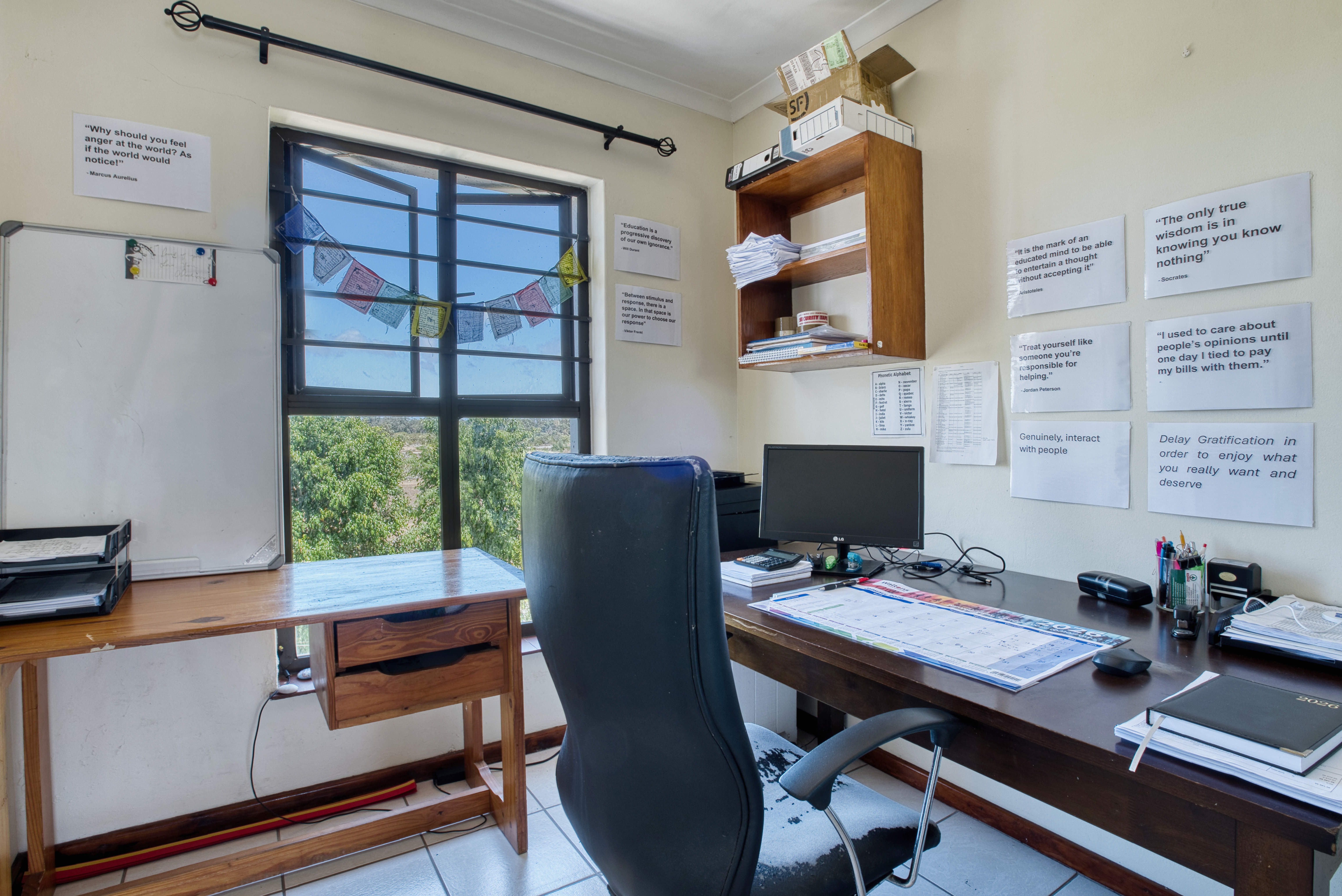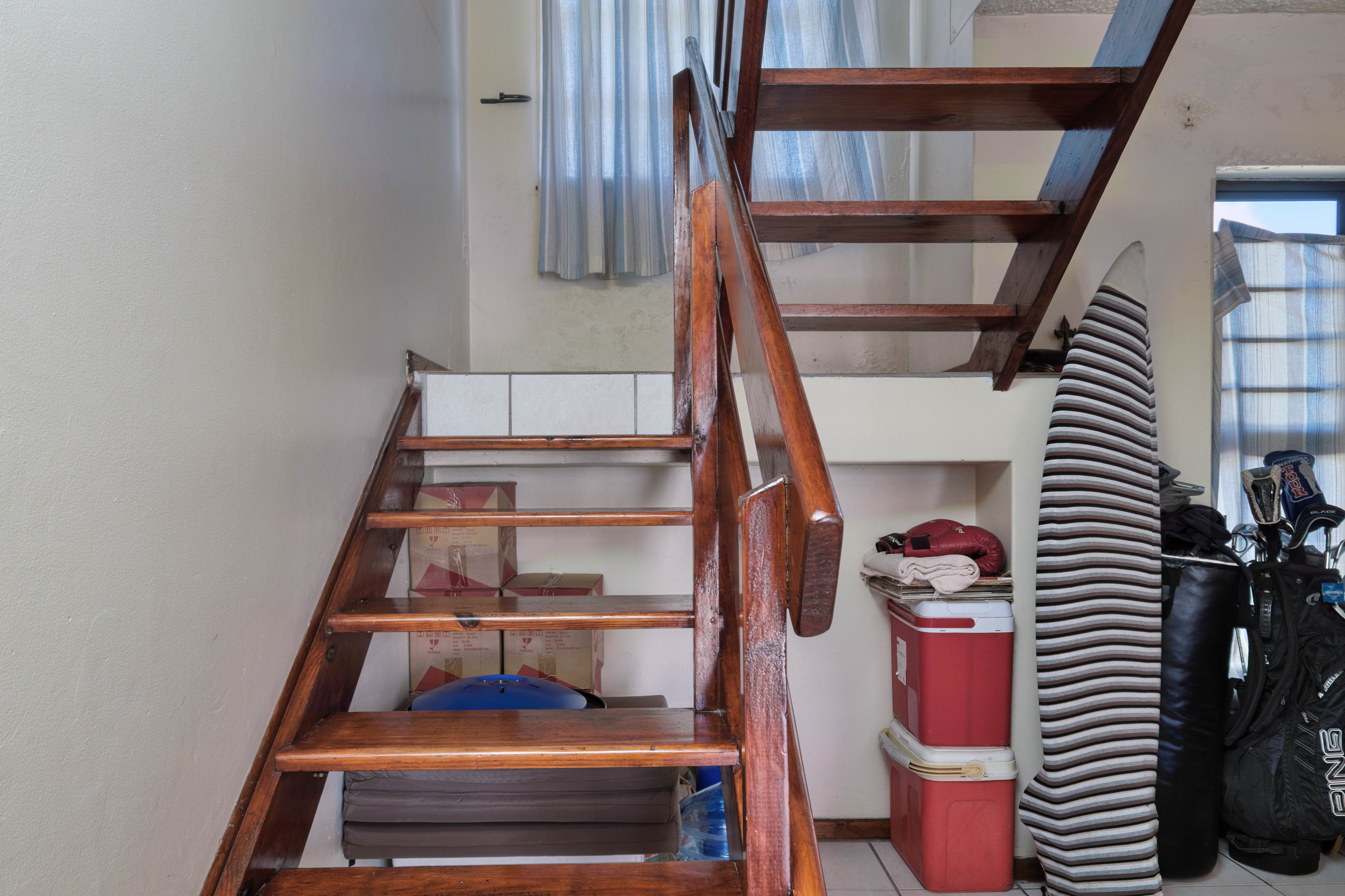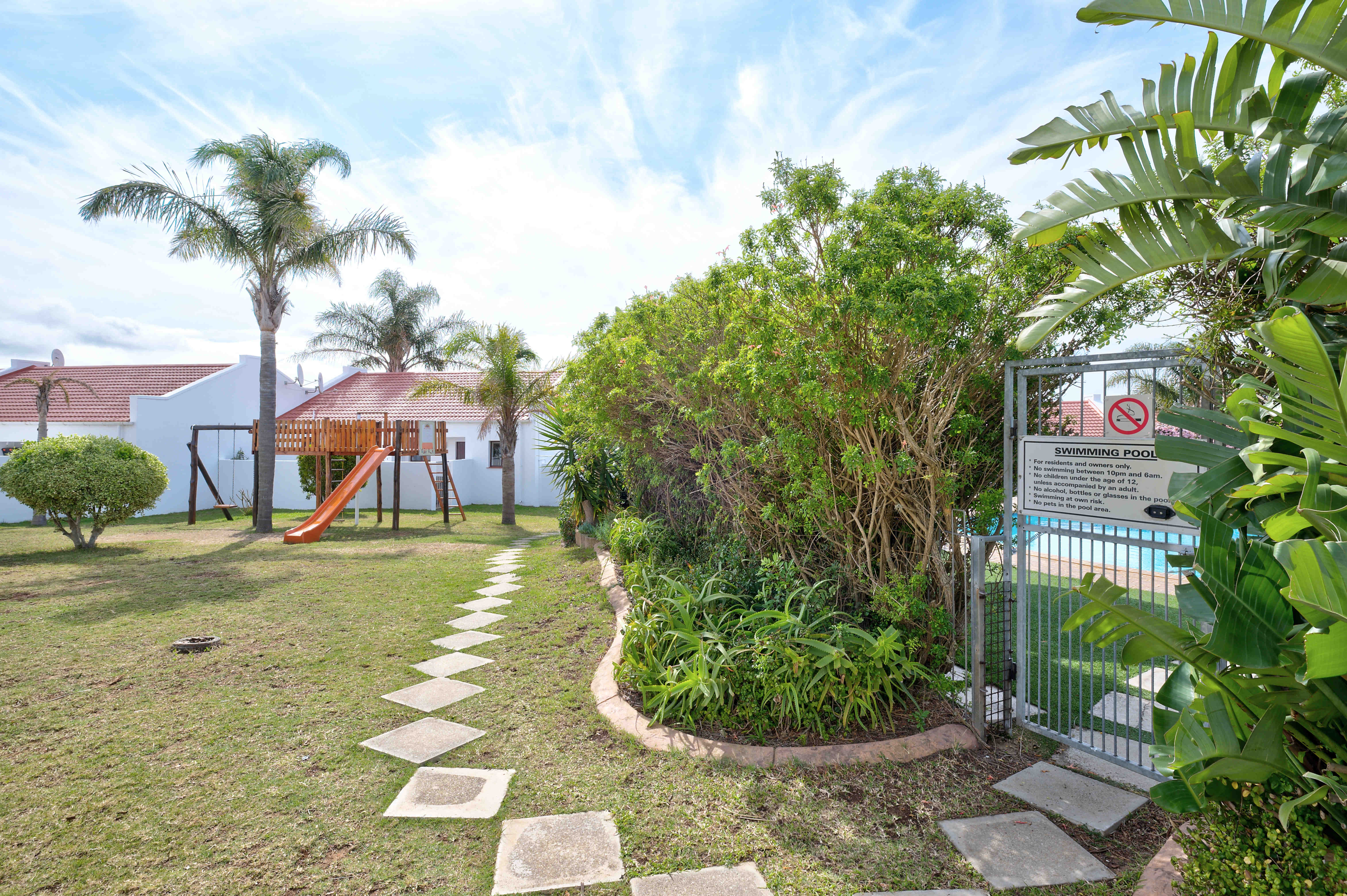 Secure north/west-facing duplex situated in a well-maintained White Mediterranean–style complex, overlooking beautifully landscaped gardens and a sparkling communal pool. Upstairs offers three bedrooms with built-in cupboards, two bathrooms main en-suite with shower and a second bathroom with bath. Linen cupboard. Downstairs features a flowing lounge and dining area opening onto a covered patio, a guest toilet, and a well-fitted kitchen with under-counter oven and hob. Additional features include an alarm system, trellis doors, prepaid electricity, borehole and water tank. Single garage plus additional visitors’ parking available. The complex is well managed, with the Chairman and Trustees residing on site.