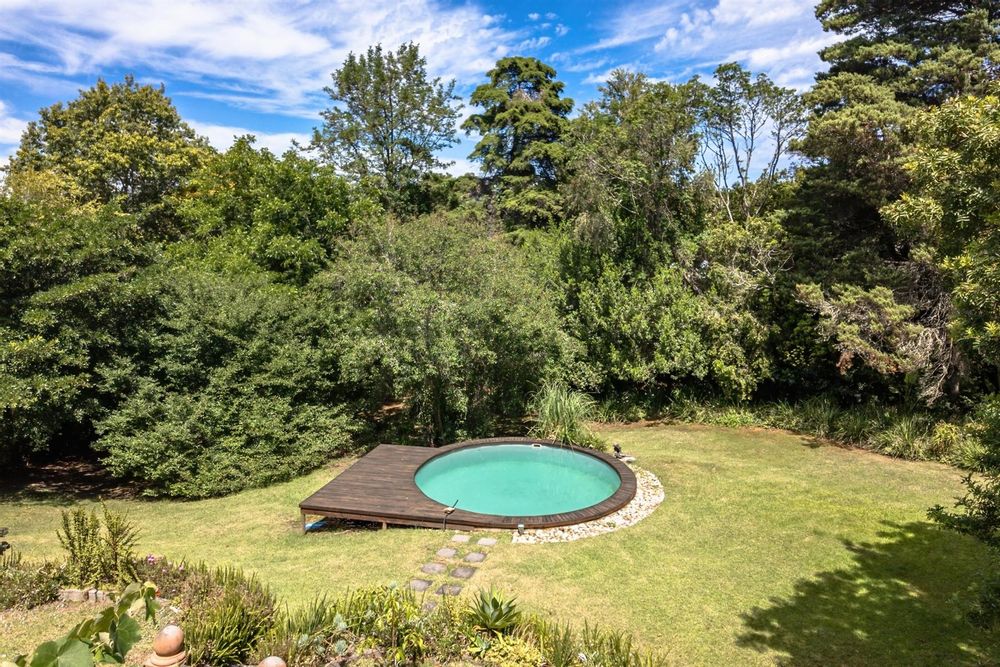 At the heart of the garden lies an old reservoir, thoughtfully transformed into a charming, low-maintenance swimming pool—an idyllic retreat on warm summer days.