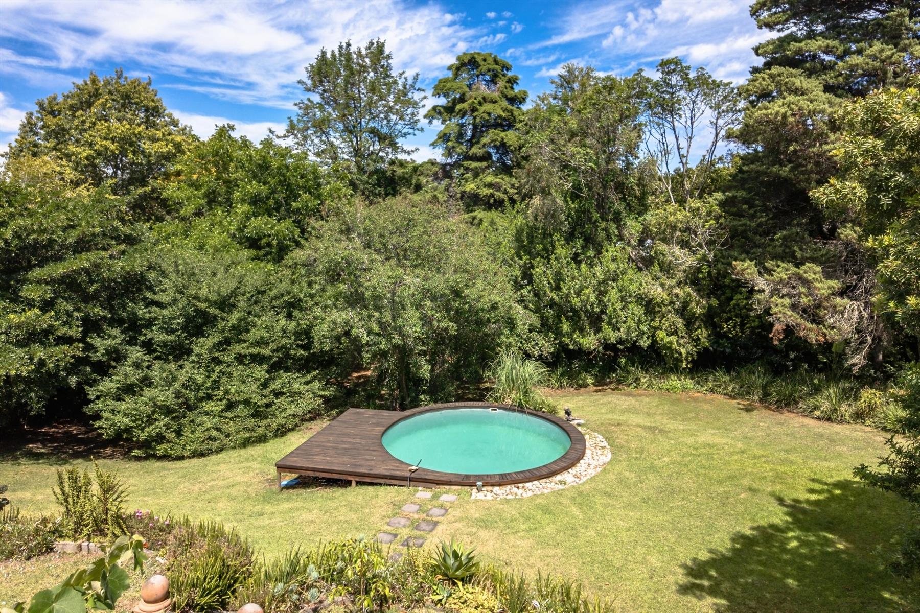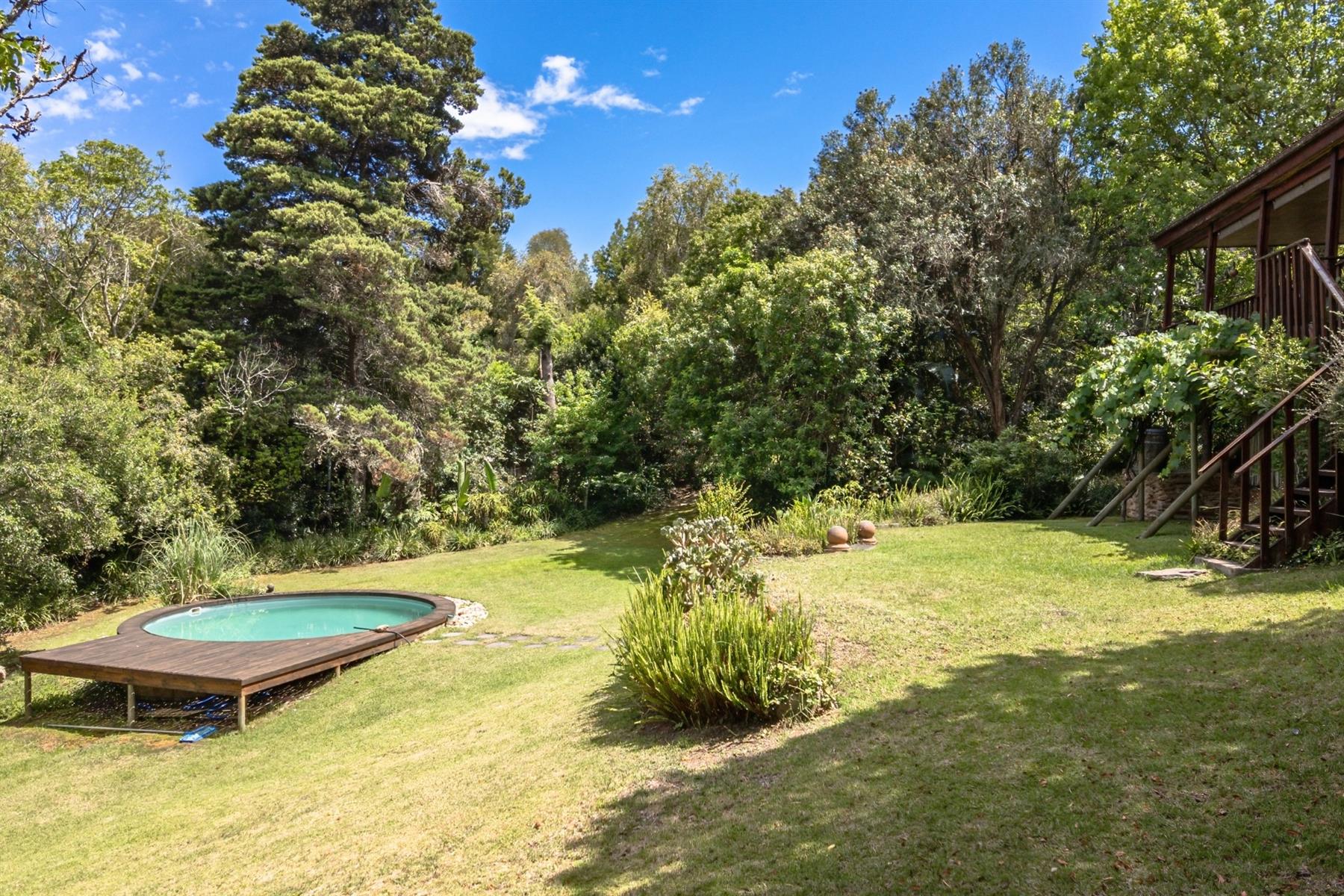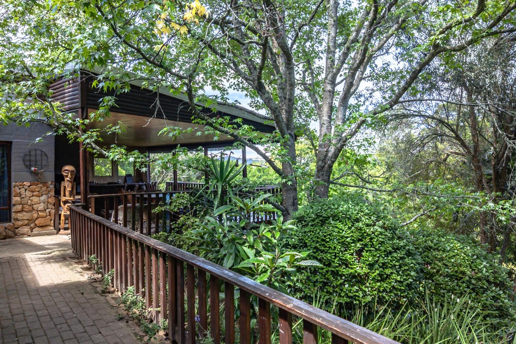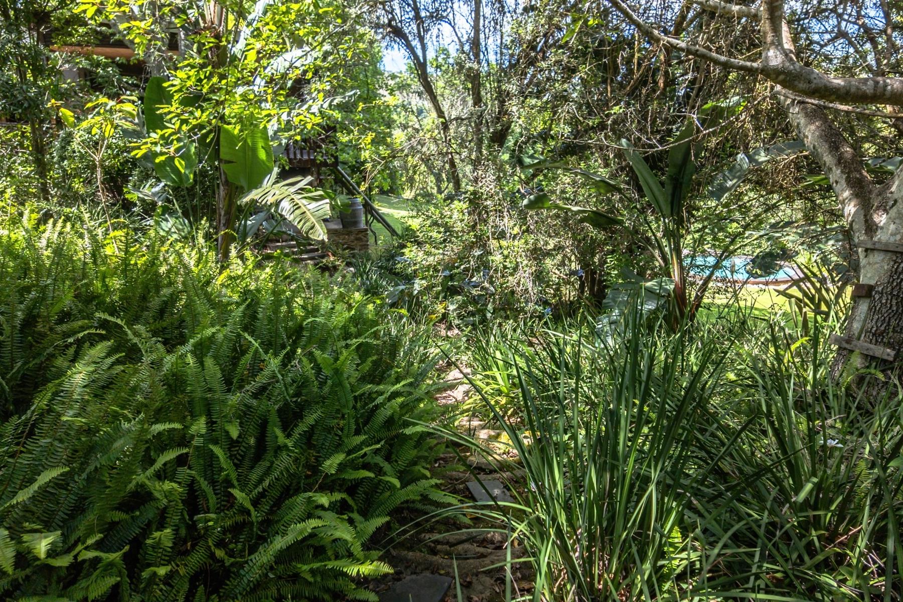 Upon entering the fully fenced property—secured with cameras and beams—you are immediately immersed in a calm, oasis-like atmosphere. A lush green canopy of mature, predominantly indigenous trees creates a mystical forest ambience. The garden is undoubtedly the showpiece: expansive, low-maintenance, and almost self-sustaining. It evokes the magic of “Circles in the Forest,” offering children an extraordinary playground for adventure and imagination.
