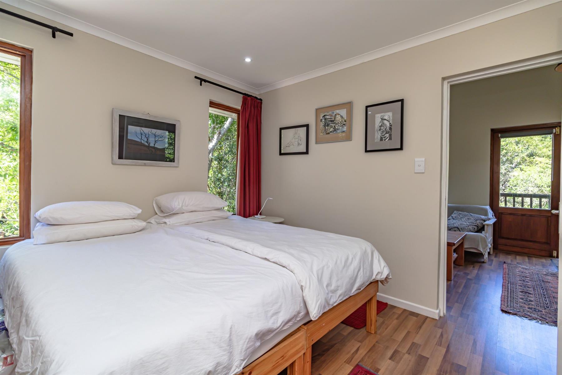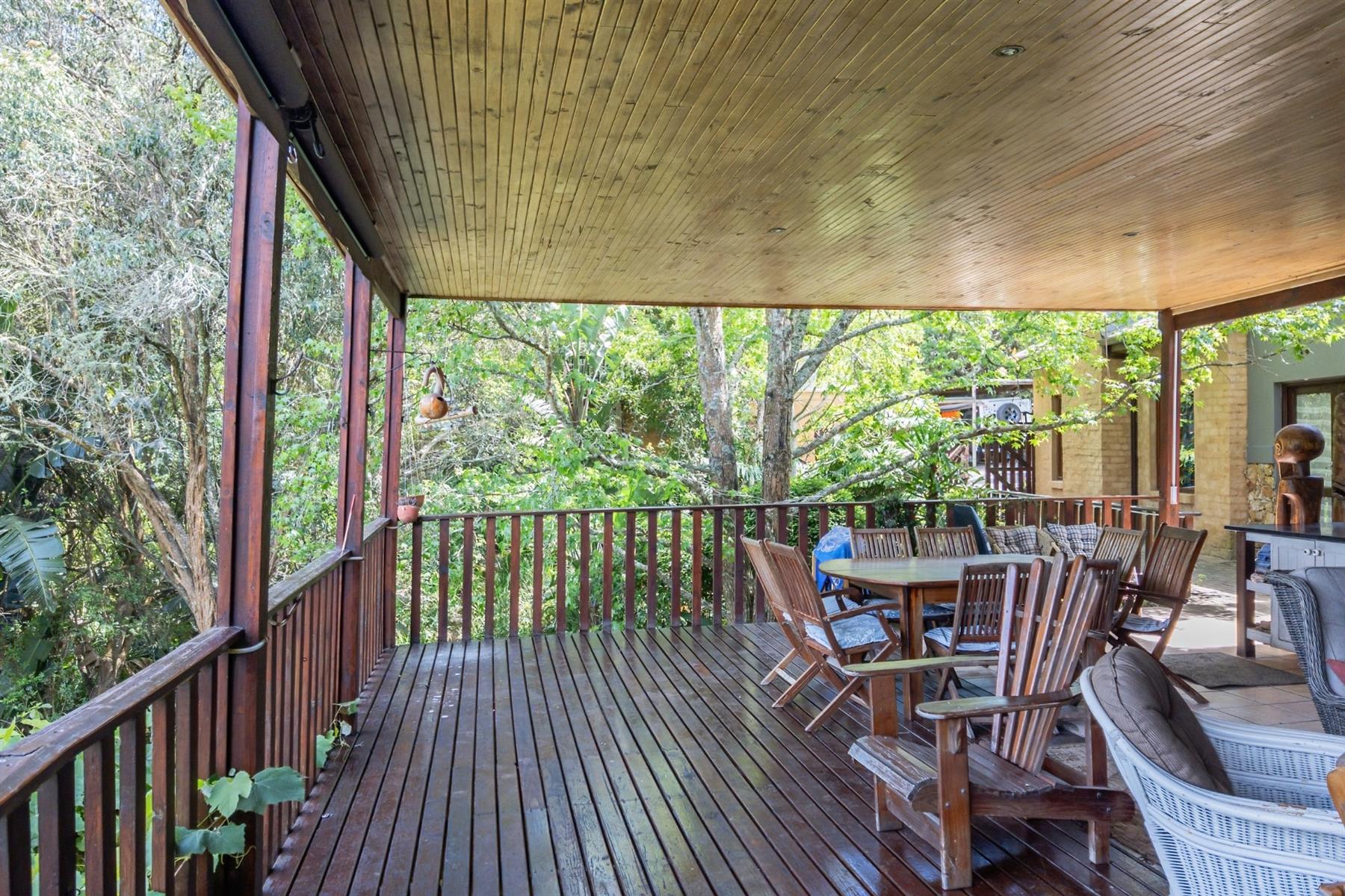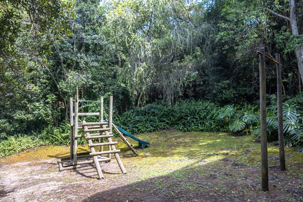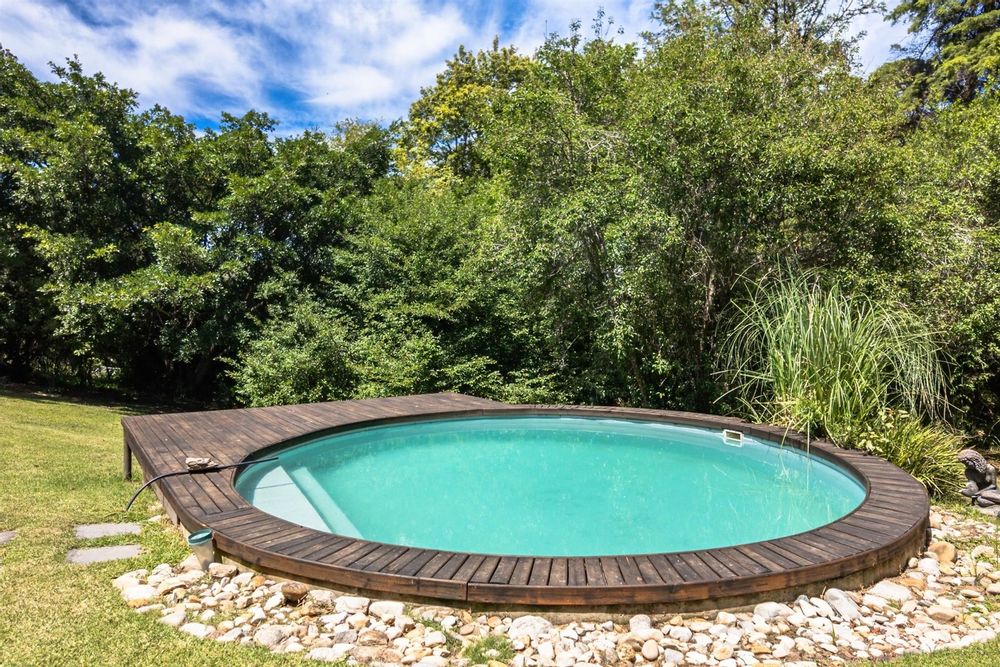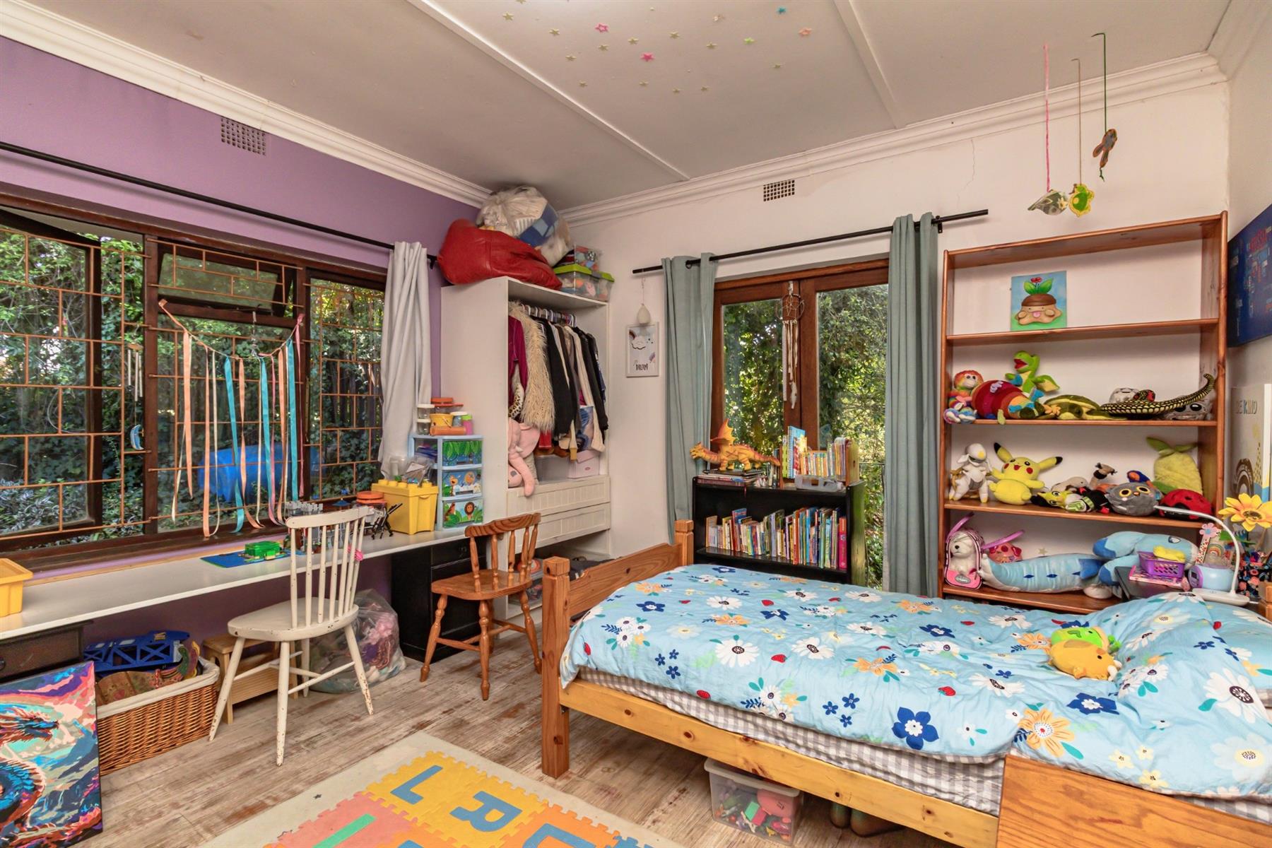 Upon entering the fully fenced property—secured with cameras and beams—you are immediately immersed in a calm, oasis-like atmosphere. A lush green canopy of mature, predominantly indigenous trees creates a mystical forest ambience. The garden is undoubtedly the showpiece: expansive, low-maintenance, and almost self-sustaining. It evokes the magic of “Circles in the Forest,” offering children an extraordinary playground for adventure and imagination.
