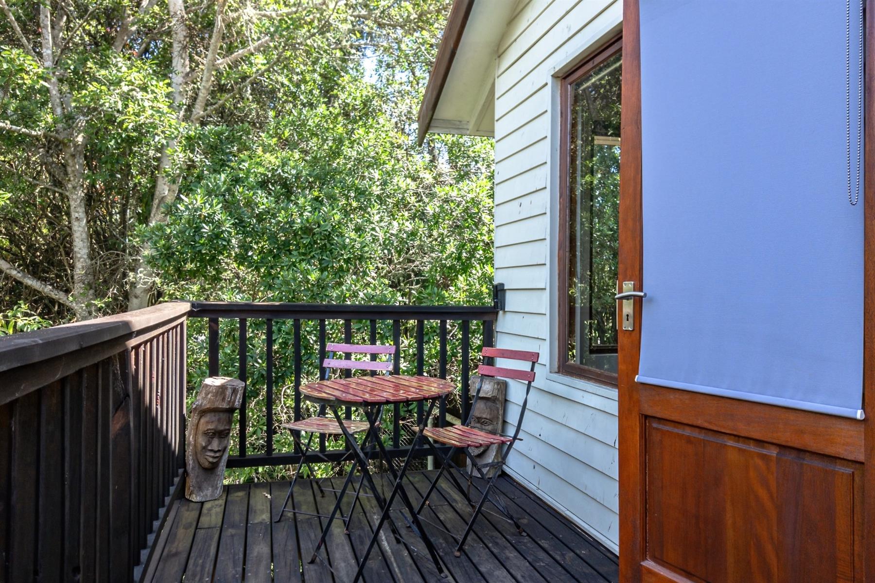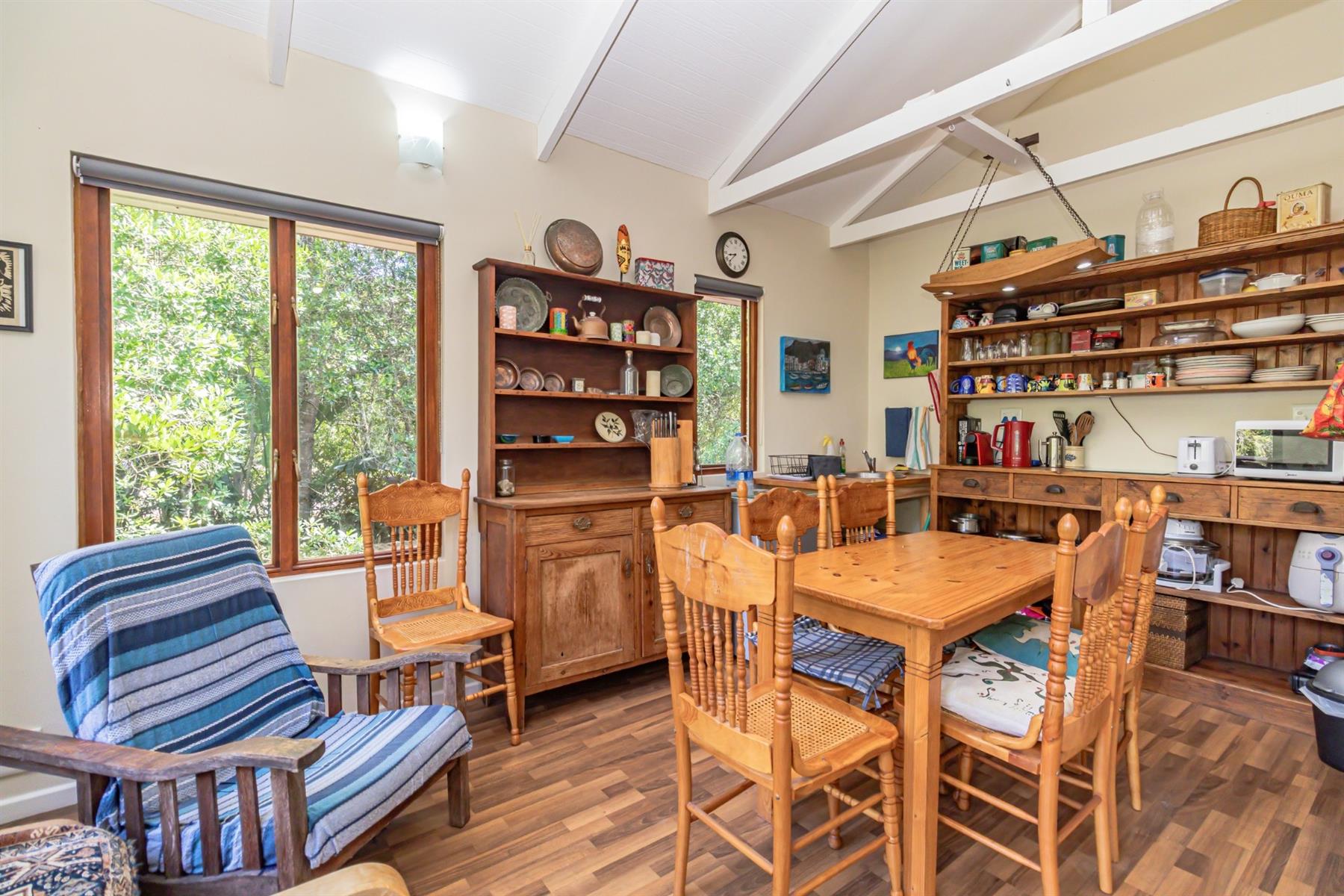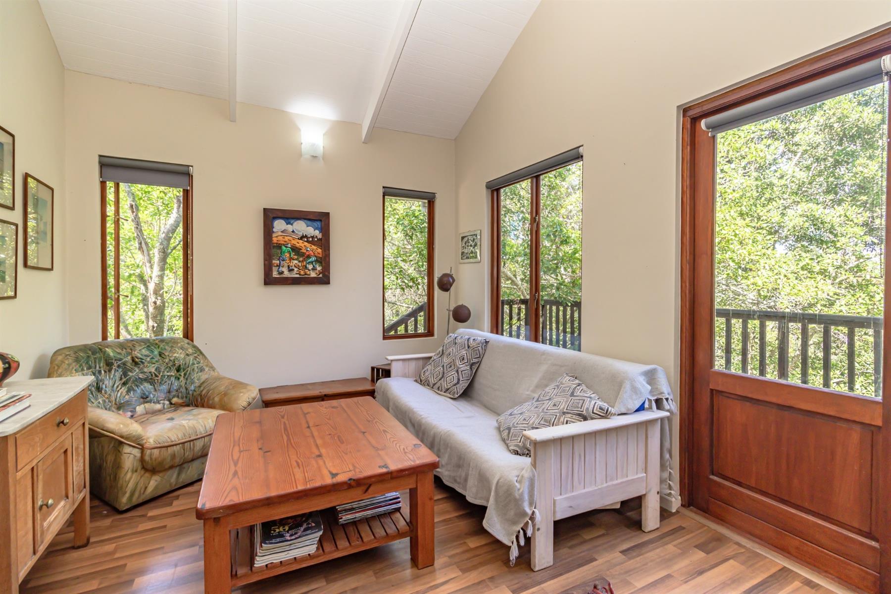 The main house is accessed via an expansive deck, perfect for year-round entertaining, complete with a built-in braai/barbecue and generous undercover space. Inside, the home flows effortlessly in an open-plan layout from the lounge to the dining room and into a tucked-away kitchen.