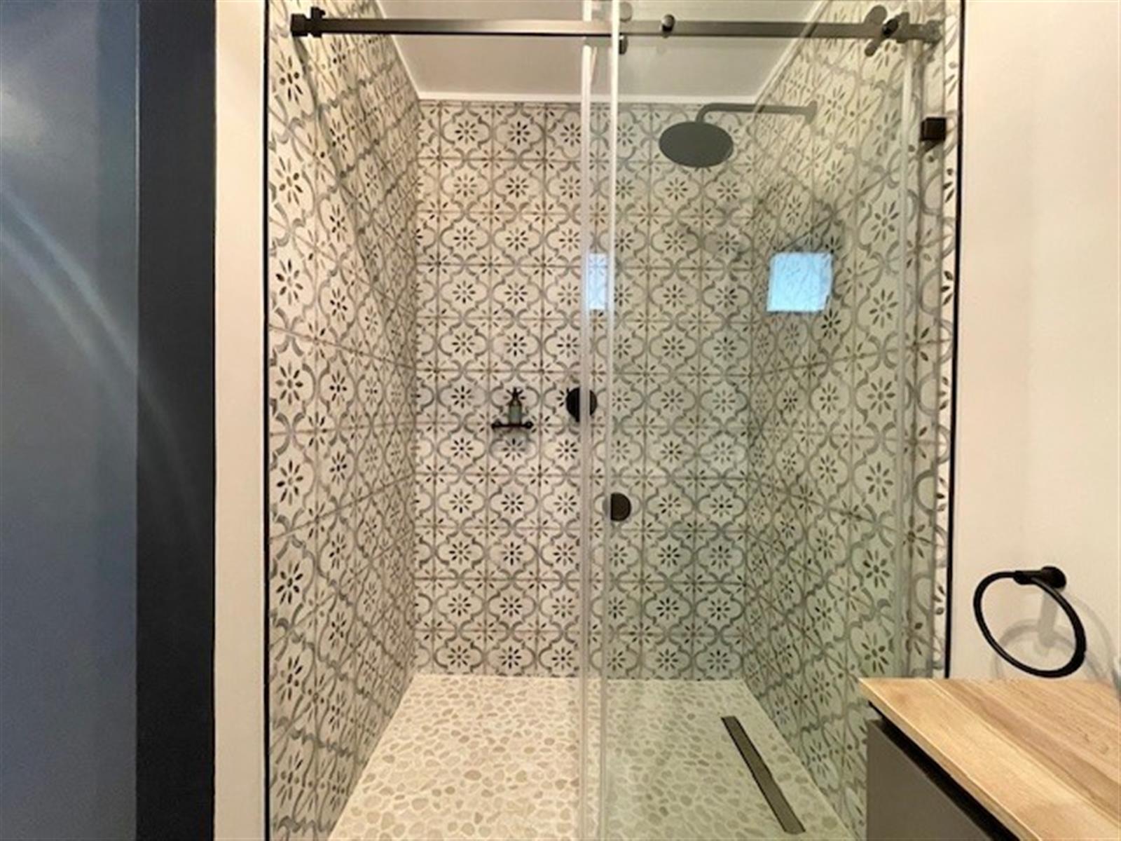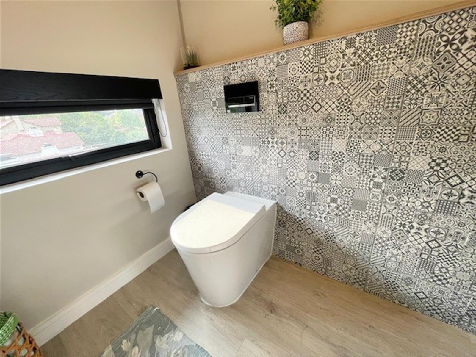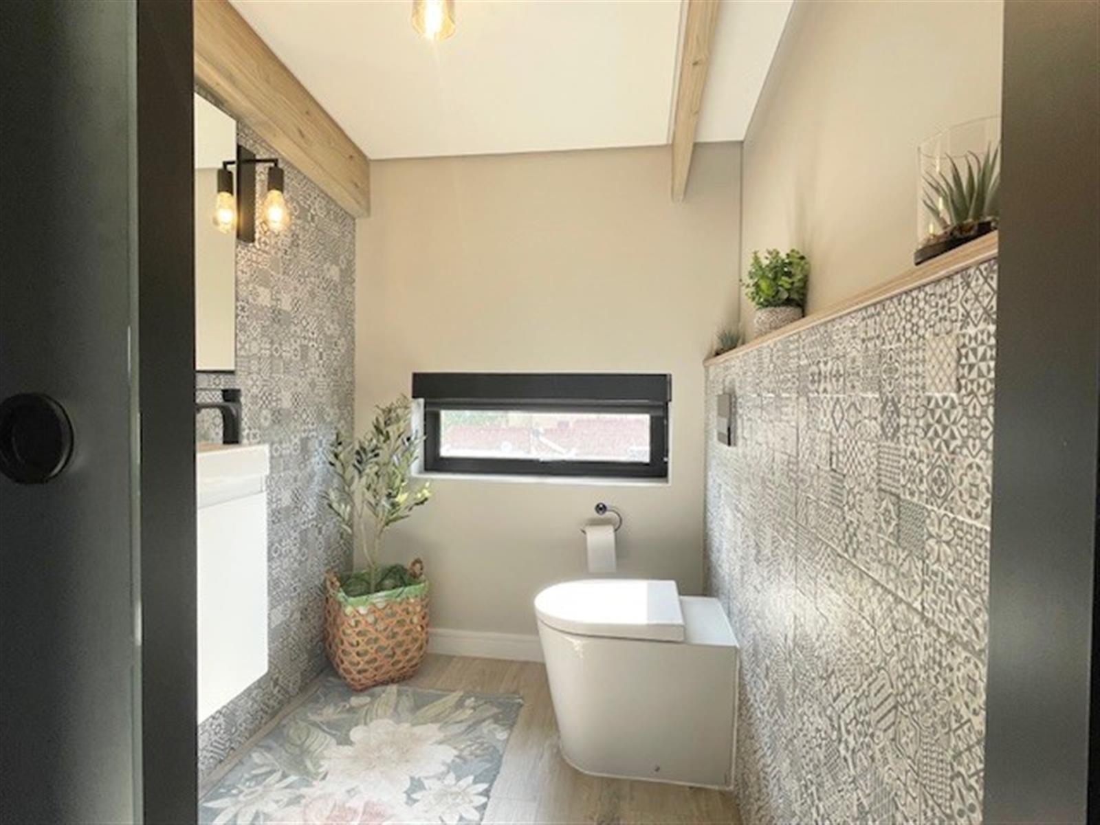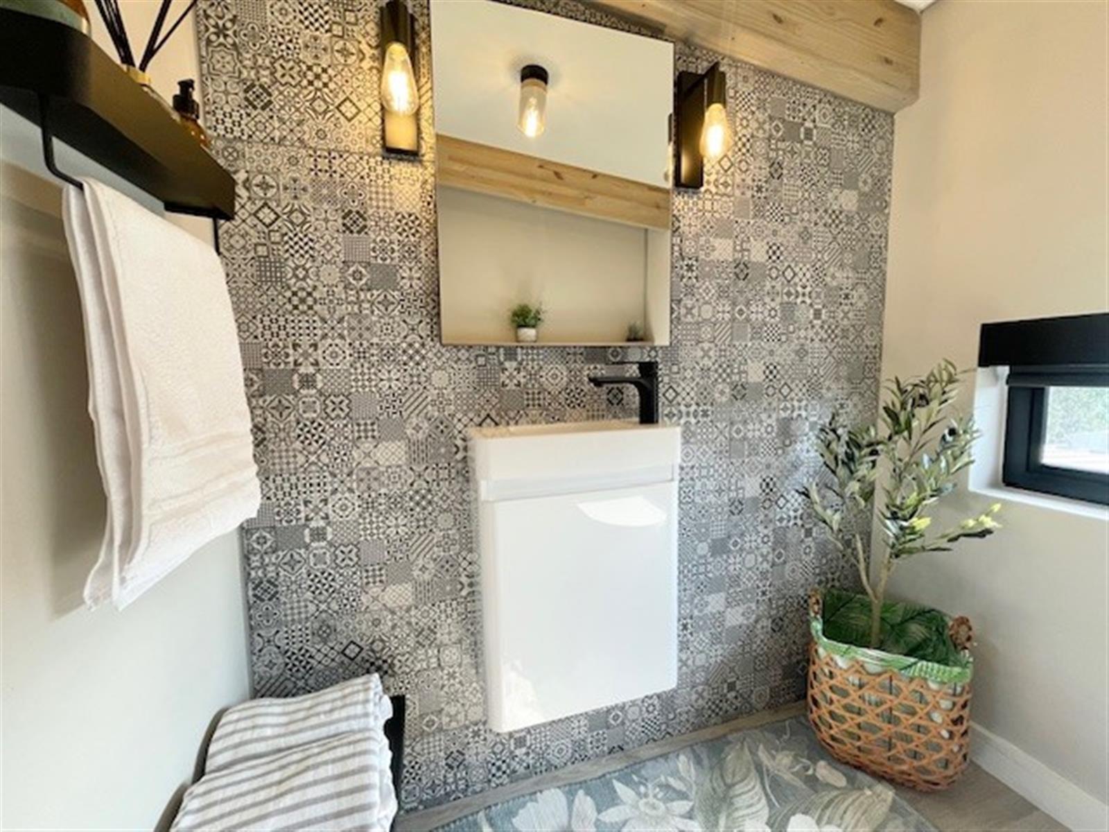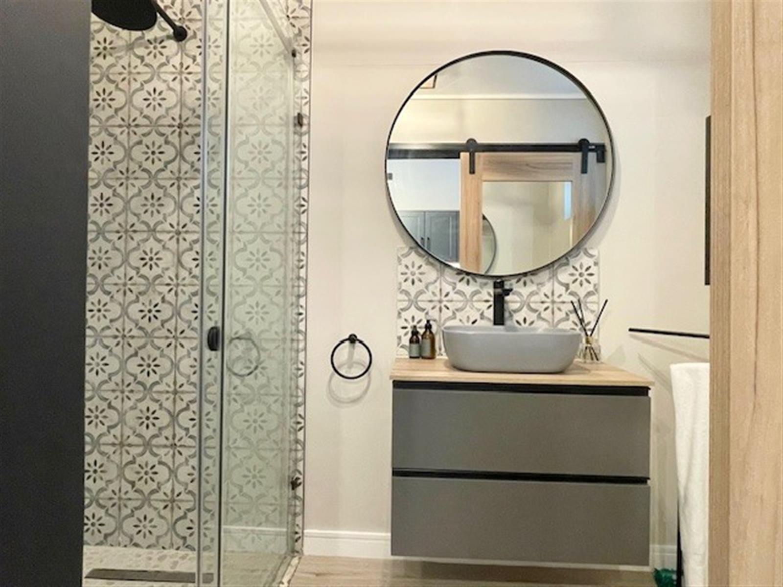 The bathrooms showcase chic matt black fixtures, while each bathroom has its own uniquely tiled accent wall of carefully selected and chosen tiles, adding a tasteful touch of distinction.