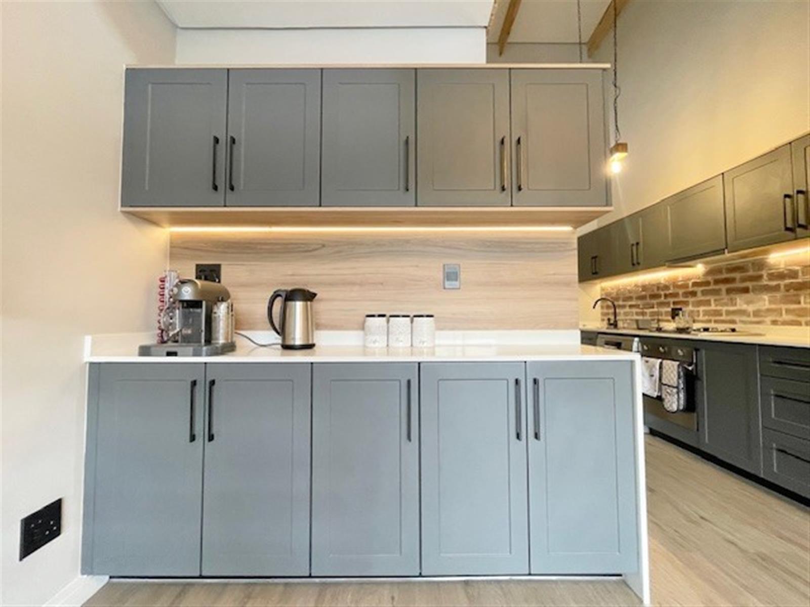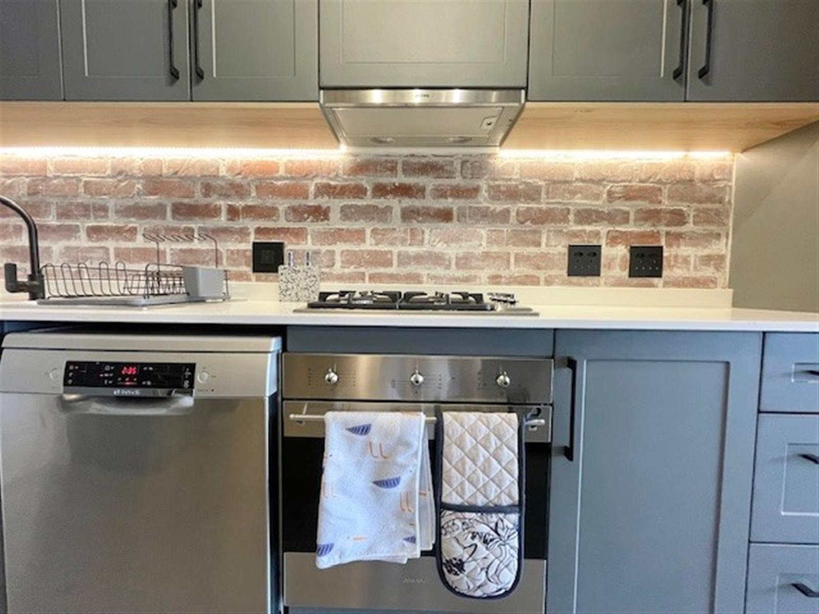 The kitchen is equipped with top-of-the-line Smeg appliances (including built-in Fridge/Freezer, Dishwasher, Washing Machine, Tumble Dryer and Coffee Machine) and complimented by sleek quartz countertops. This area opens effortlessly out into the living area and balcony beyond, with gorgeous views of the Sandton skyline.