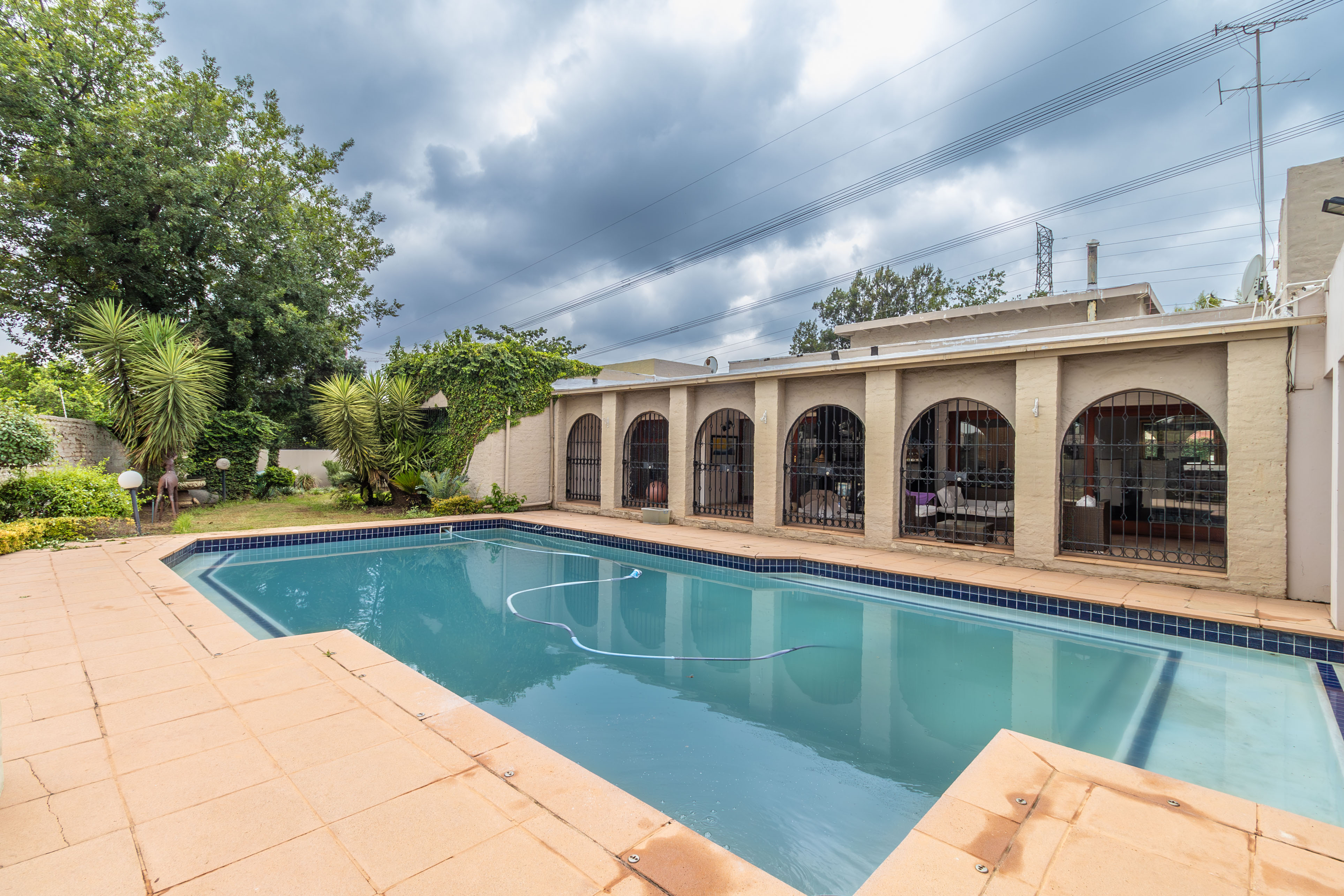 Nestled in the prestigious heart of Sandton, just moments from Sandton City, the Gautrain, and Africa’s premier business hub, this exquisite family residence offers the perfect blend of comfort, style, and sophisticated entertaining – all within a highly secure environment. Property Highlights: - Expansive 3-bedroom home (2 en suite) + separate self-contained 1-bedroom granny cottage - Sparkling swimming pool, wrap-around covered patio, outdoor bar & built-in braai area - Koi pond and lush, established gardens creating a private outdoor oasis - Wheelchair-friendly bedroom and bathroom - Top-tier security: electric fencing, CCTV cameras, and alarm system Interior Features: Step inside this light-filled masterpiece and be welcomed by generous open-plan living spaces designed for modern family living and effortless entertaining. - A gourmet chef’s kitchen with a large centre island, ample cupboard storage, and prep space, complemented by a separate scullery/laundry - Formal lounge, family lounge, and elegant formal dining room - Sophisticated indoor bar – the ideal spot for relaxed evenings with friends - Dedicated home office/study – perfect for remote working -Solar Battery System The bedroom wing offers privacy and luxury: - Spacious main suite with en-suite bathroom for ultimate relaxation - Second en-suite bedroom - Third generous bedroom Outdoor Living at its Finest: Flow seamlessly from the living areas onto the expansive covered wrap-around patio with its own outdoor bar and built-in braai – the ultimate venue for alfresco dining and sunset gatherings. Dive into the inviting pool, unwind beside the serene koi pond, or simply enjoy the beautifully landscaped gardens that envelop the property in tranquillity. Bonus Income-Generating Granny Cottage: A fully self-contained 1-bedroom flat with its own kitchen, lounge, en-suite bathroom, and private entrance – perfect for extended family, guests, or rental income. This rare Sandton gem combines executive elegance, family functionality, and resort-style outdoor living in one of Johannesburg’s most sought-after locations. Available for 1 February 2026 occupation – an exceptional rental opportunity that feels like home from the moment you arrive. Rent is R 50 000 a month excludes water and electricity. Contact us today to arrange your private viewing.