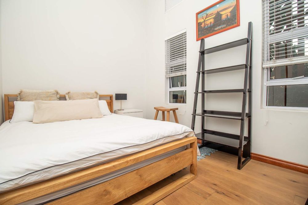 From the second-floor study/living area, step through to a self-contained two-bedroom, one-bathroom apartment with a kitchen, living area, and balcony. This apartment offers privacy and can be accessed separately via a spiral staircase outside the main front door.