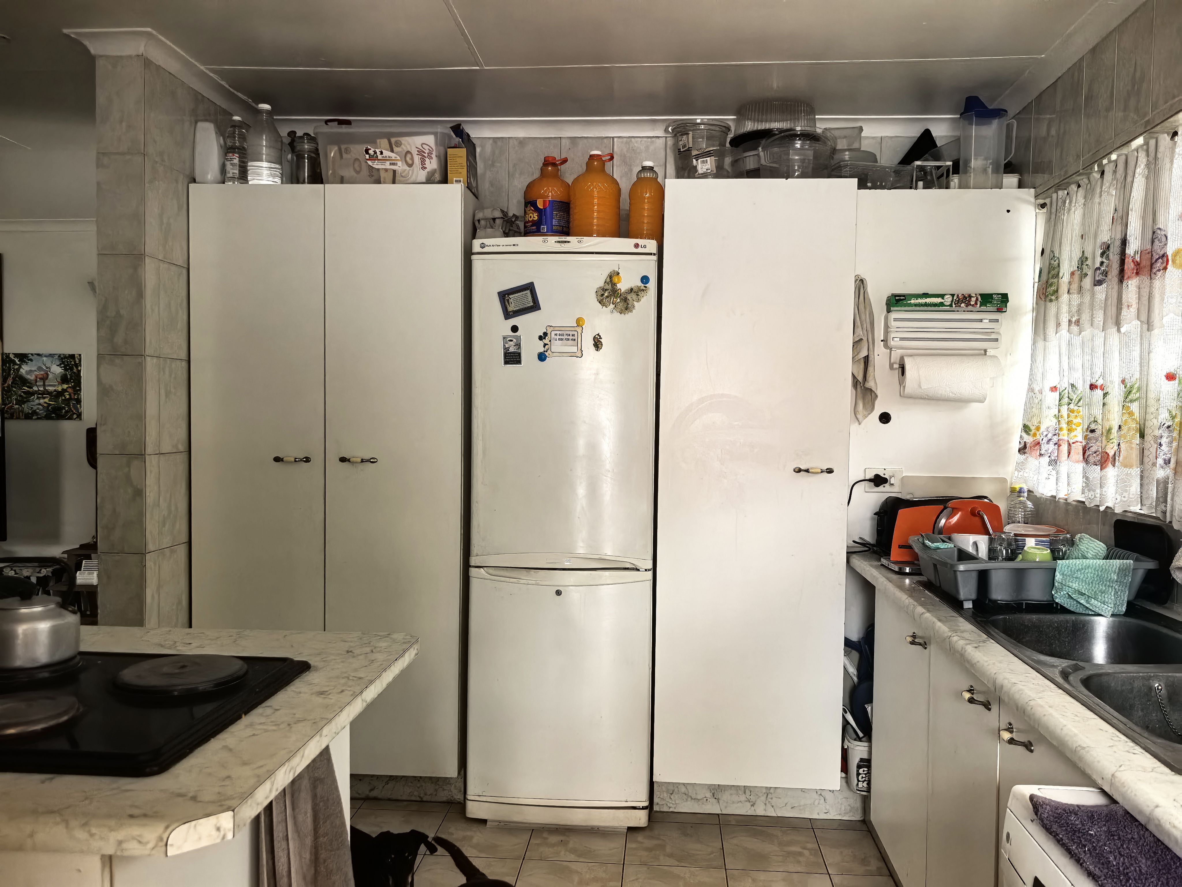 The main house has 3 bedrooms; 2 bathrooms open plan living area and a large kitchen that fits 3 appliances. The living room opens to a separate patio area, where you can enjoy your pleasant summer sundowners.
