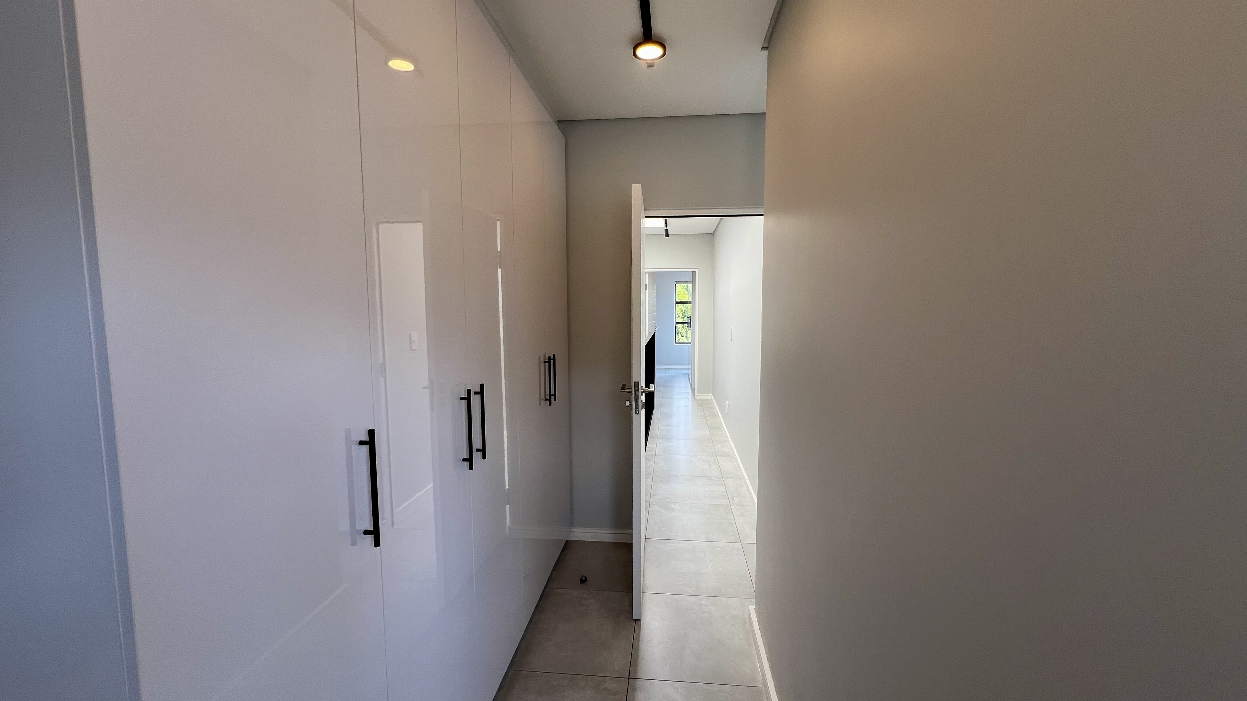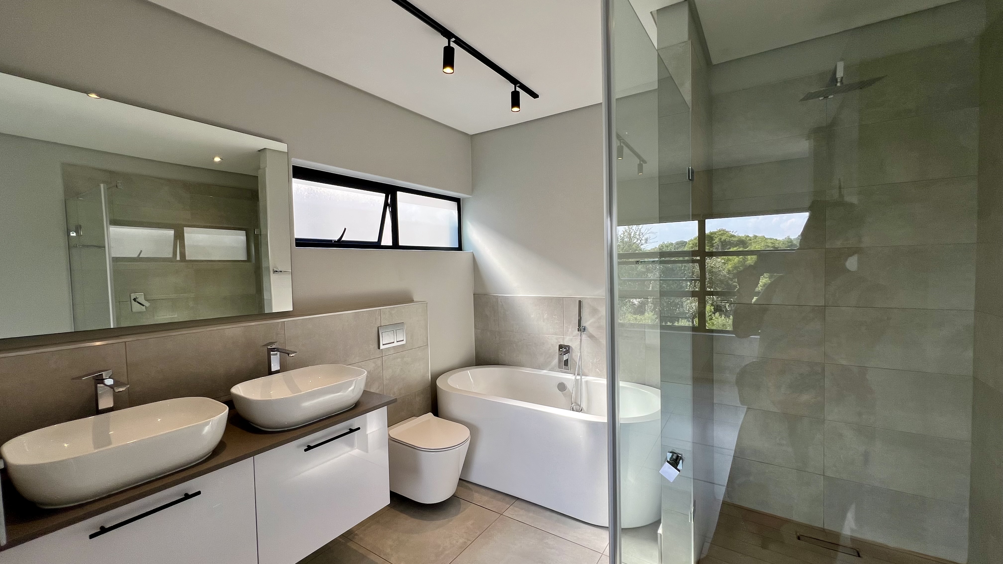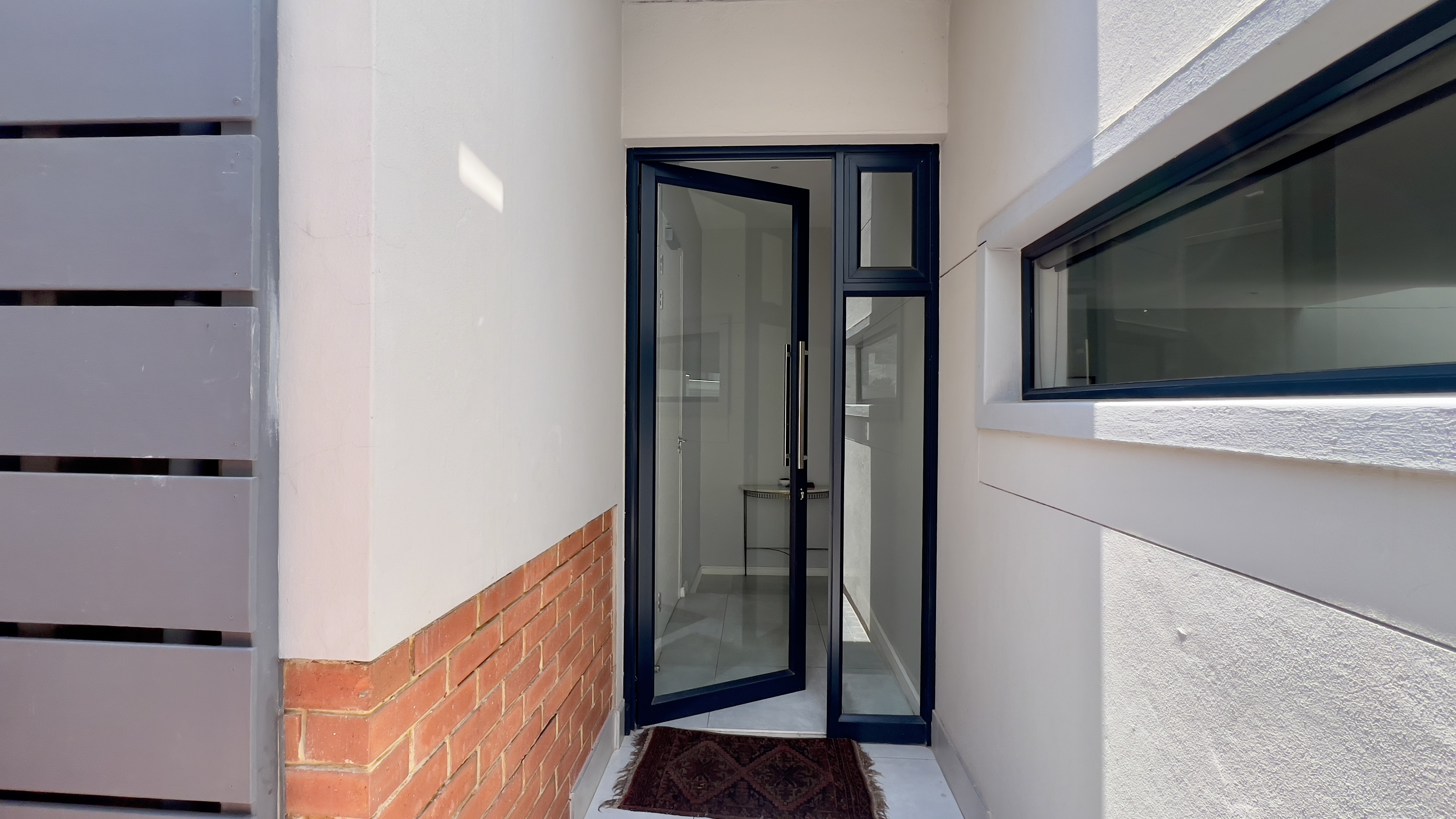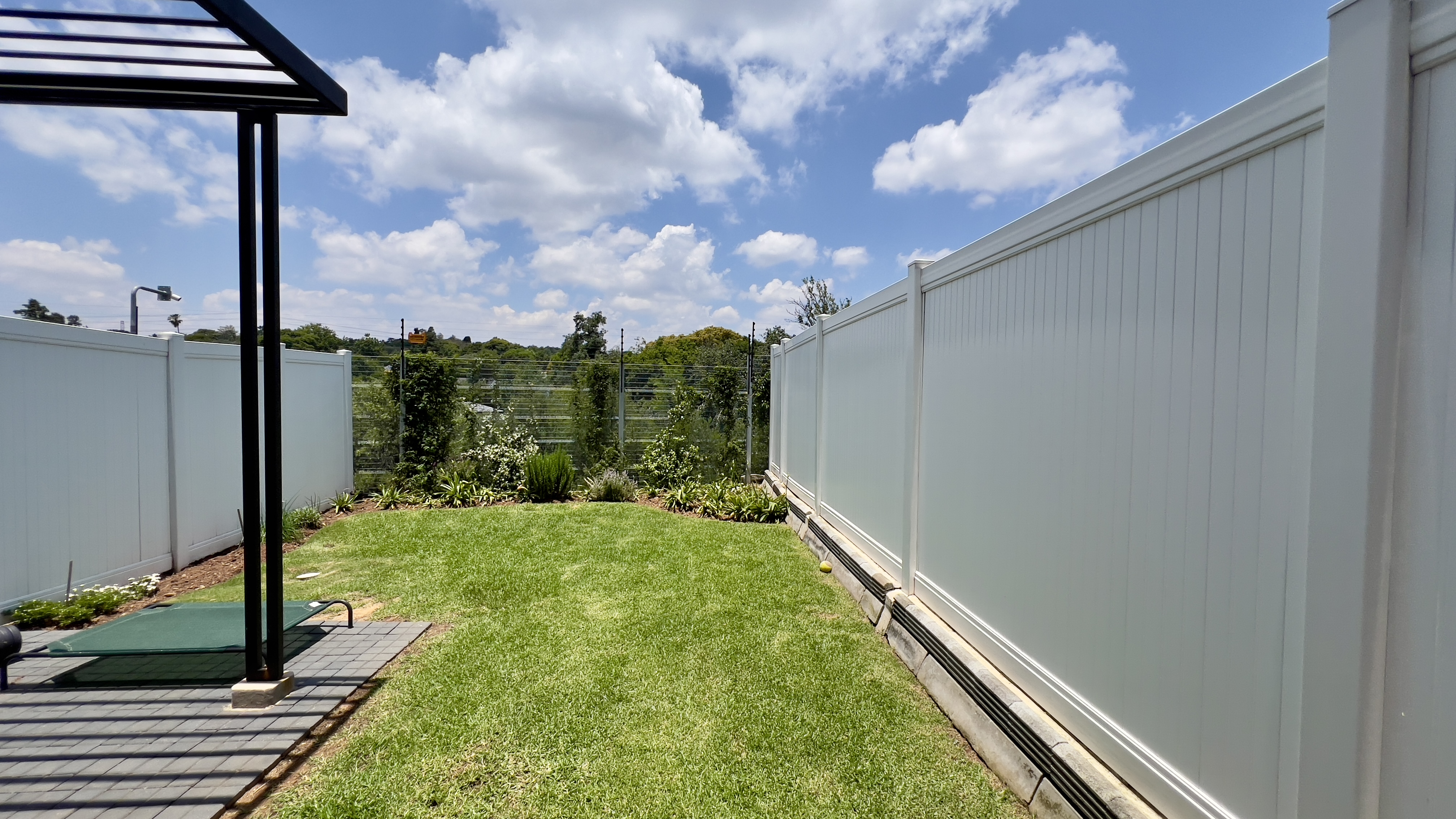 Upon entering through the large glass front door, you are greeted by a welcoming reception area with direct access from the single automated garage. To the right, the home opens into a beautifully designed living space featuring a stylish dining area with a gas fire place and a contemporary kitchen equipped with a 5-plate gas stove. The lounge flows seamlessly onto a private back garden with a covered patio and built-in braai—perfect for entertaining. You’ll also enjoy the tranquil sound of flowing water just beyond your garden.