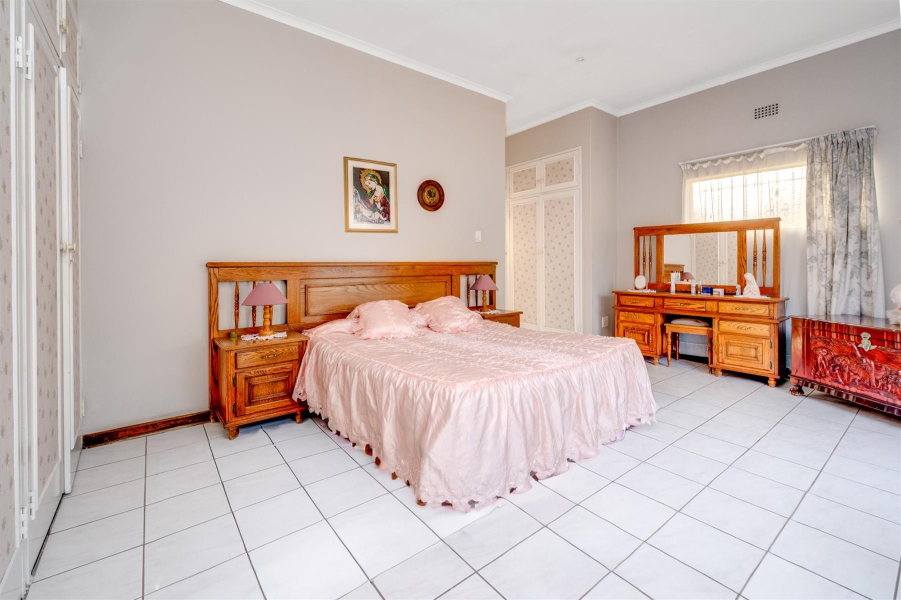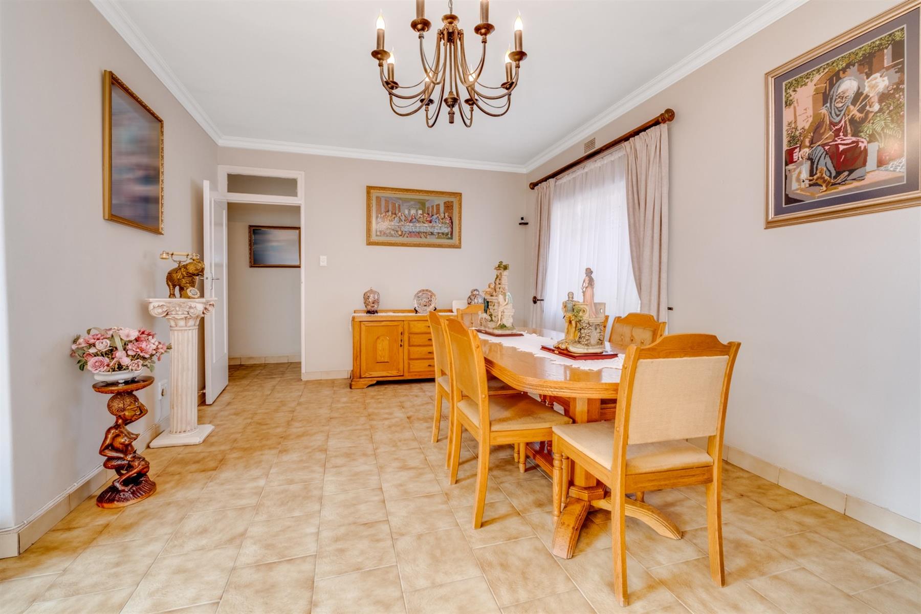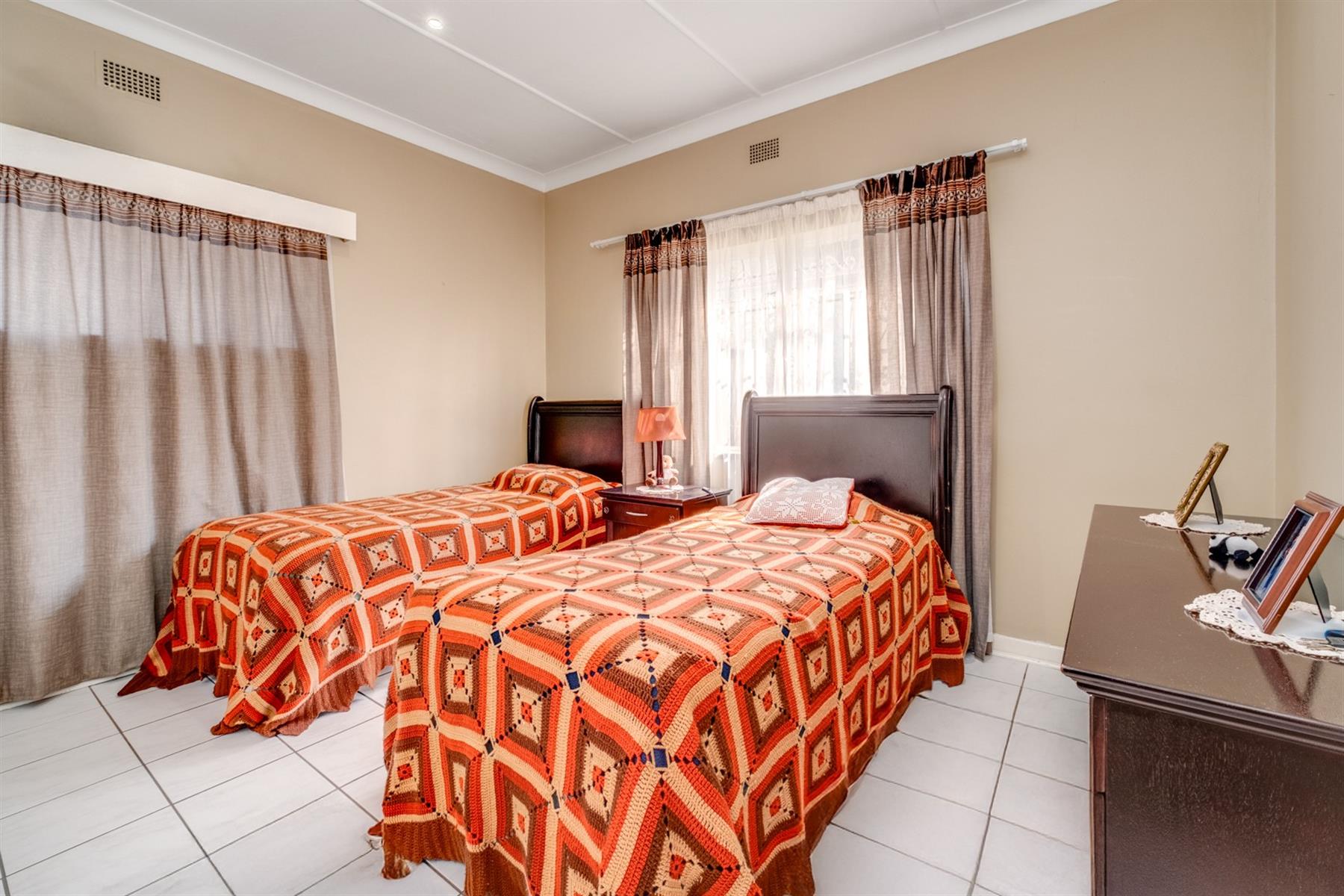 This home boasts four spacious bedrooms, providing plenty of room for the whole family. The master bedroom is a tranquil retreat, featuring an en-suite bathroom with bath and shower. The remaining three bedrooms are equally impressive, with large windows and built-in cupboards, providing plenty of storage space and positioned next to the second bathroom that also has a shower and bath.